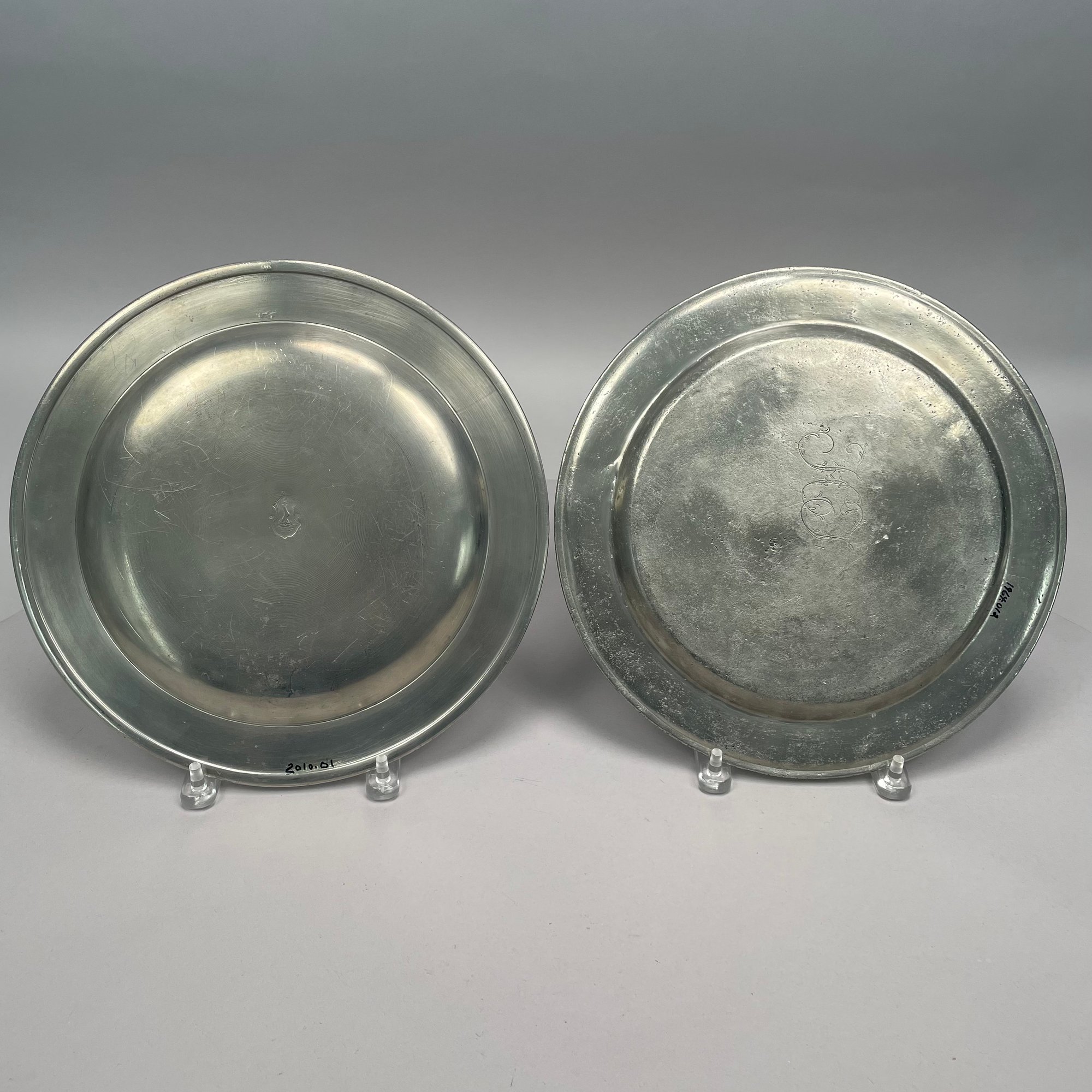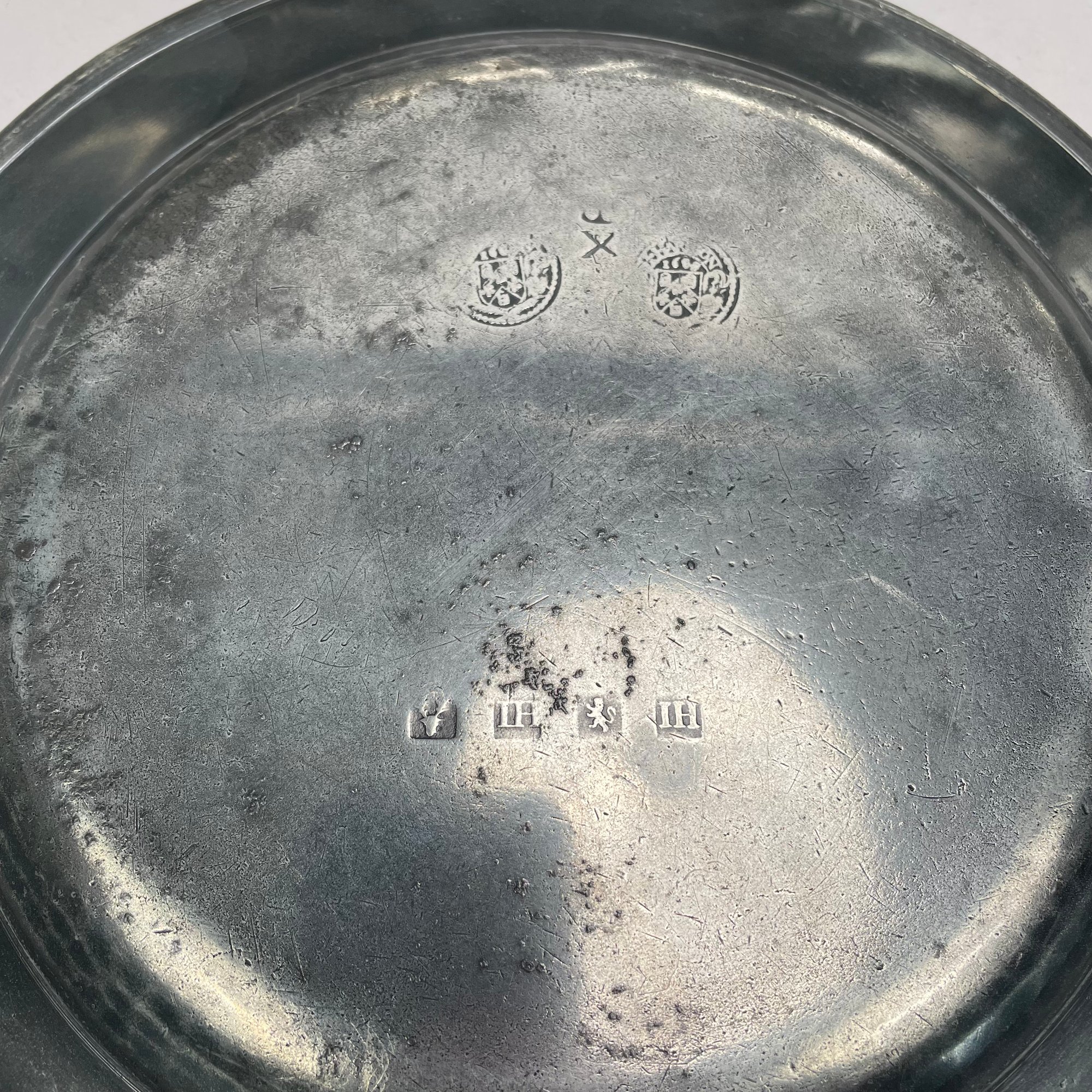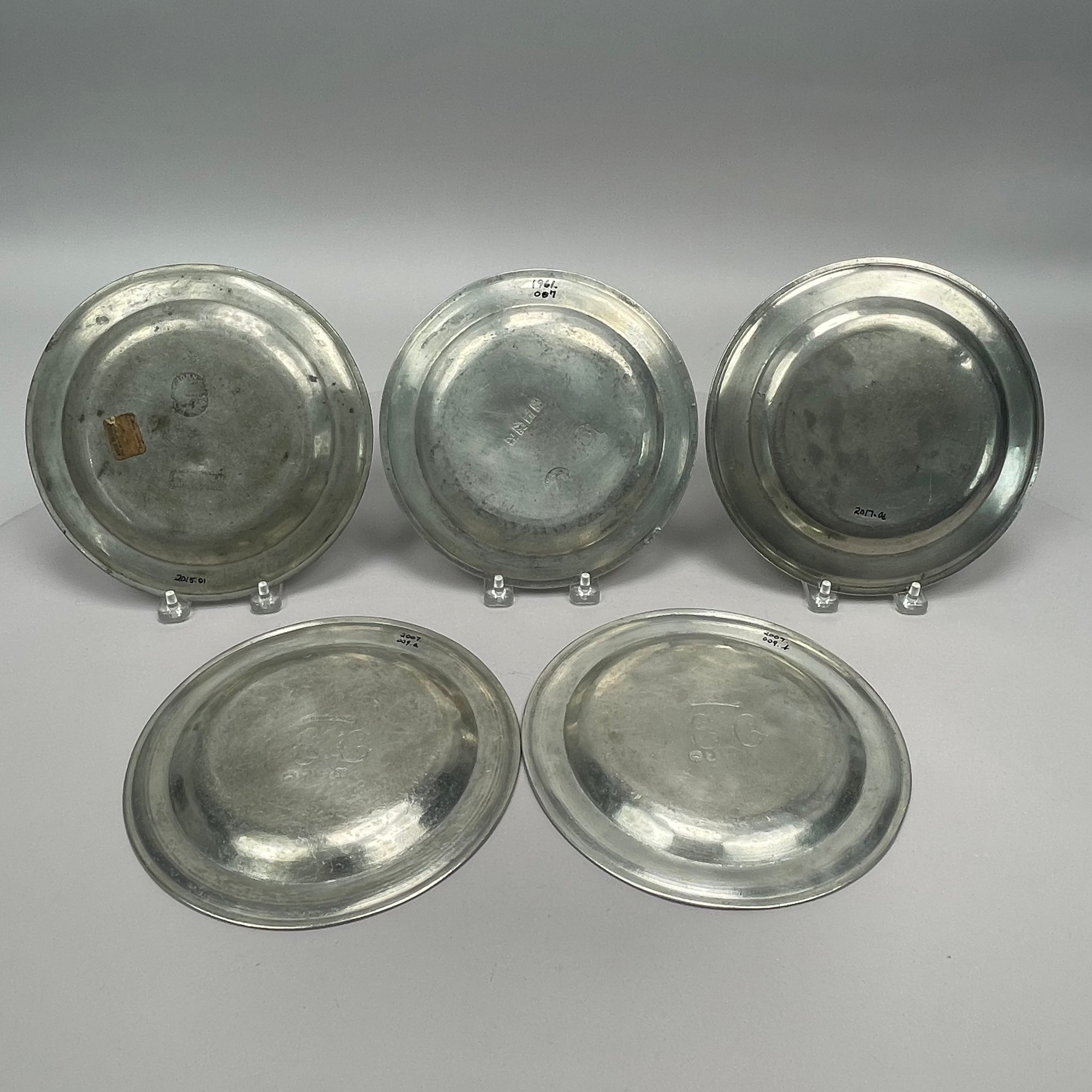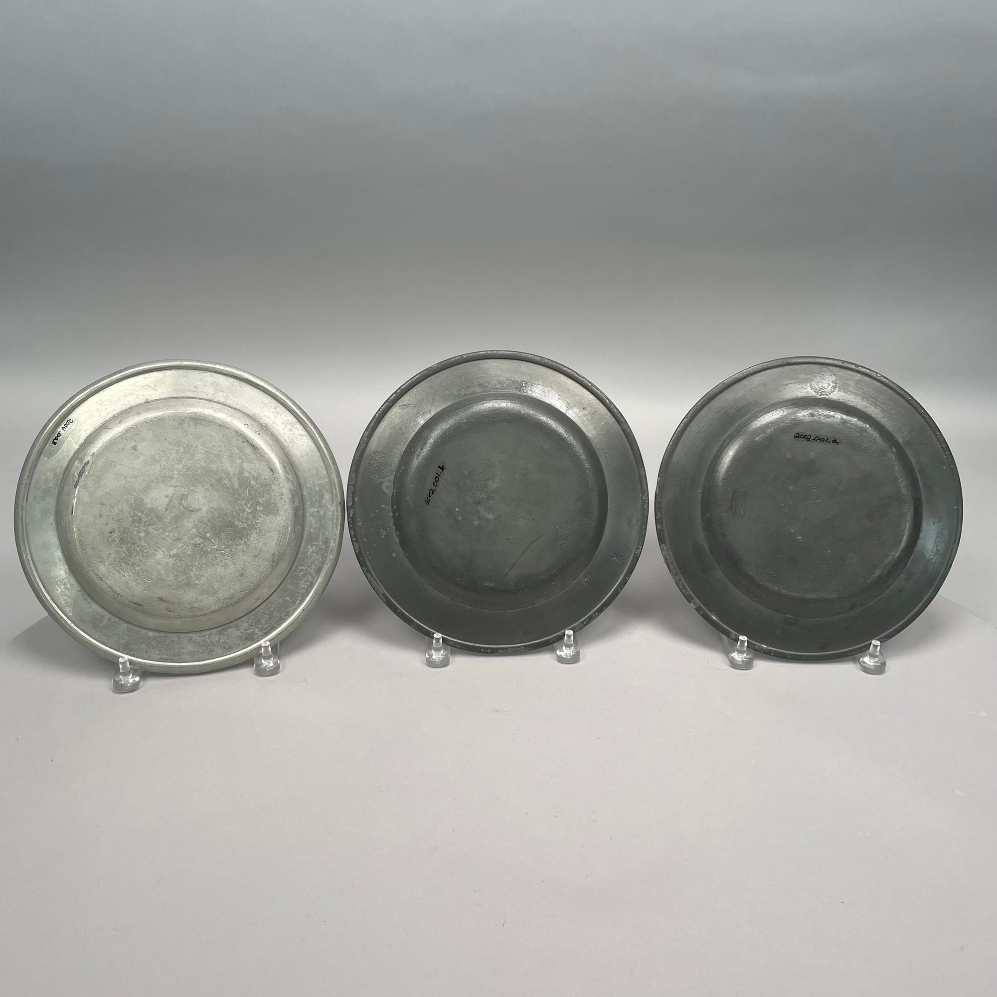 Sixteen British Pewter Plates and Dishes, Various Makers, Eighteenth and Nineteenth Century. Various touchmarks.