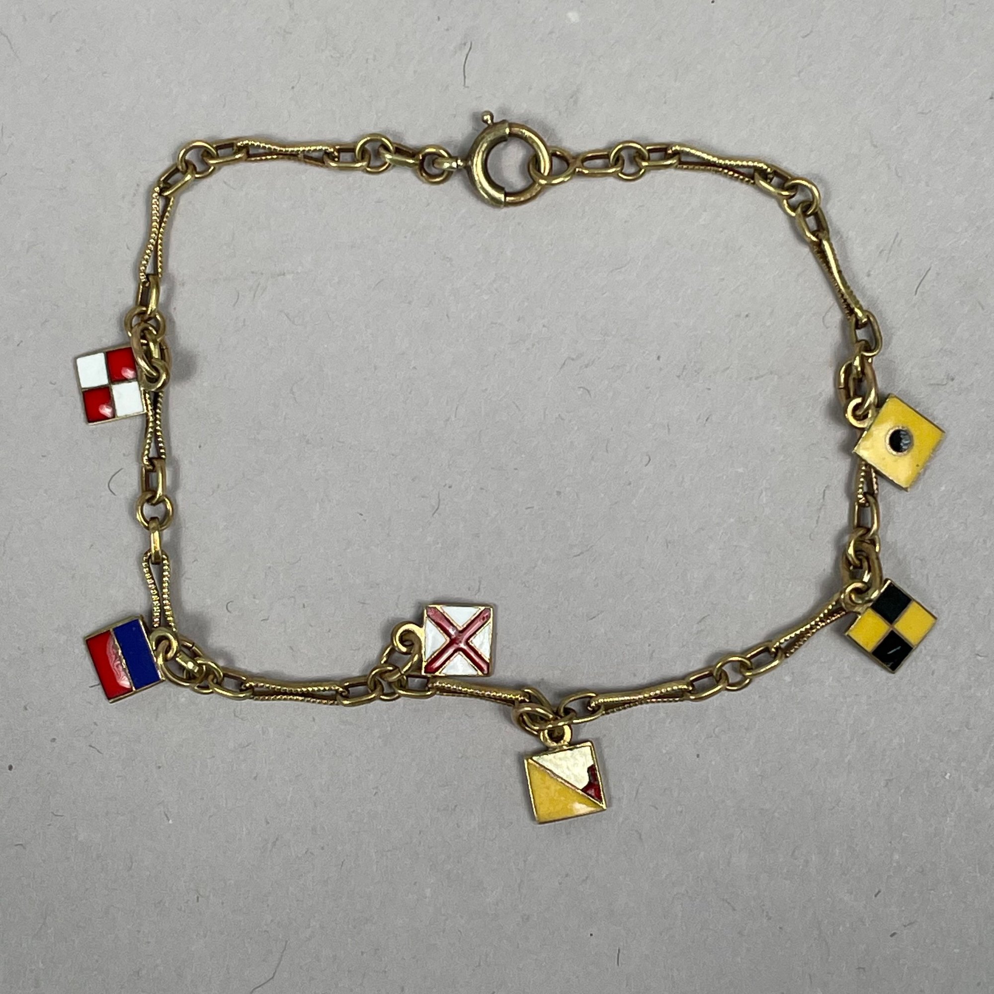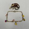 SLC (Salt Lake City) 14k Yellow Gold Enameled Leopard Pendant Slider, and a 14k Yellow Gold and Enamel or Glass Bracelet. The leopard pendant marked "SLC/ 14K;" the bracelet clasp marked "14K."