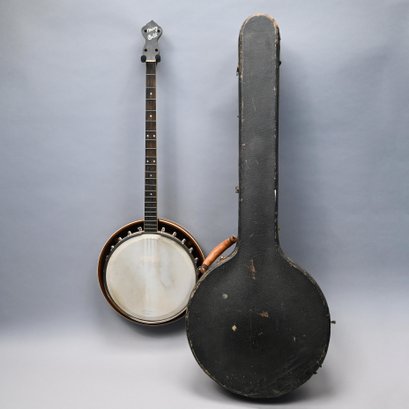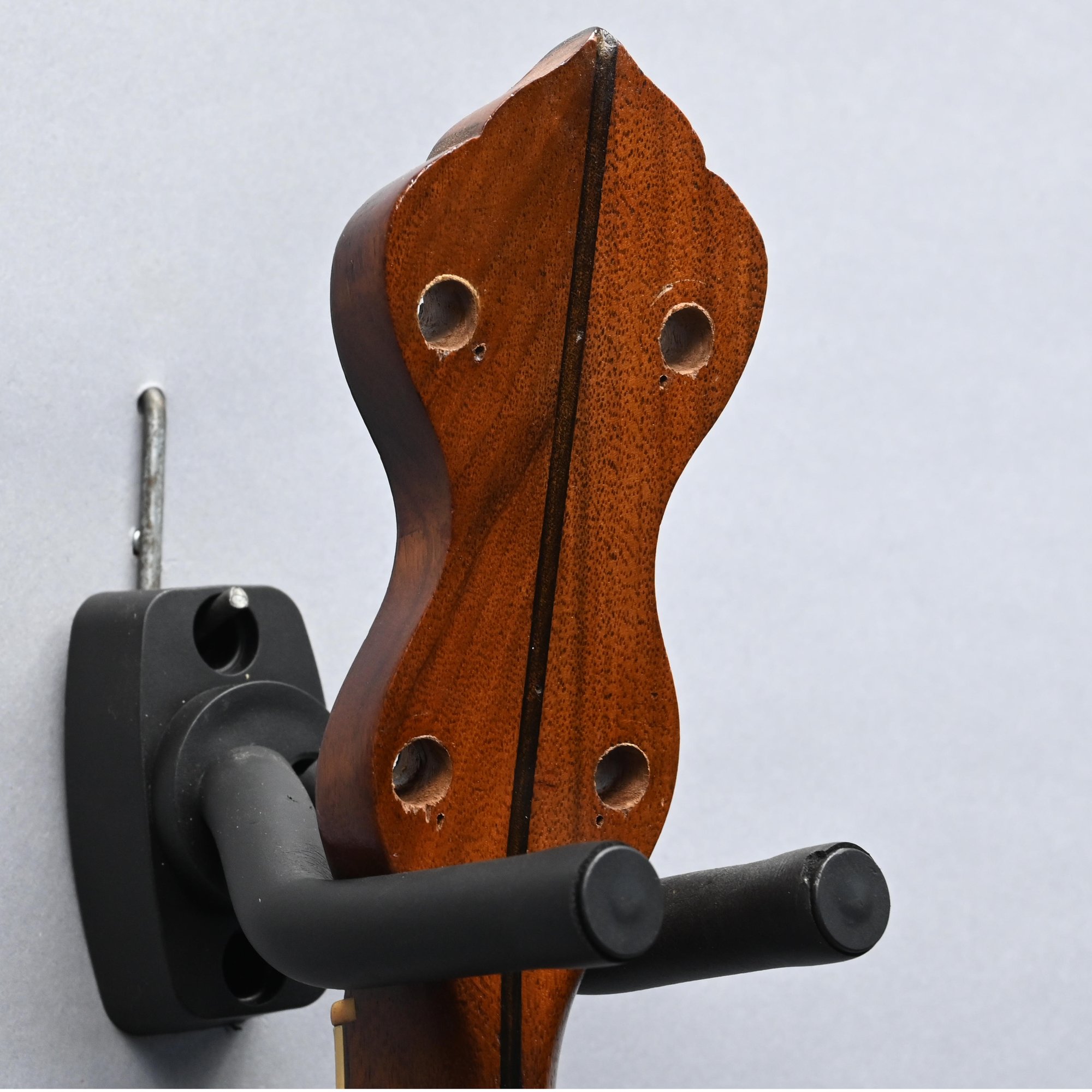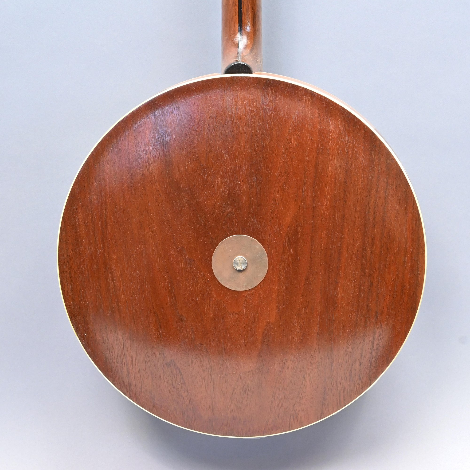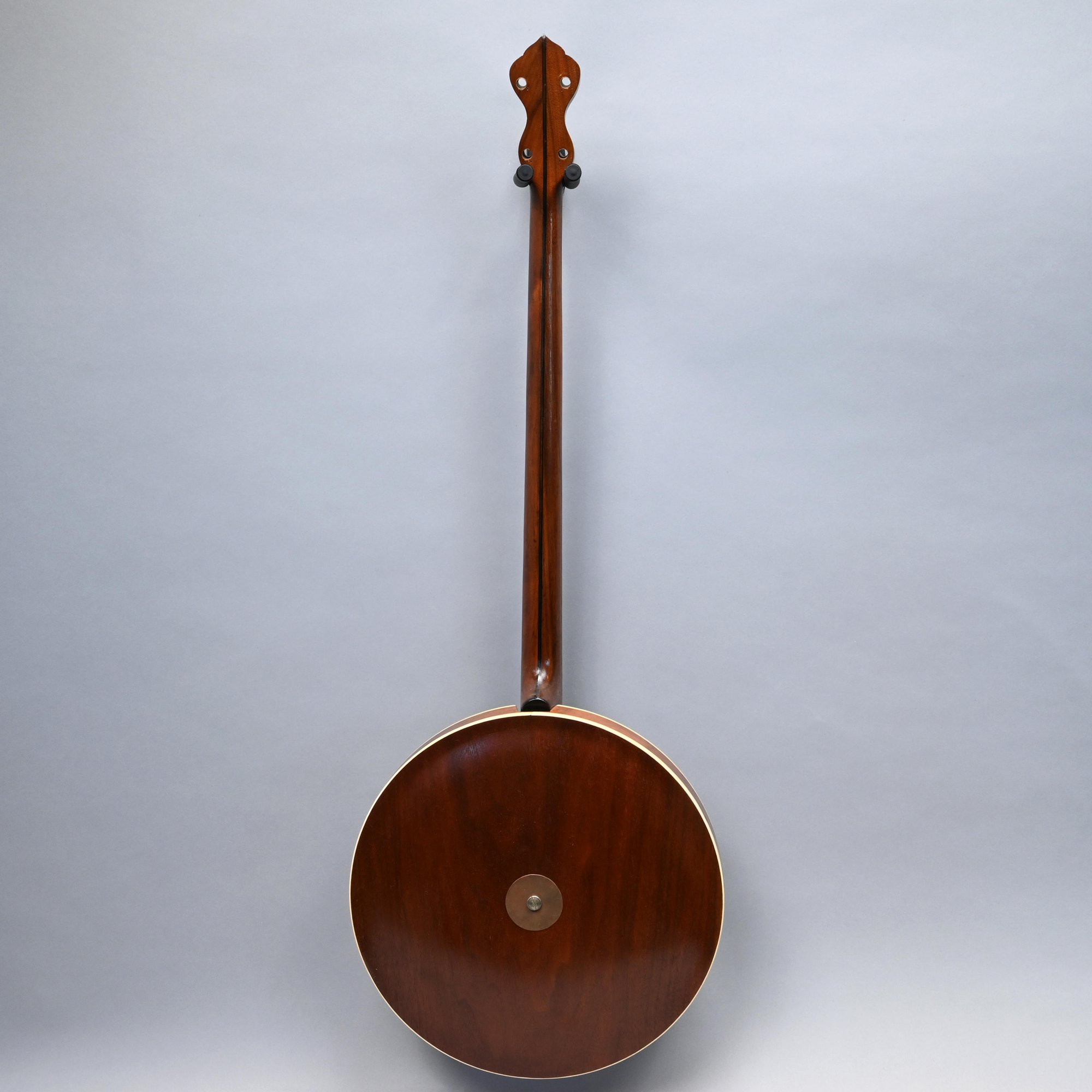 Slingerland May Bell Rosewood, Walnut and Mother-of-Pearl inlaid 23-Fret Four-String (Plectrum) Resonator Tenor Banjo, 1920-40. Inlaid in mother-of-pearl on the peghead "May Bell," the drum head marked, together with one Black Diamond String steel 1st loop end 720 1/2, one Black Diamond 2nd steel n. 721 string, one Black Diamond String steel 2nd loop end 721 1/2, one Black Diamond String wound on steel 4th, and one Gibson Plectrum and 5-String banjo C or 4th-Wound strings; housed in a hardshell case.