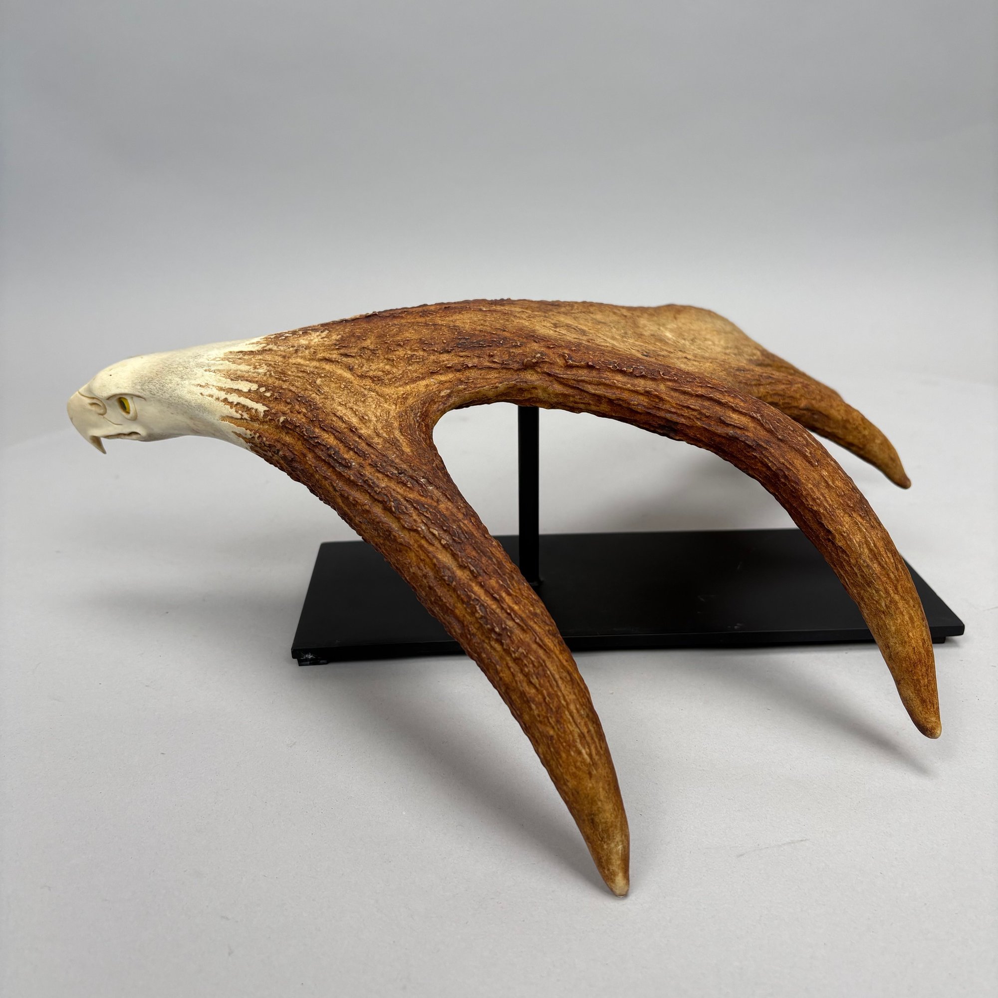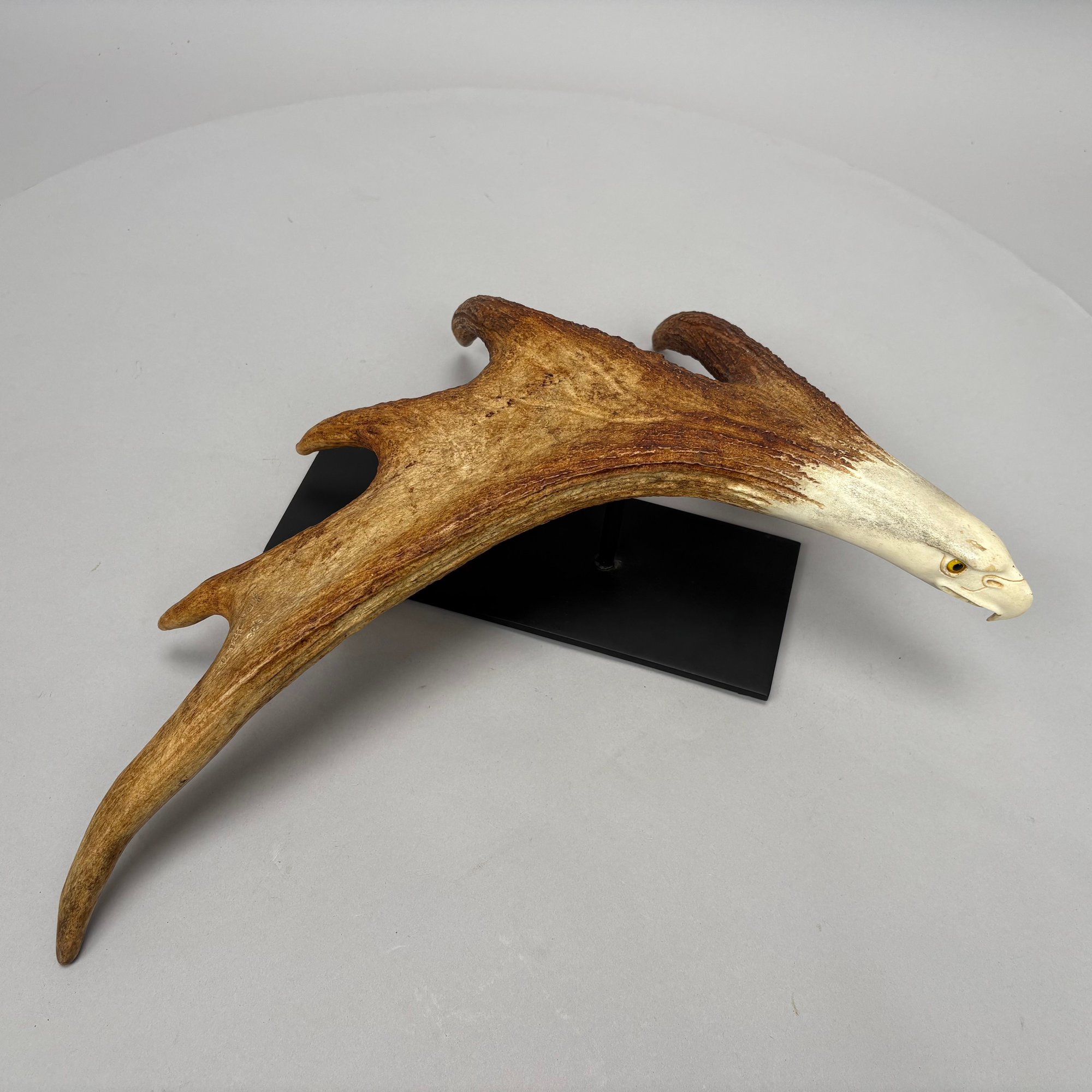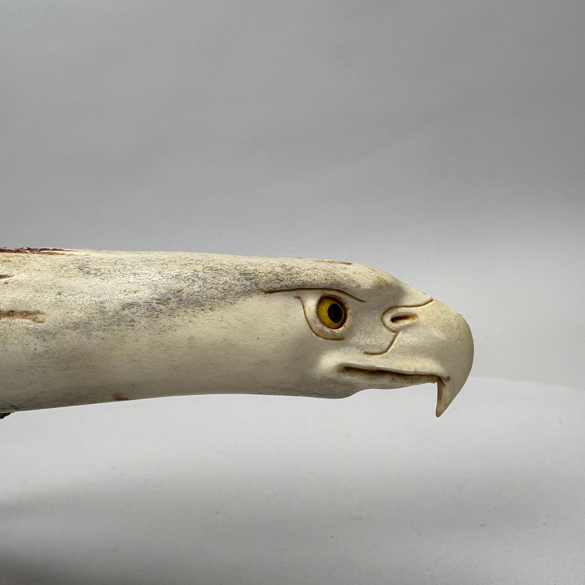 Stan Hill, Jr. (Northwest Coast First Nations, 1921- 2003). Moose Antler Carved as a Bald Eagle in Flight, 1988. Signed "Stan Hill Jr./ 1988." (Stand not included)