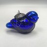 Blue lobed ball: H: 4.375 in. (To top of loop hanger), Diam: 3.75 in.