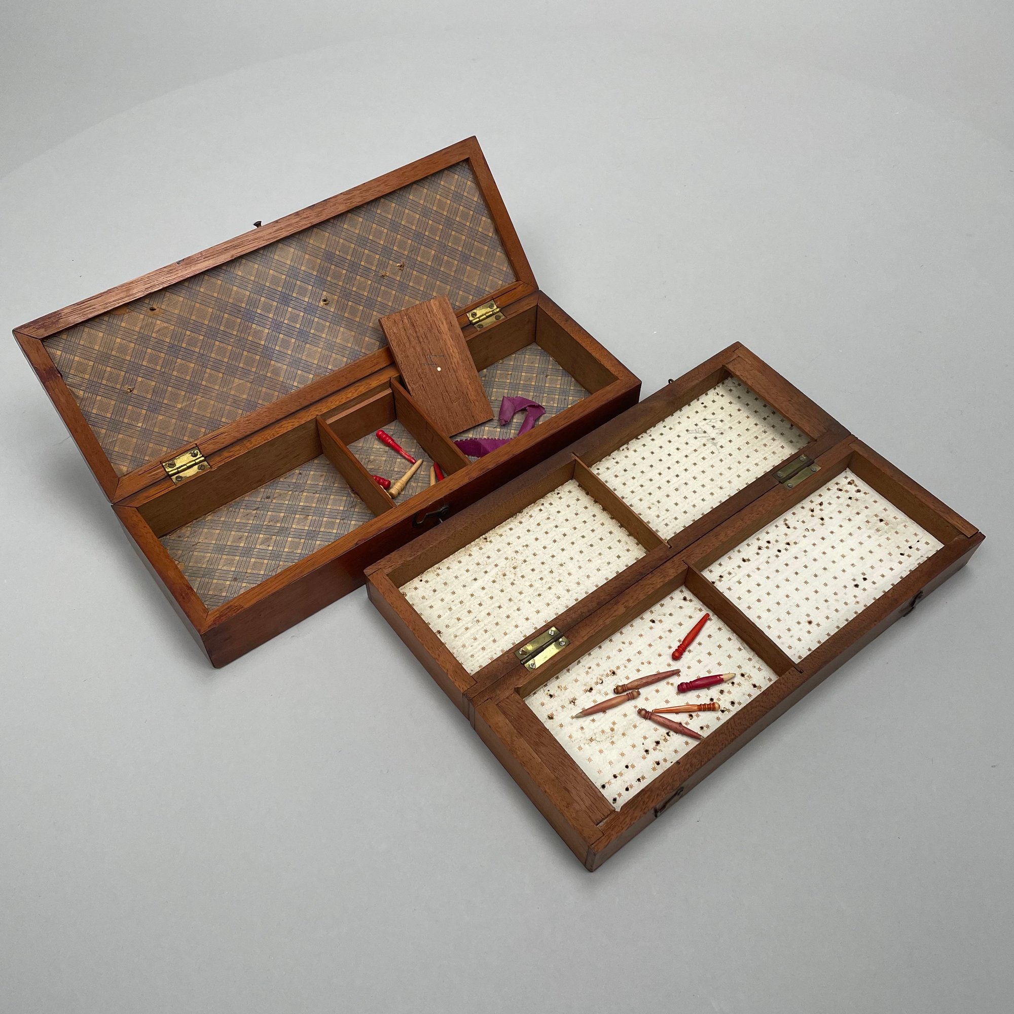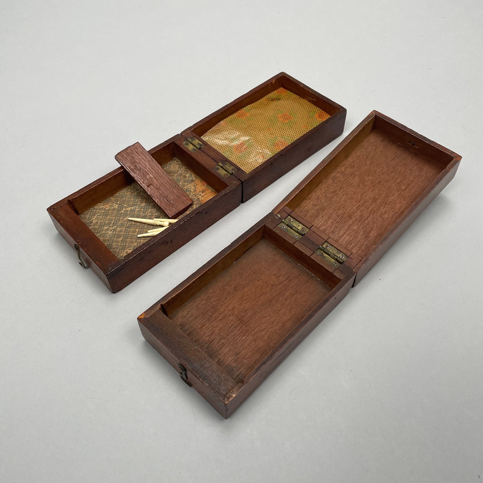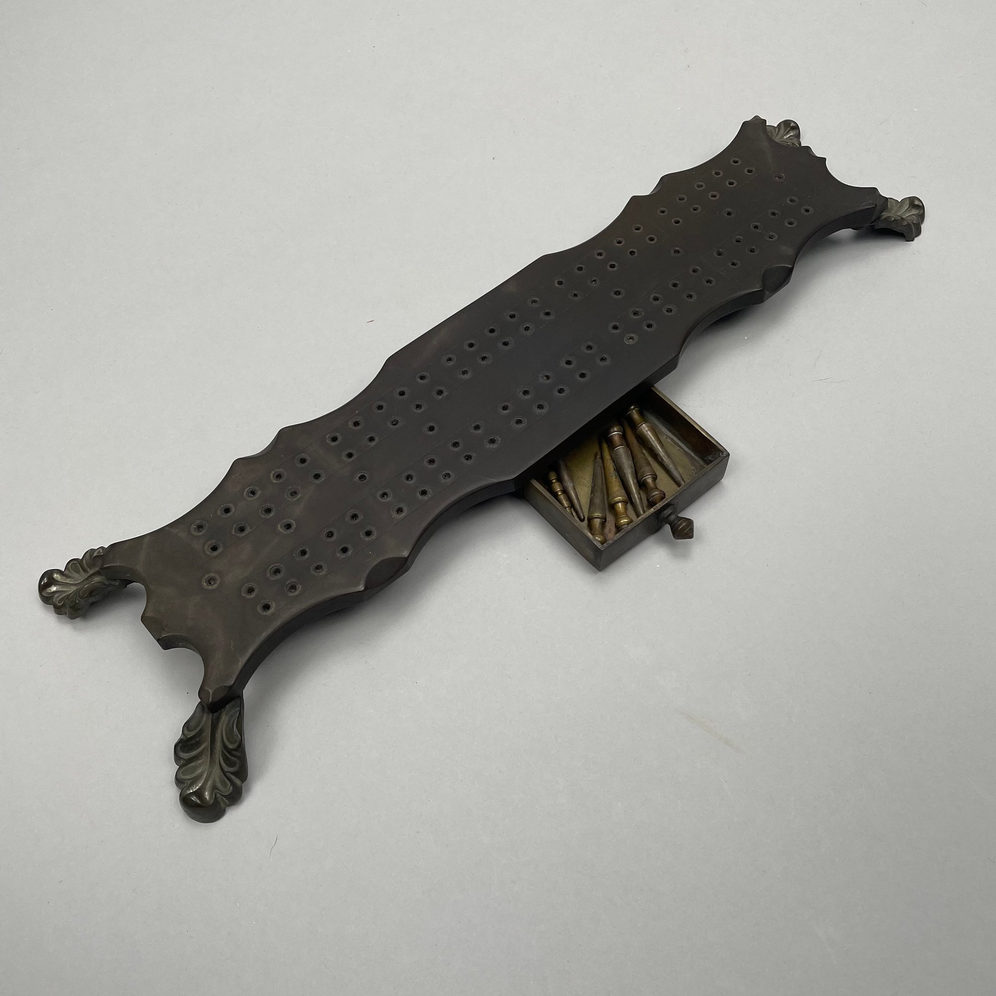 Ten Various Woods Cribbage Boards. Inlaid in various woods comprising rosewood, mahogany, teakwood and including a slate and a heavy cardboard example.