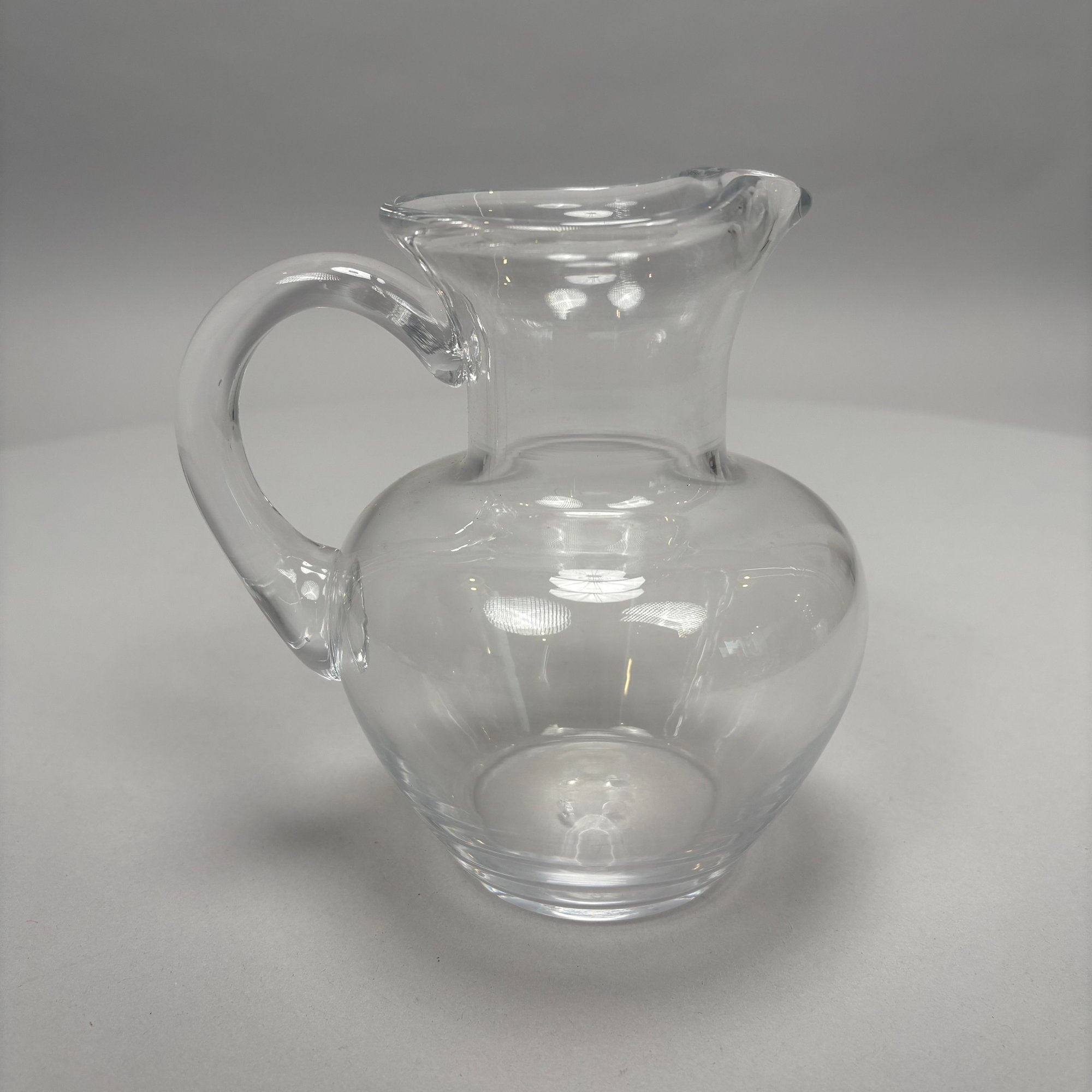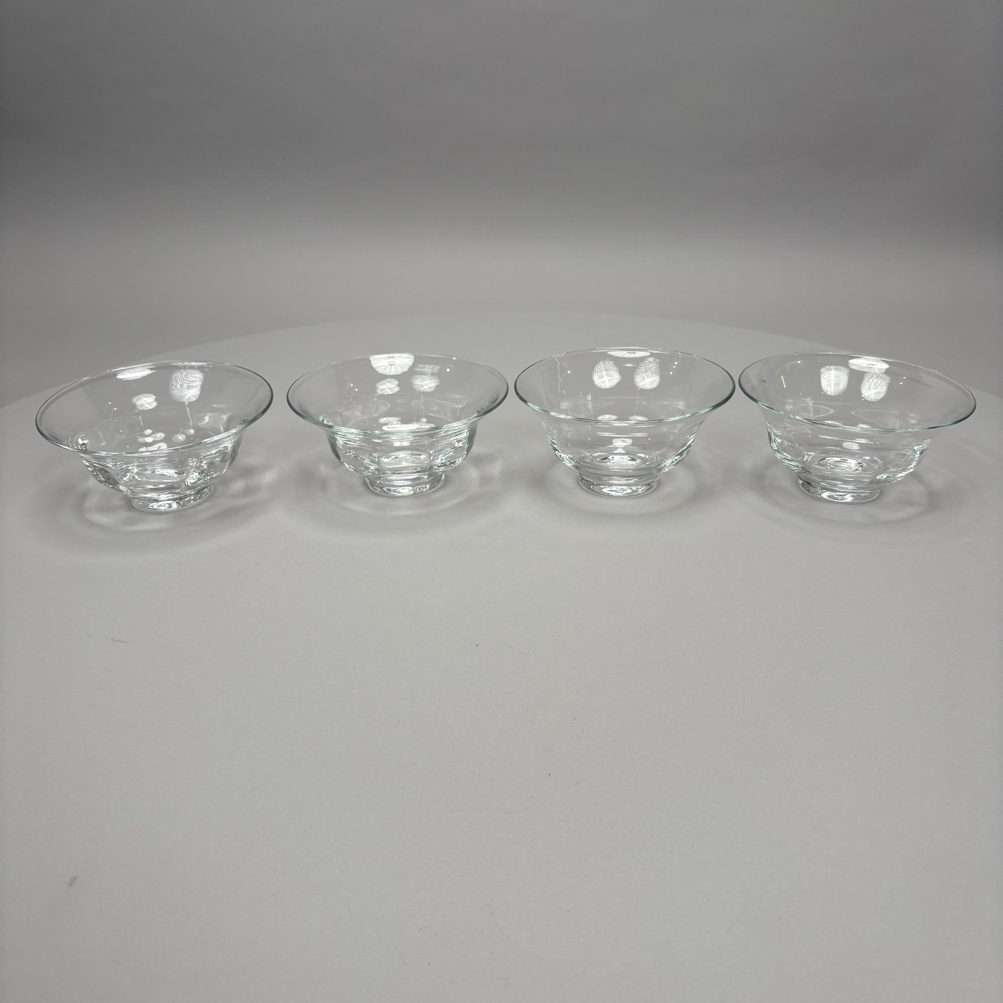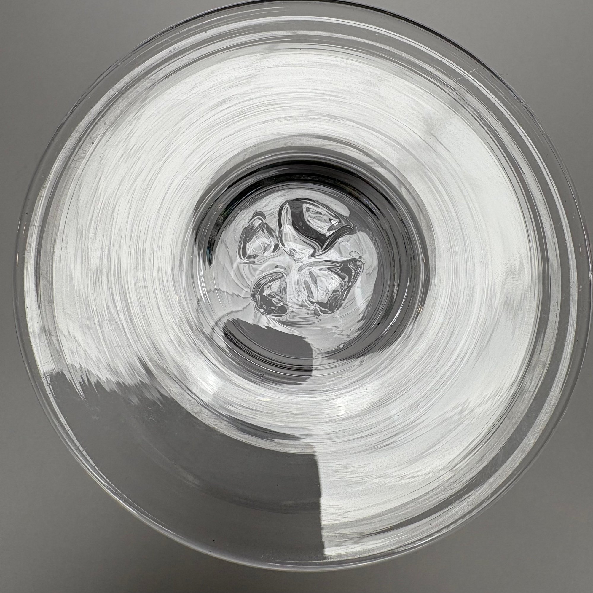 Thirteen Contemporary Simon Pearce Colorless Glass Tablewares, 20th Century. Some patterns discontinued, comprising a 4- inch PEZ3 'Windsor' pitcher (2008-2015), a 6.625- inch 'Meriden' pitcher (2008-2015), four Woodbury 5- inch glasses, four 'Shelburne' 5.875- inch bowls and a footed pedestal bowl, an 8- inch PEZ8 open hurricane vase and a paperweight, all but the paperweight acid-etched "Simon Pearce" with four-part pontil mark, the paperweight acid-etched "Simon Pearce."