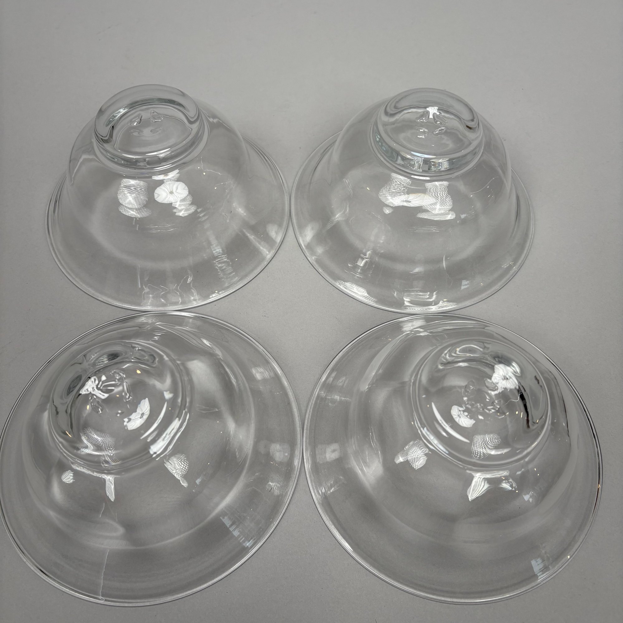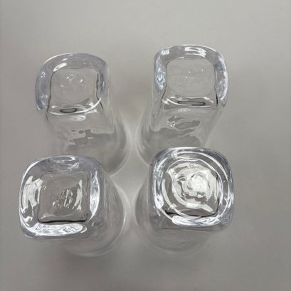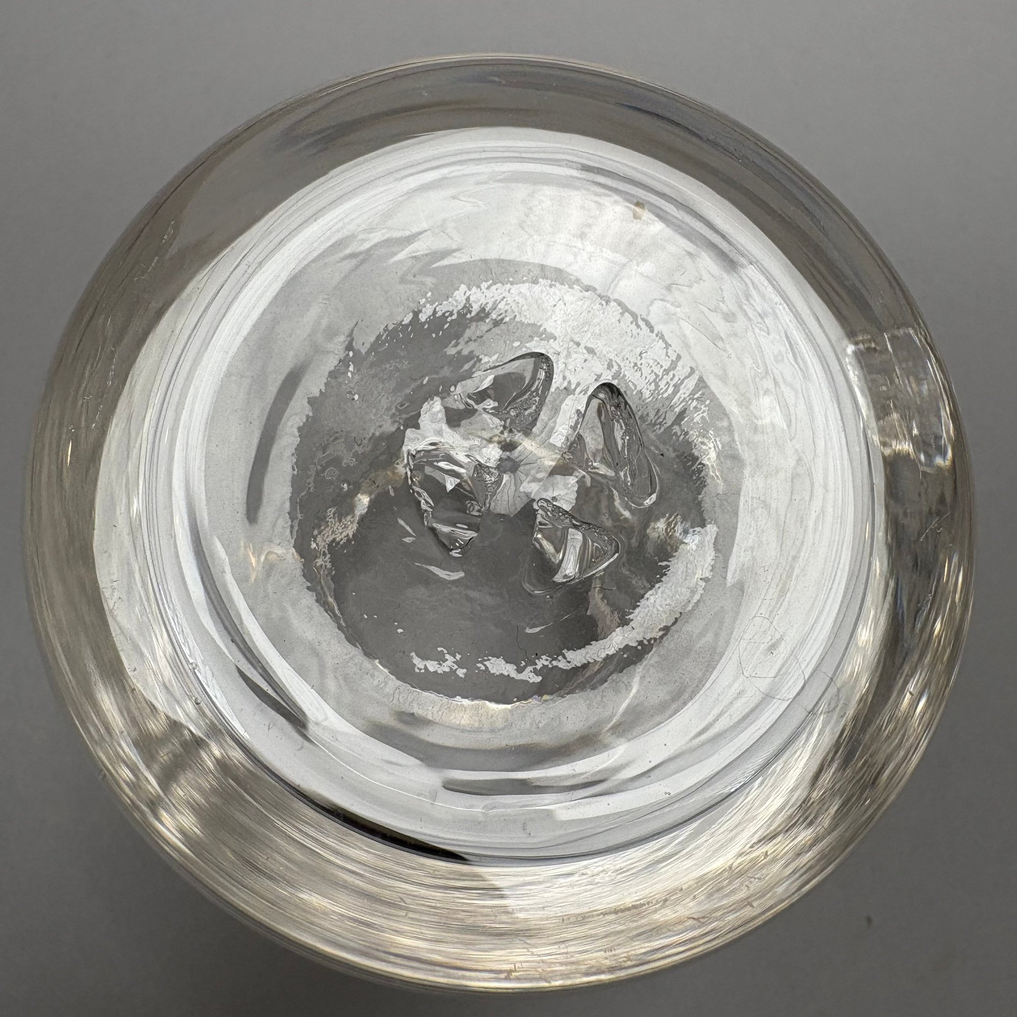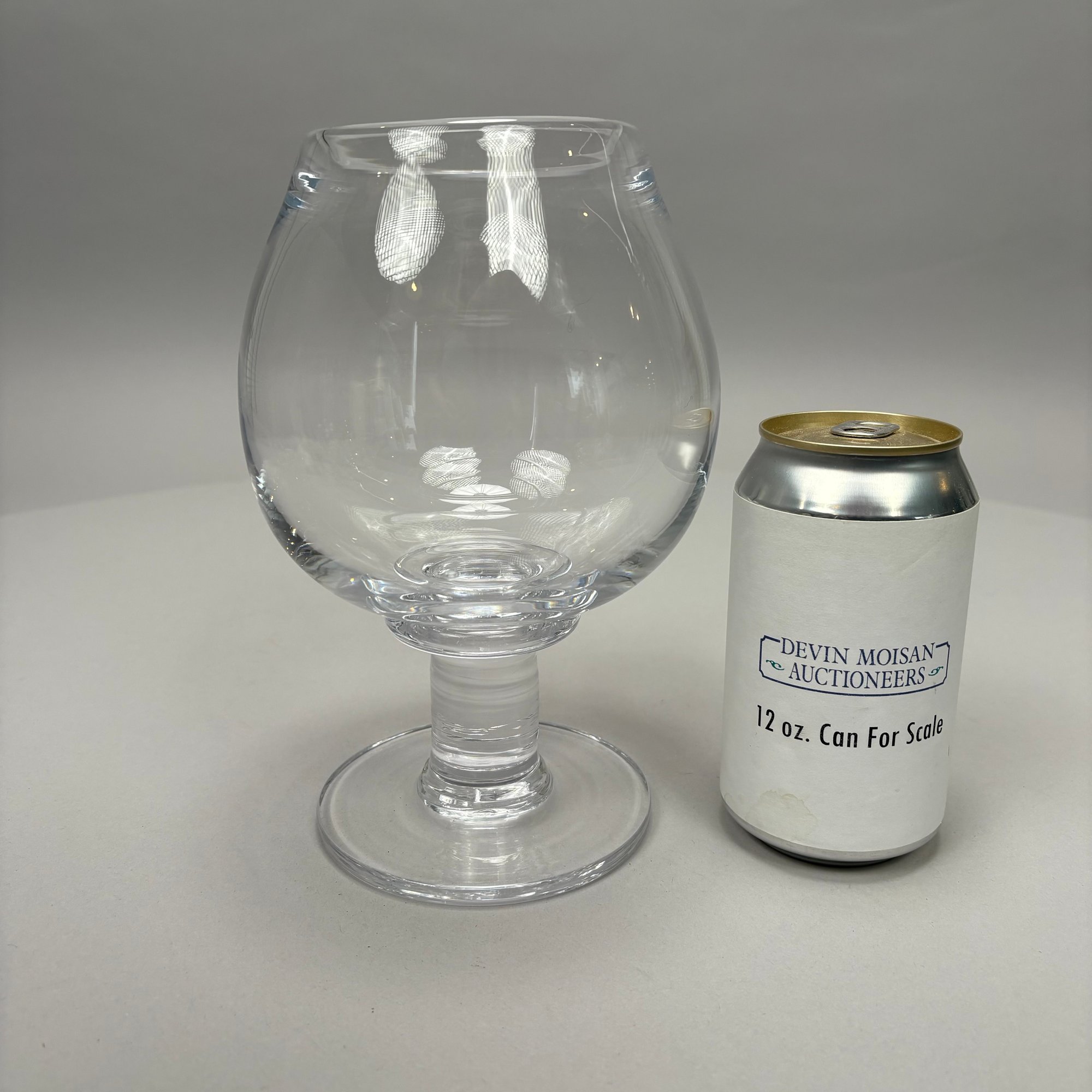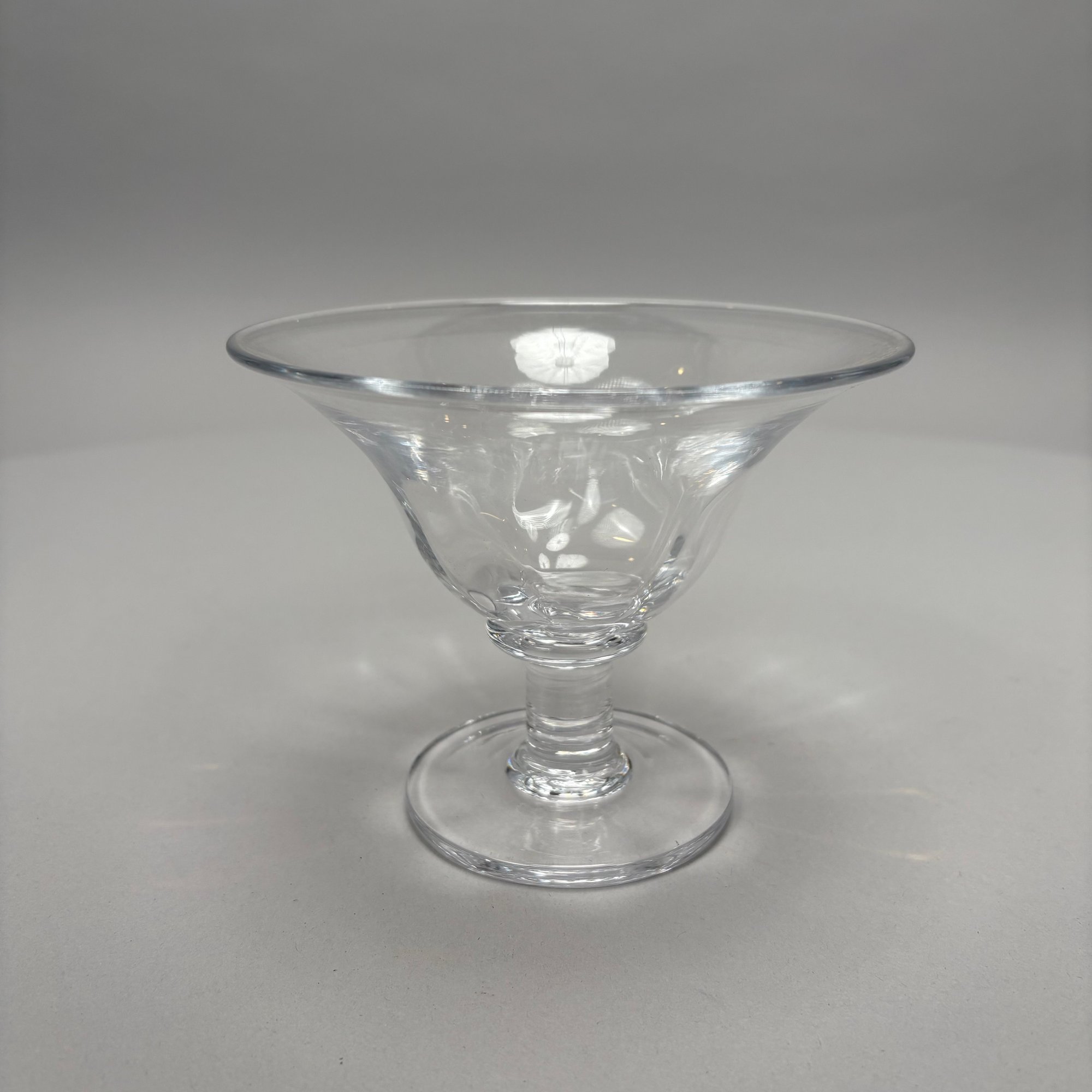 Thirteen Contemporary Simon Pearce Colorless Glass Tablewares, 20th Century. Some patterns discontinued, comprising a 4- inch PEZ3 'Windsor' pitcher (2008-2015), a 6.625- inch 'Meriden' pitcher (2008-2015), four Woodbury 5- inch glasses, four 'Shelburne' 5.875- inch bowls and a footed pedestal bowl, an 8- inch PEZ8 open hurricane vase and a paperweight, all but the paperweight acid-etched "Simon Pearce" with four-part pontil mark, the paperweight acid-etched "Simon Pearce."