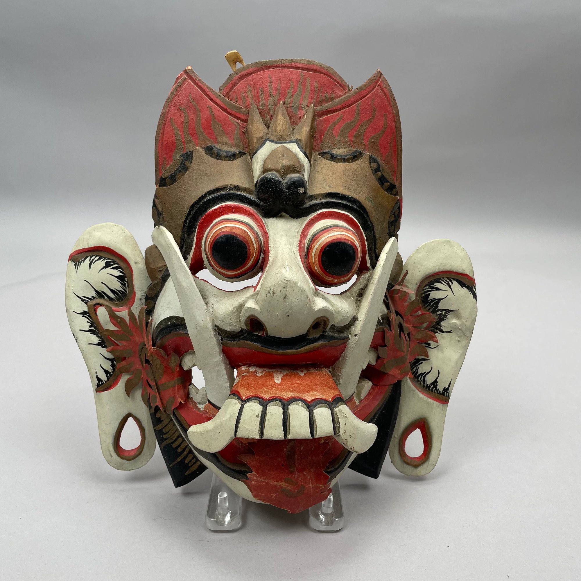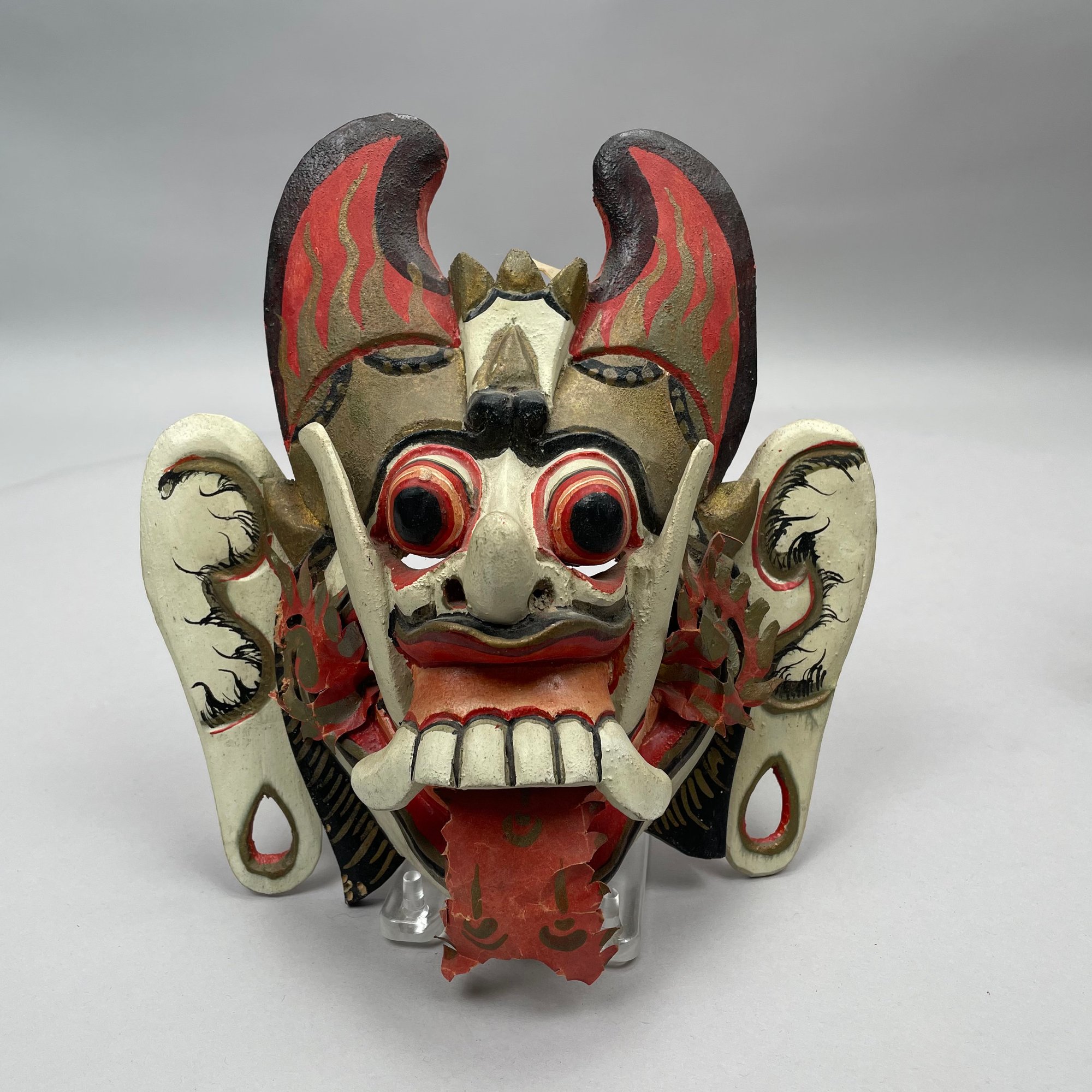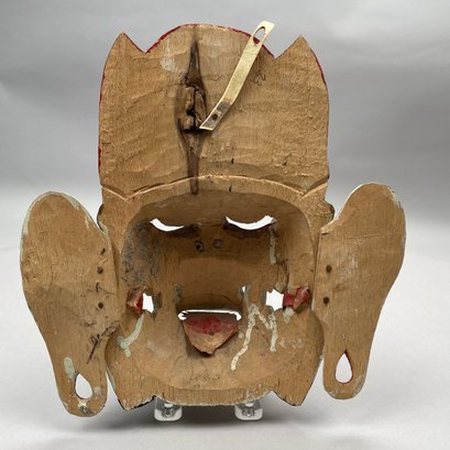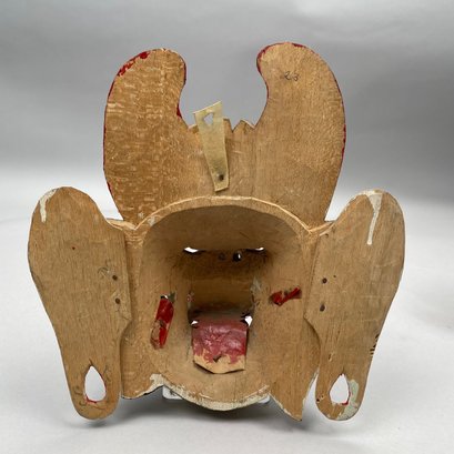Green bird's head mask: H: 4.5 in., W: 12.25 in., D: 7 in.