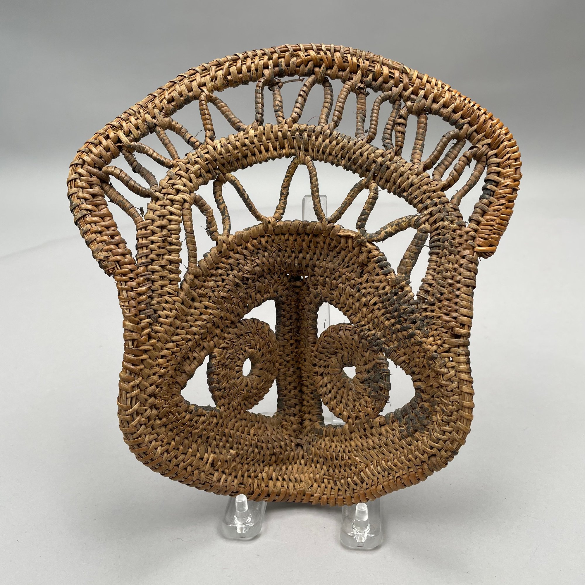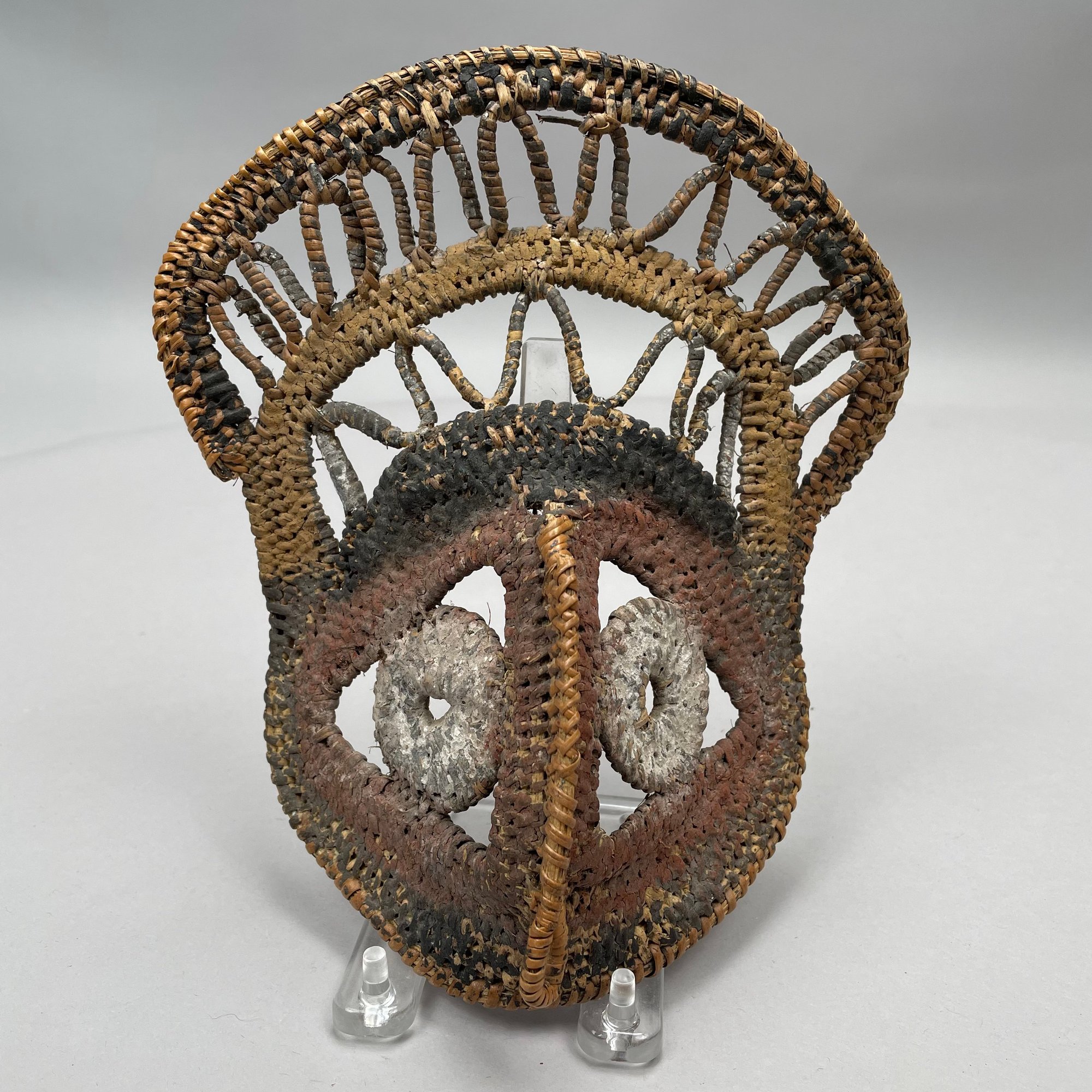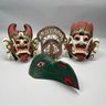 Three Ethnographic Carved and Painted Wood Masks and a Woven Grass Mask.