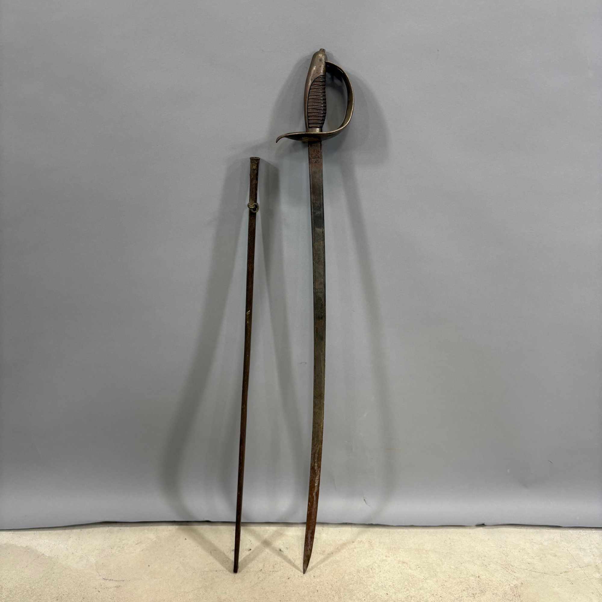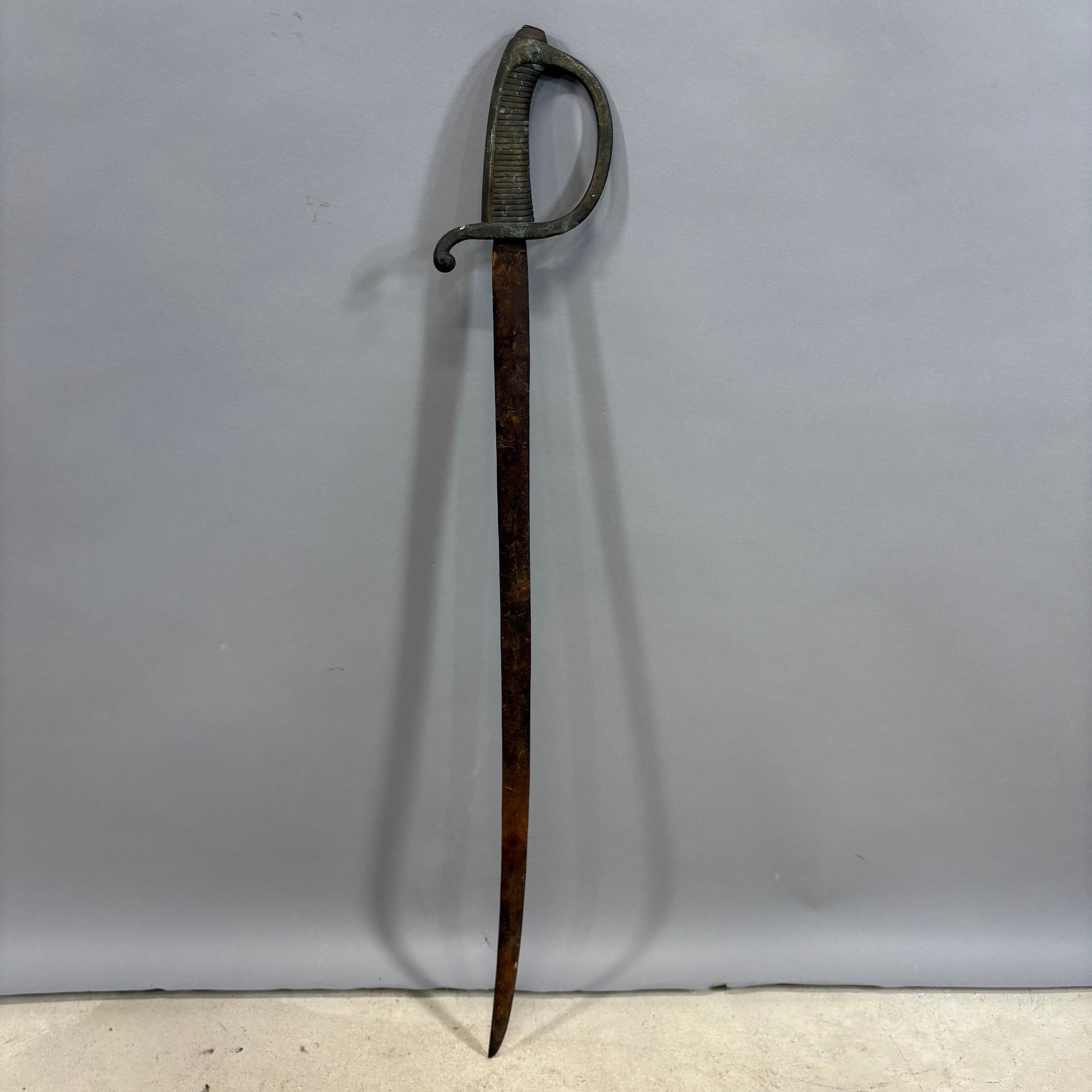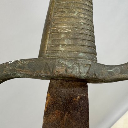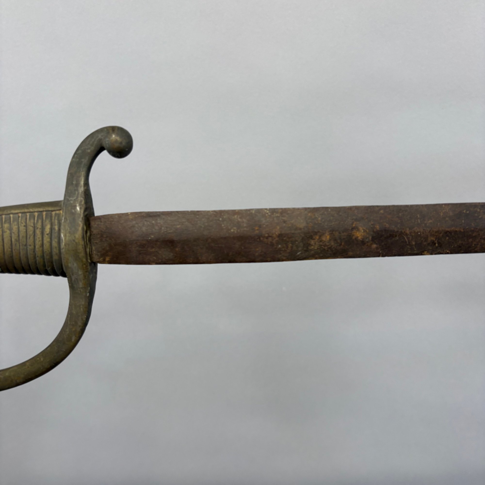 European briquet sword: L: 34.375 in.. W: 4.5 in., D: 1.125 in.