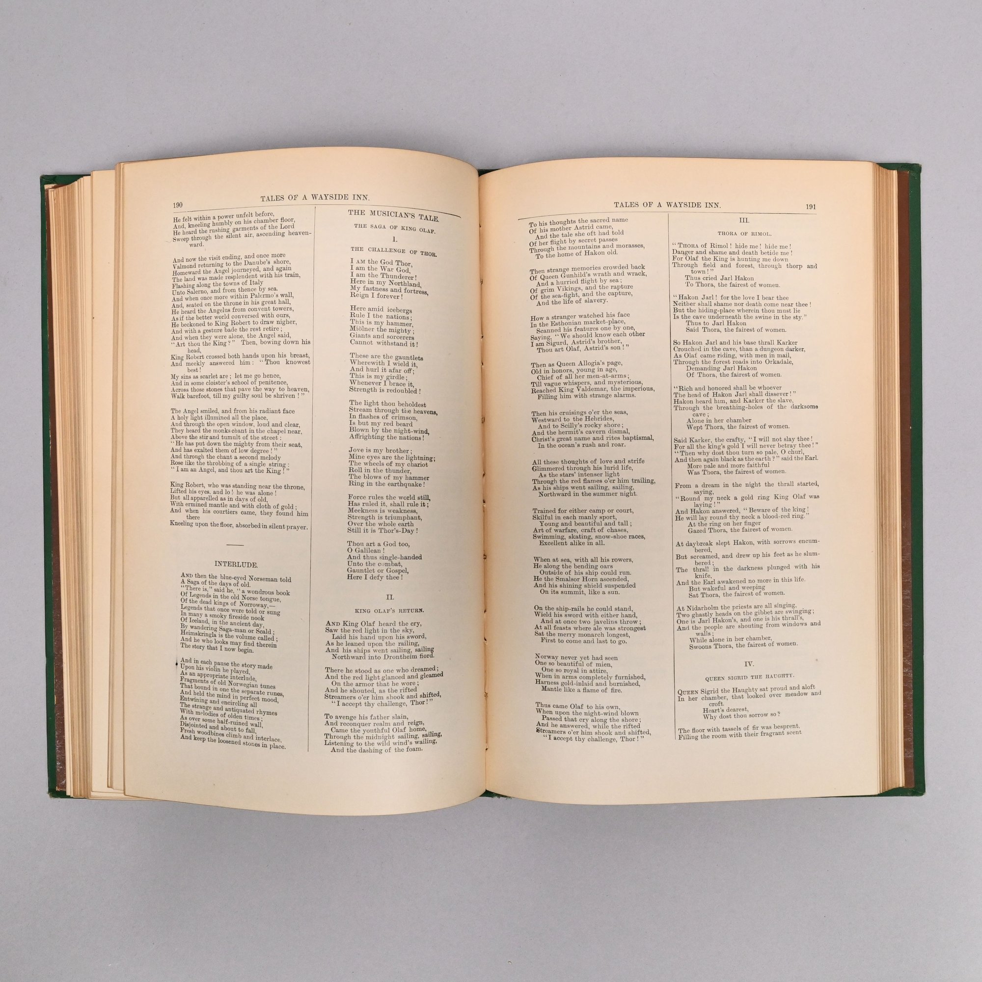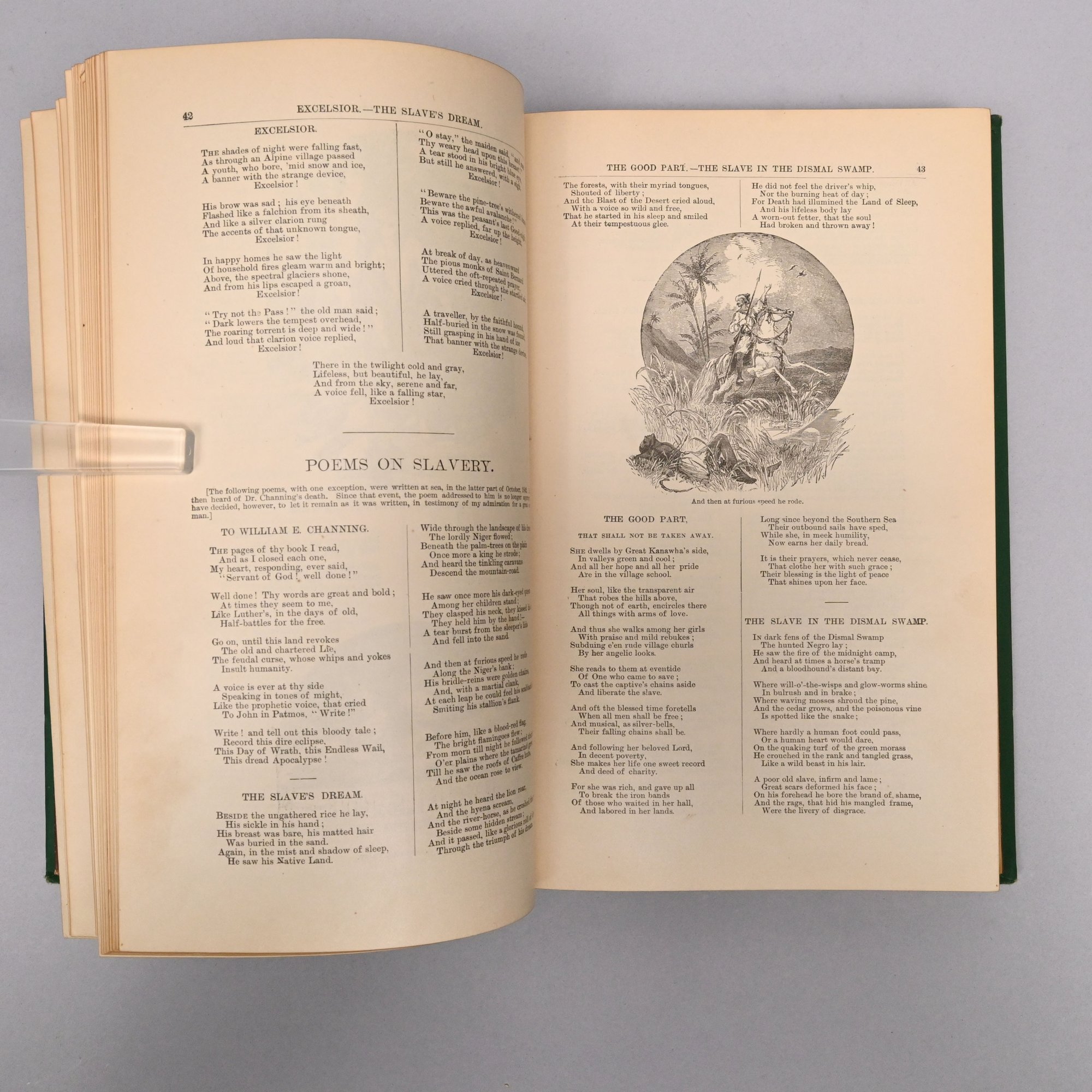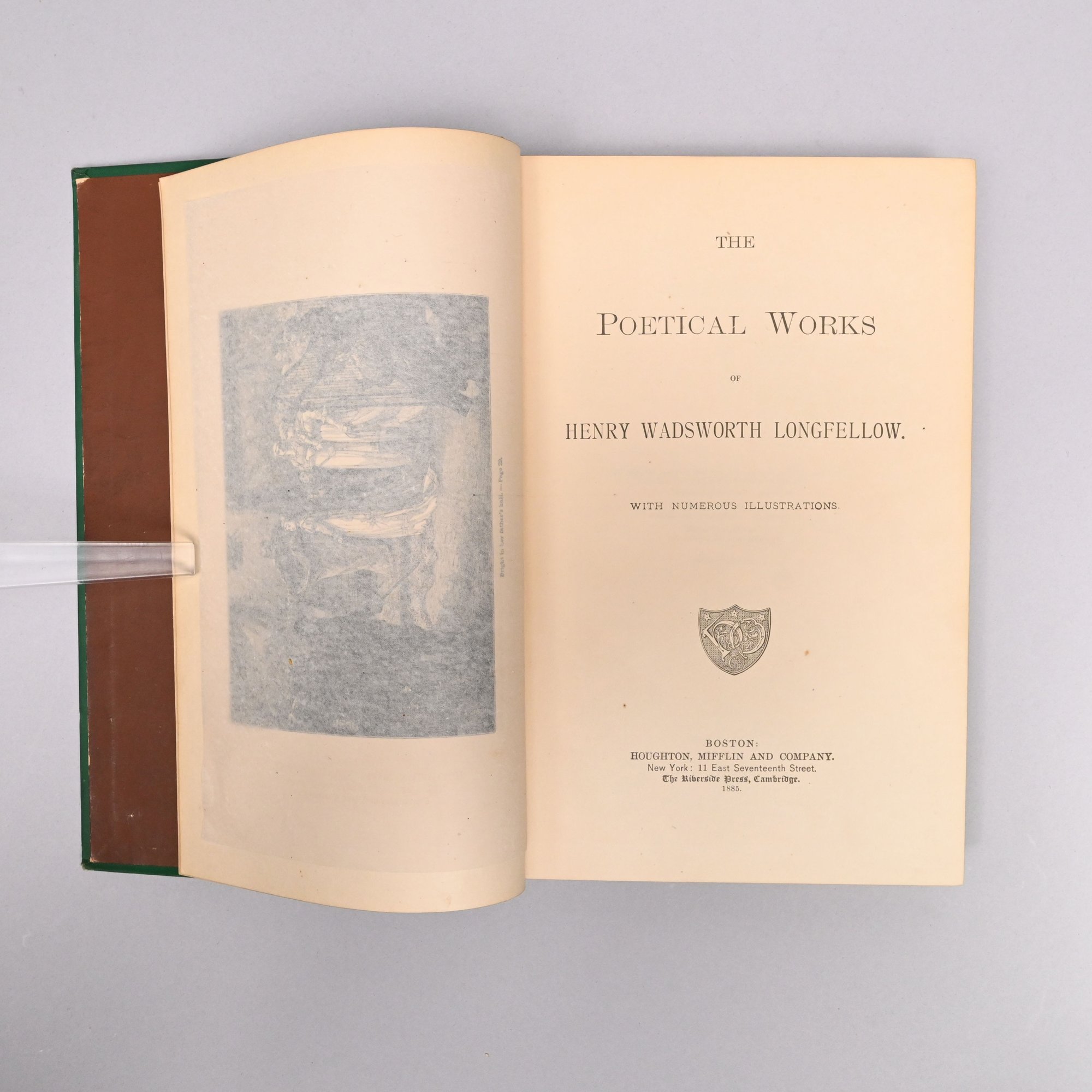 Three Early Editions by American Authors. Comprising Pearl S. Buck. "The Good Earth." New York: The John Day Company, 1931 (Fifth printing, June, 1931); Ernest Hemingway. "For Whom the Bell Tolls." New York: Charles Scribner's Sons, 1940; and "The Poetical Works of Henry Wadsworth Longfellow." Boston: Houghton, Mifflin and Co., 1885, with numerous illustrations.