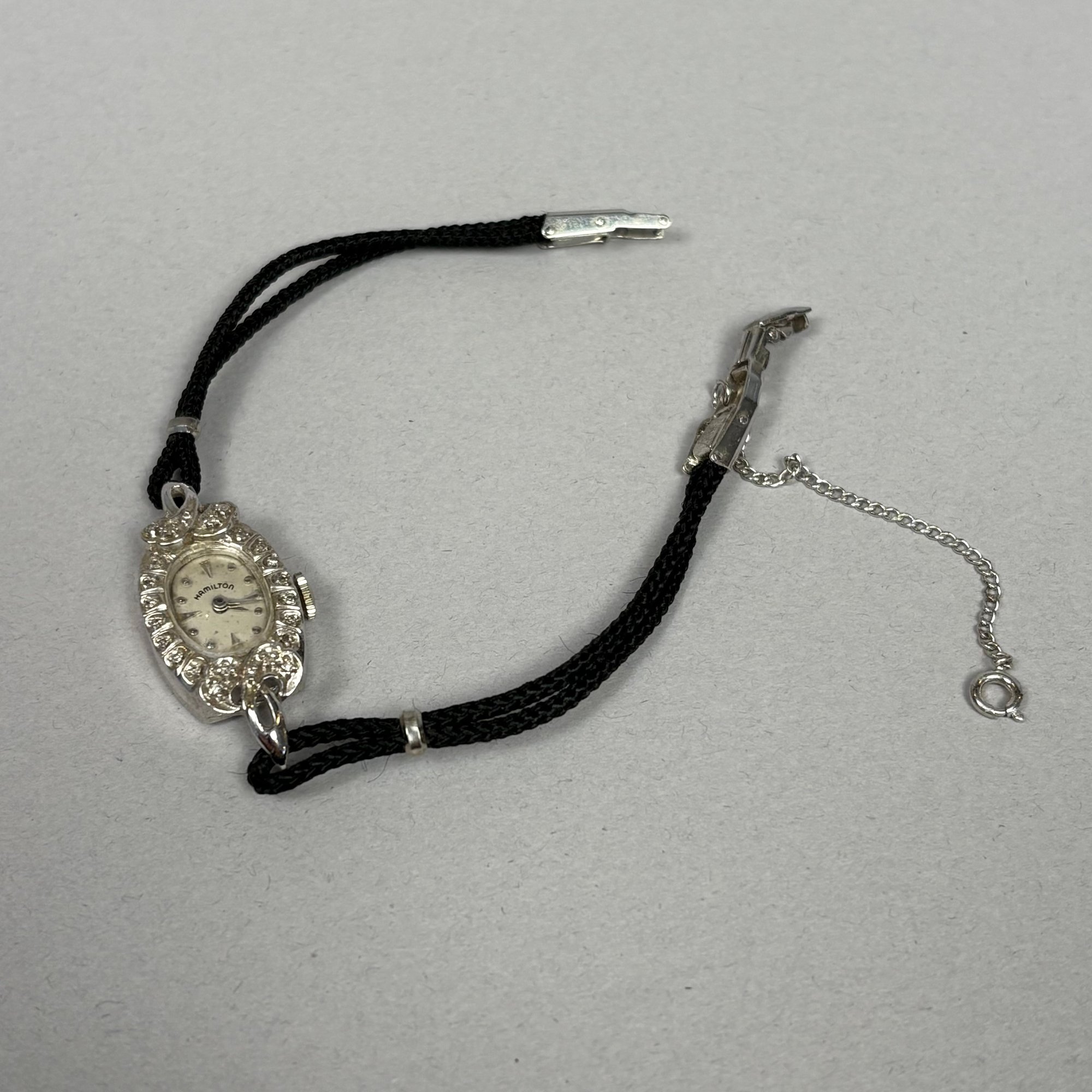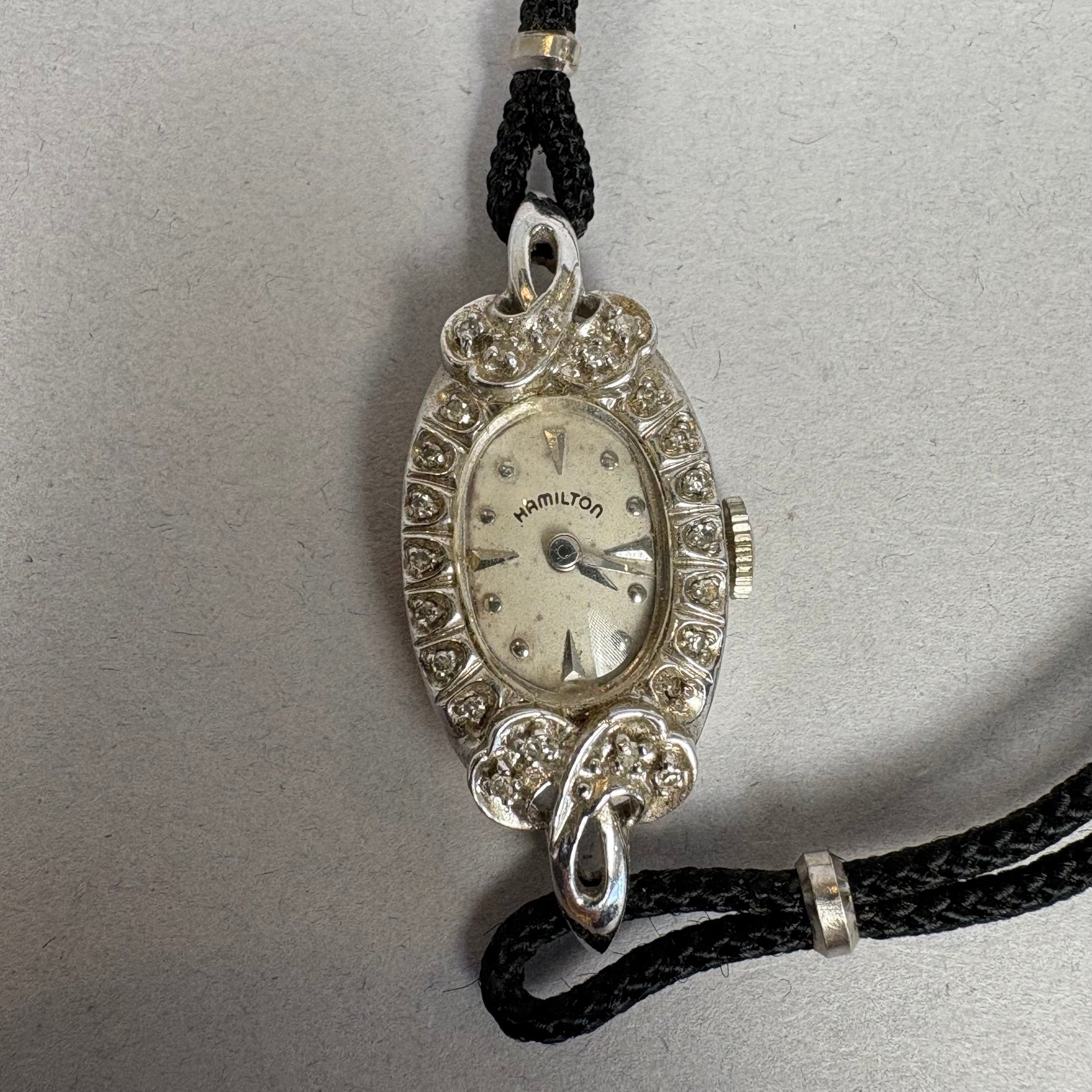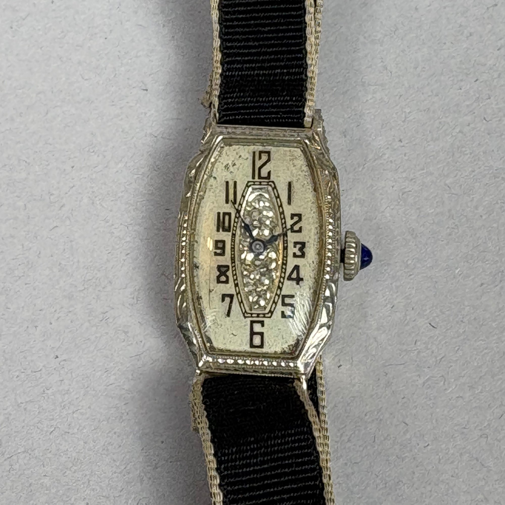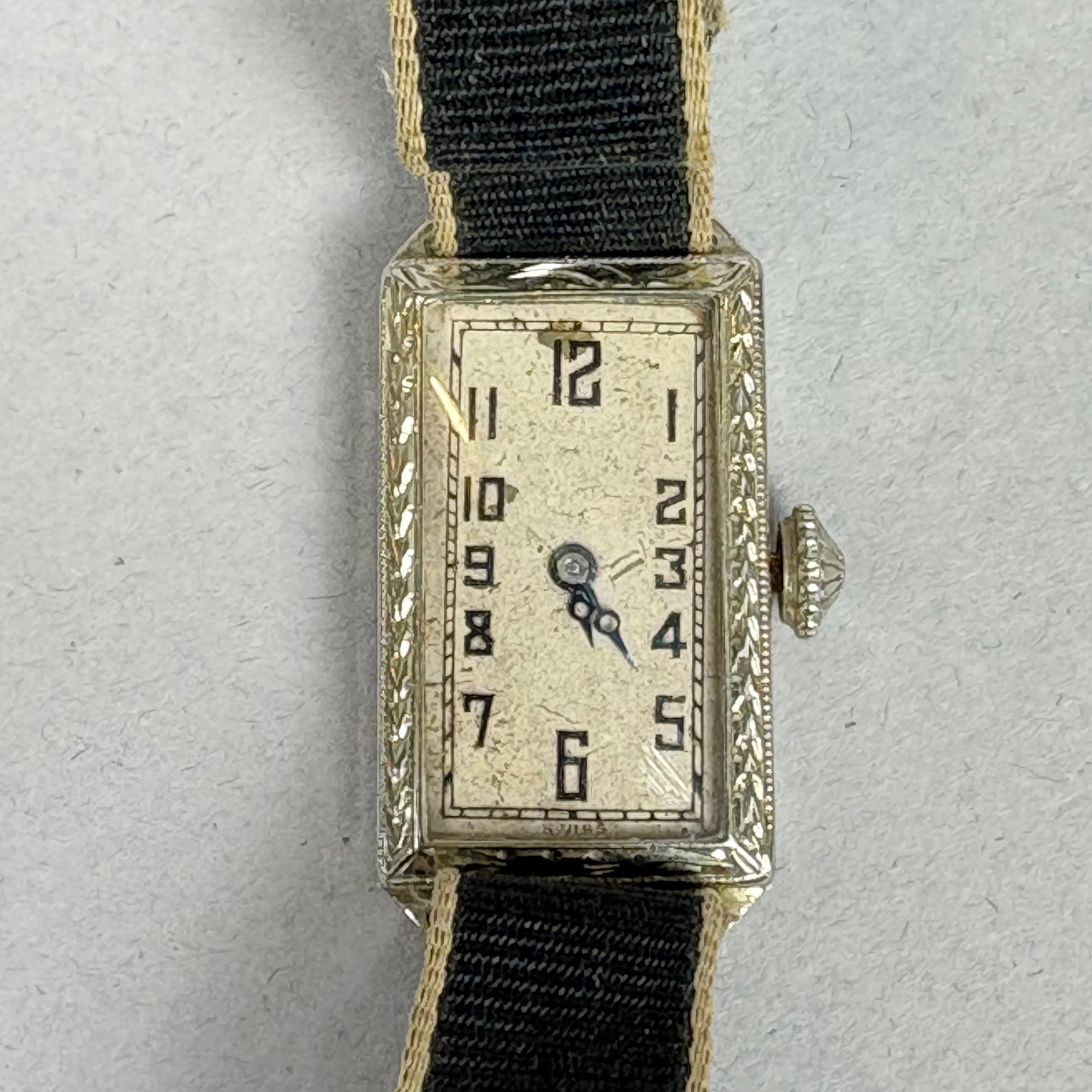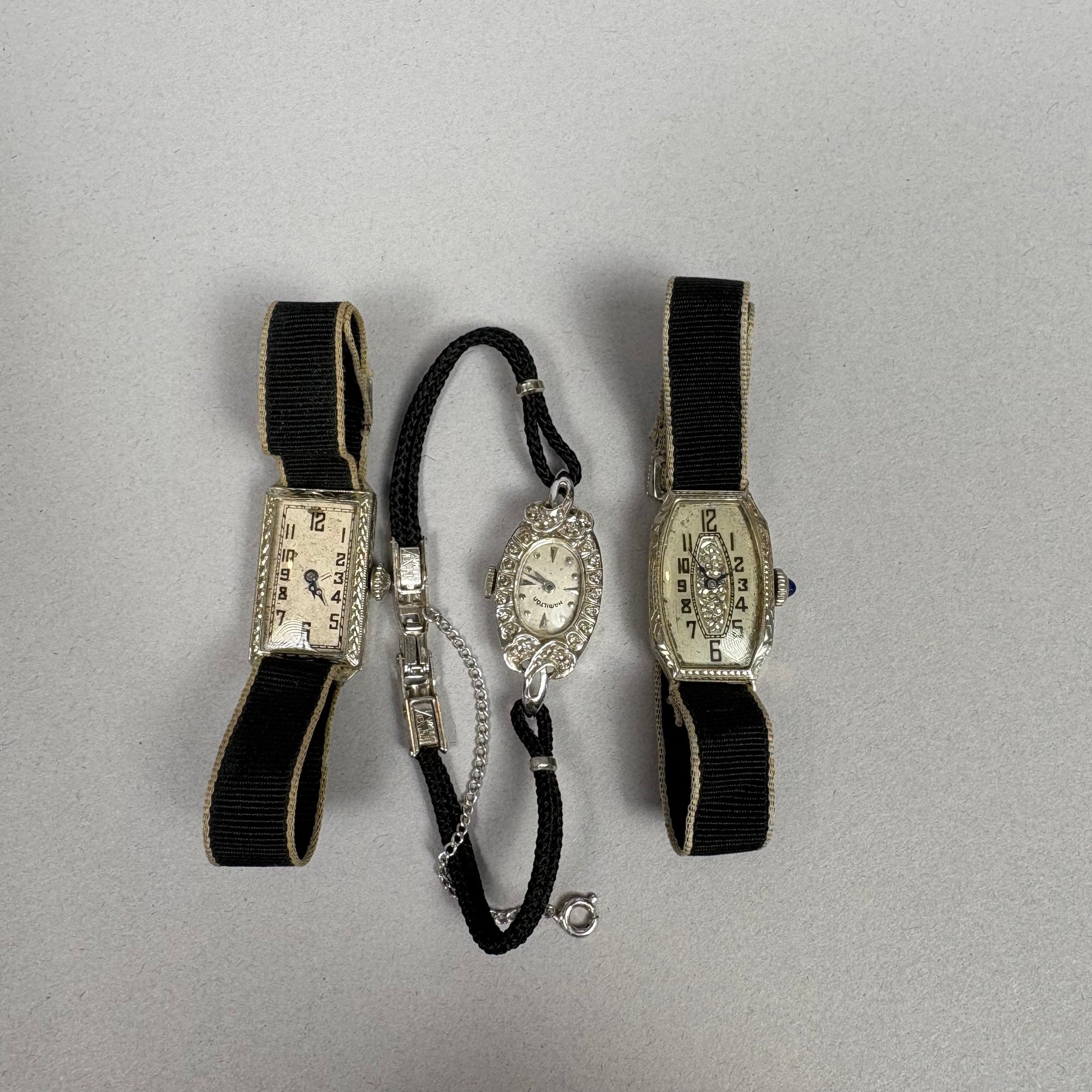 Three Gold Art Deco Ladies Wristwatches, one 18k & two 14k, 1920s-1930s. The first with rectangular face marked "Swiss", stamped 18k on interior of case; a Hamilton set with diamonds and marked "14K" on back plate and the third, marked 14k on interior of case.