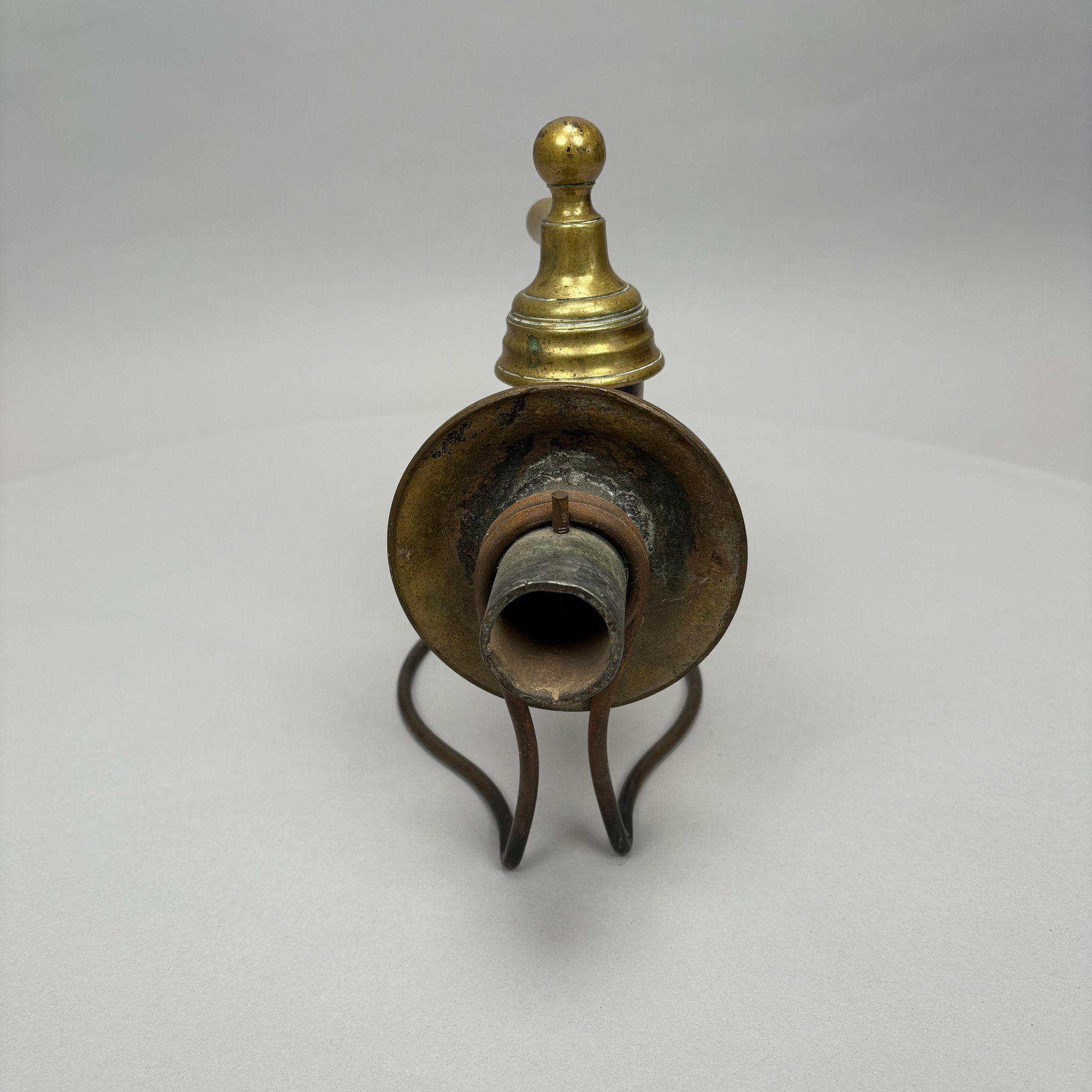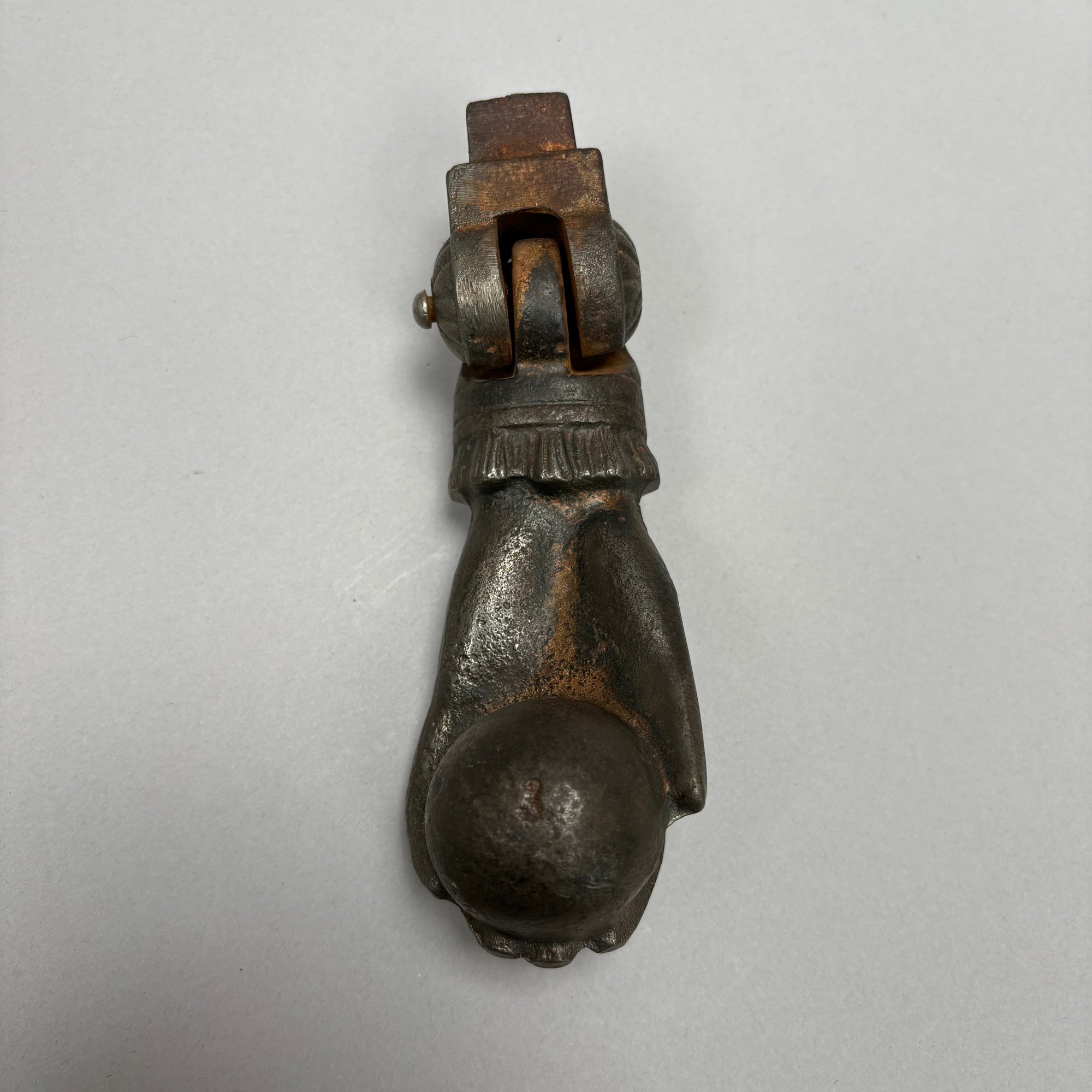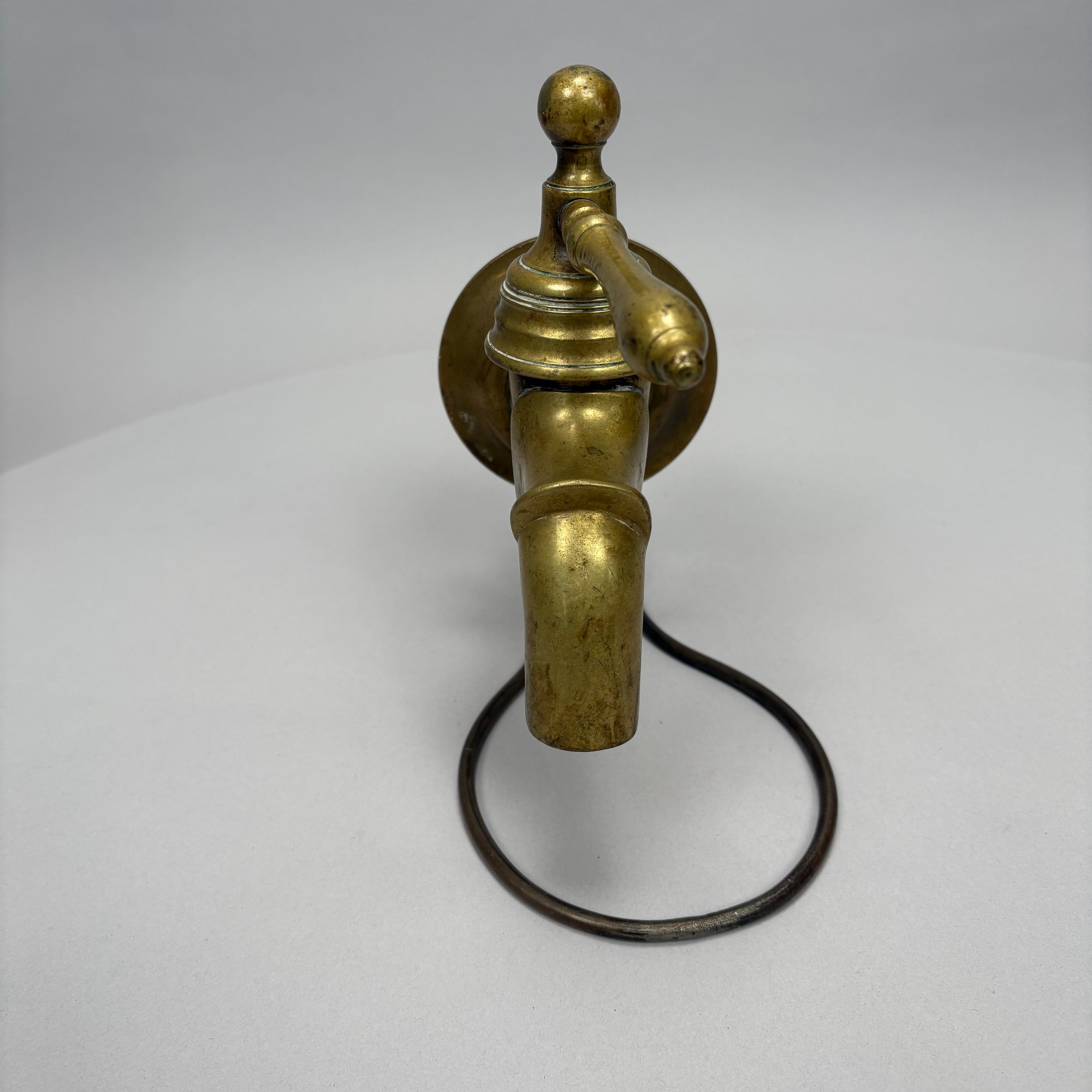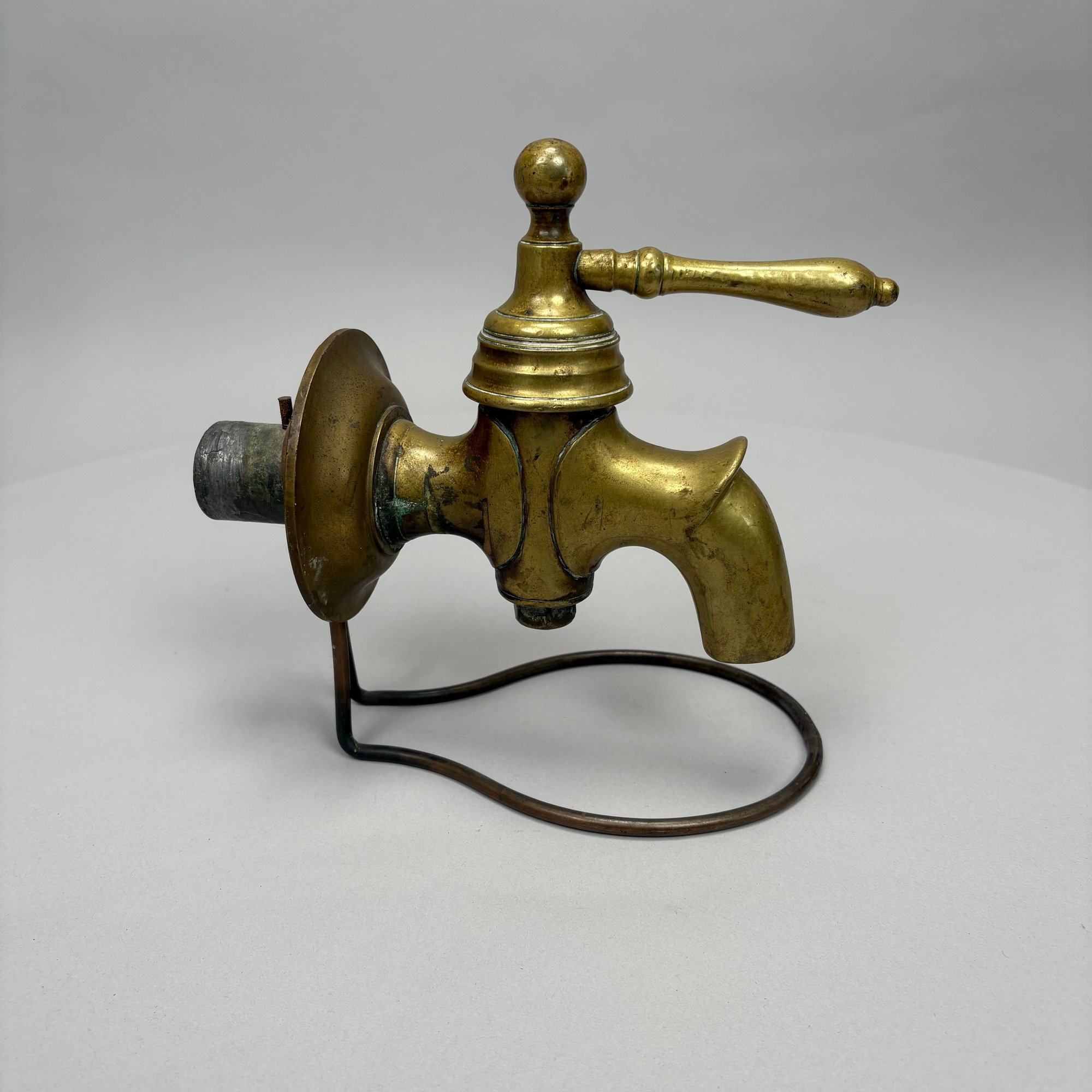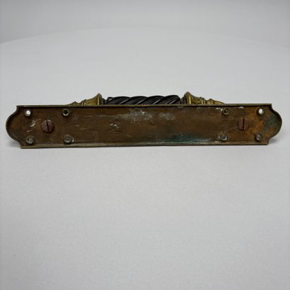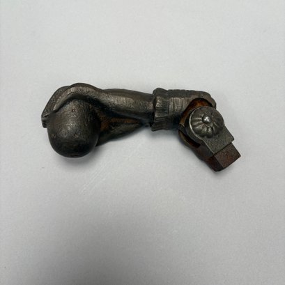 Three Household Brass and Iron Salvage Items, Late 19th-Early 20th Century. Comprising a hand-form door knocker, a door handle with plate and a spigot.