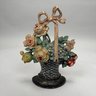 Basket of roses and mixed flowers: H: 10.75 in., W: 8.375 in., D: 2.25 in.