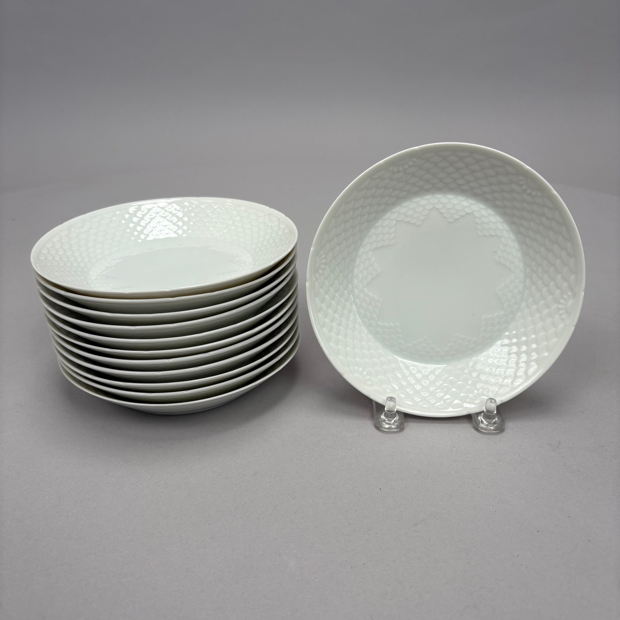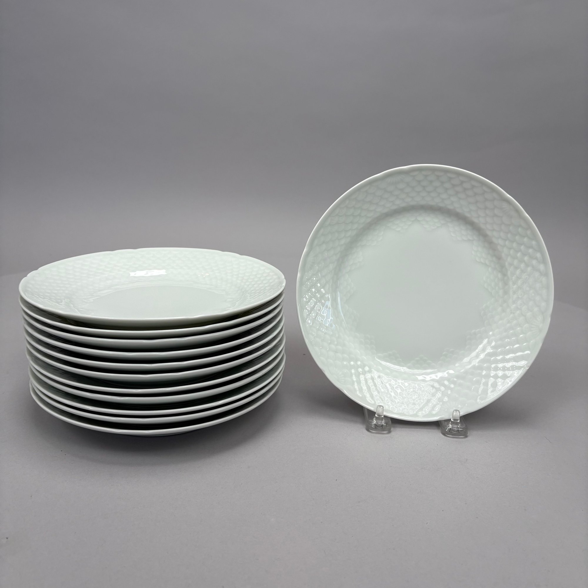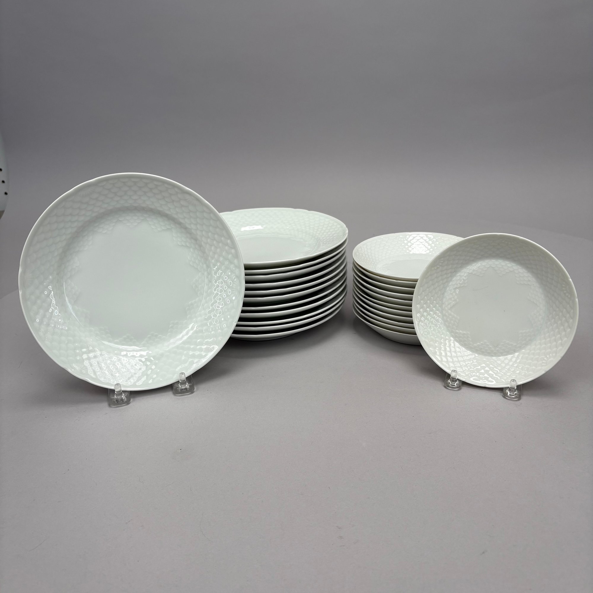 Twenty-Four Danish Porcelain 'BIG53' Pattern Dishes, Bing & Grondahl, Copenhagen, 20th Century. Comprising twelve 5.375- inch fruit/ dessert dishes and twelve 7.625- inch salad plates, printed factory marks, patterns "21A" and "618."