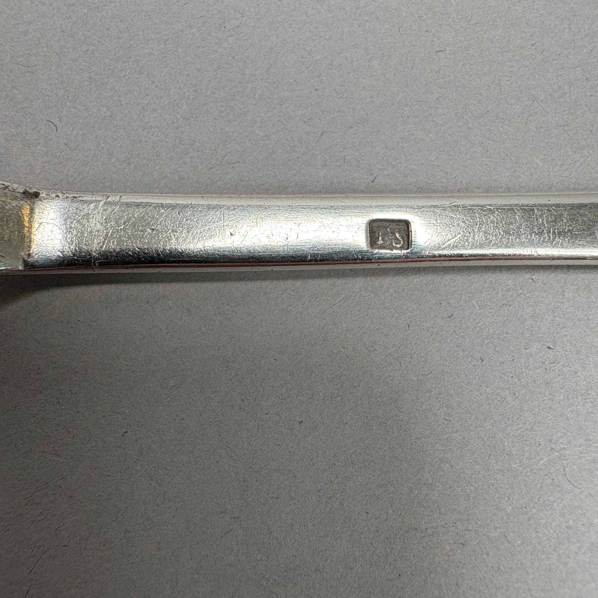 W. Jones coin silver spoons: L: 7.5 in., W: 1.625 in.