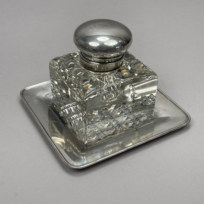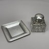 Inkwell and liner: H: 4.5 in., W: 6 in., D: 6 in.