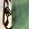 Green bench: H: 20 in., W: 24.75 in., D: 12 in.