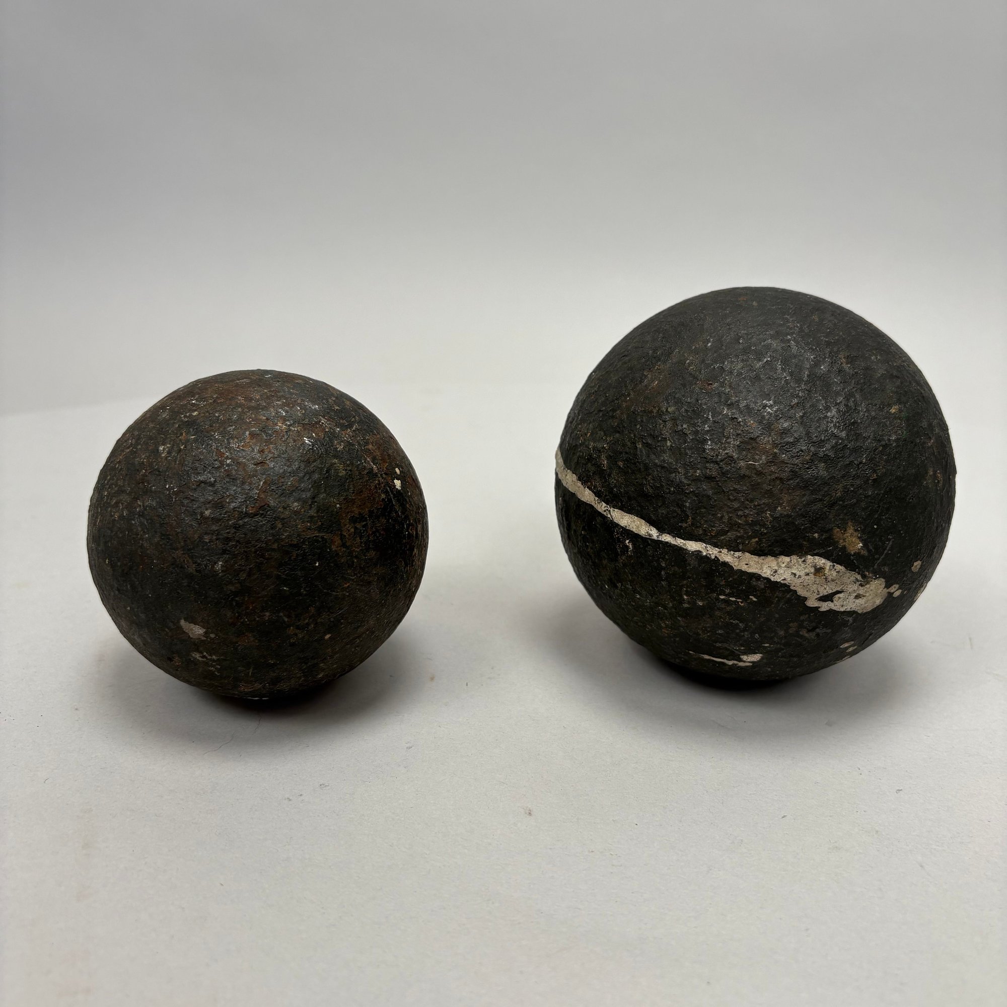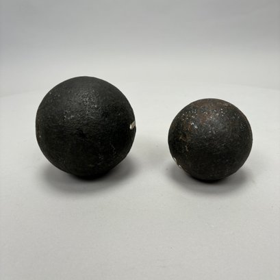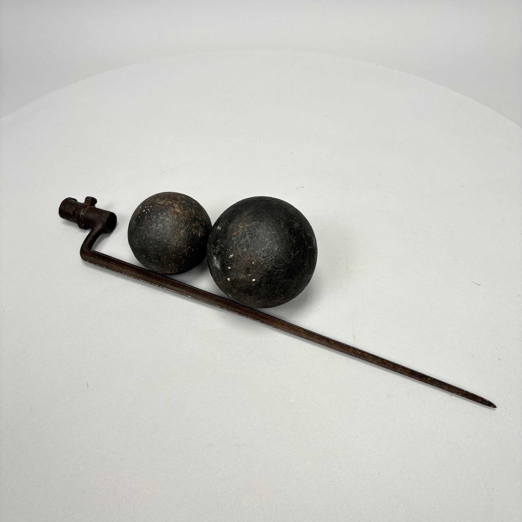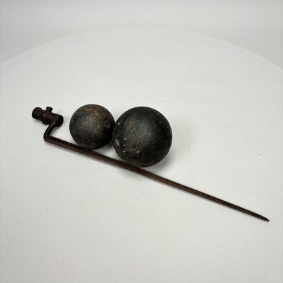 Two Cast-Iron Cannon Balls and a Bayonet.
