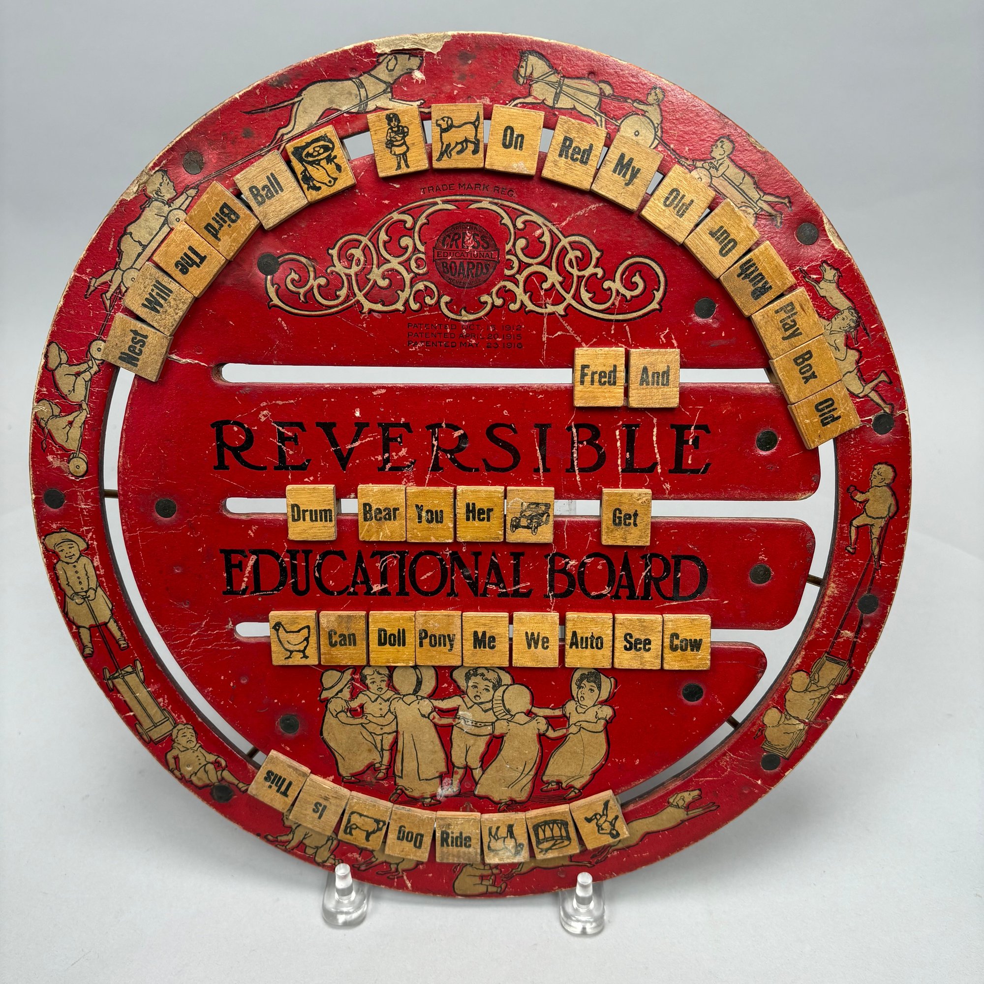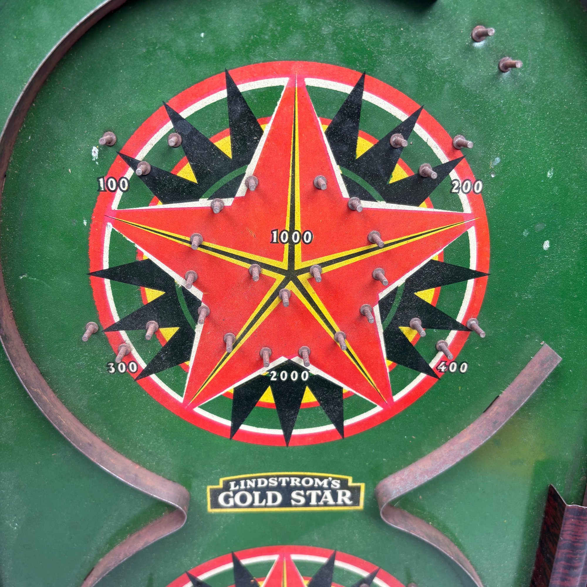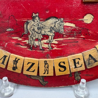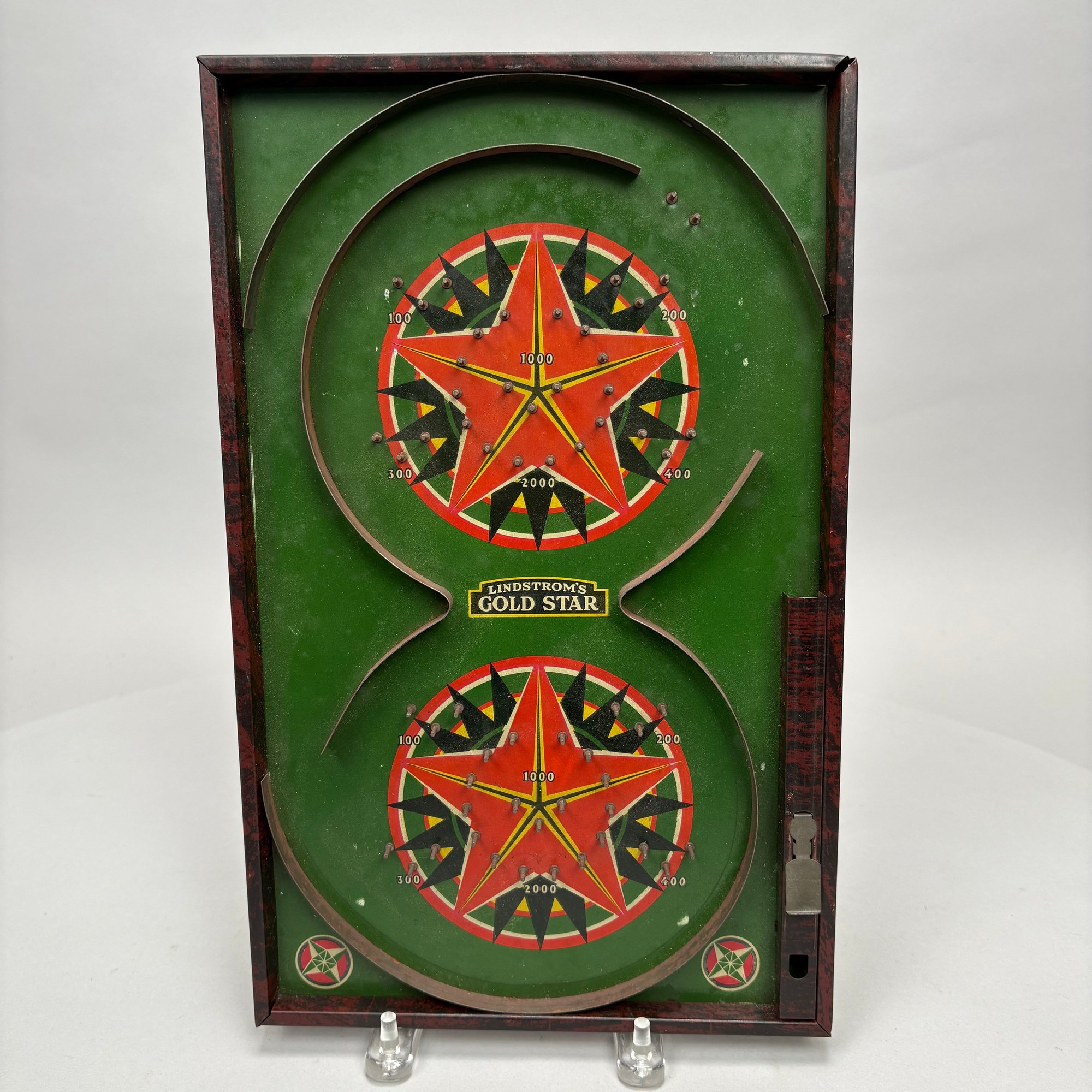 Children's Educational Game, Fox Novelty Co., Berea, Ohio, 1912-1916; and a Bagatelle Pinball Game, Lindstrom Tool and Toy Co., Bridgeport, Connecticut, 1932-1934. The fiberboard and wood educational game with alphabet on one side and words on the other, marked "REVERSIBLE EDUCATIONAL BOARD;" the tin lithographed Bagatelle pinball game marked "LINDSTROM'S GOLD STAR."