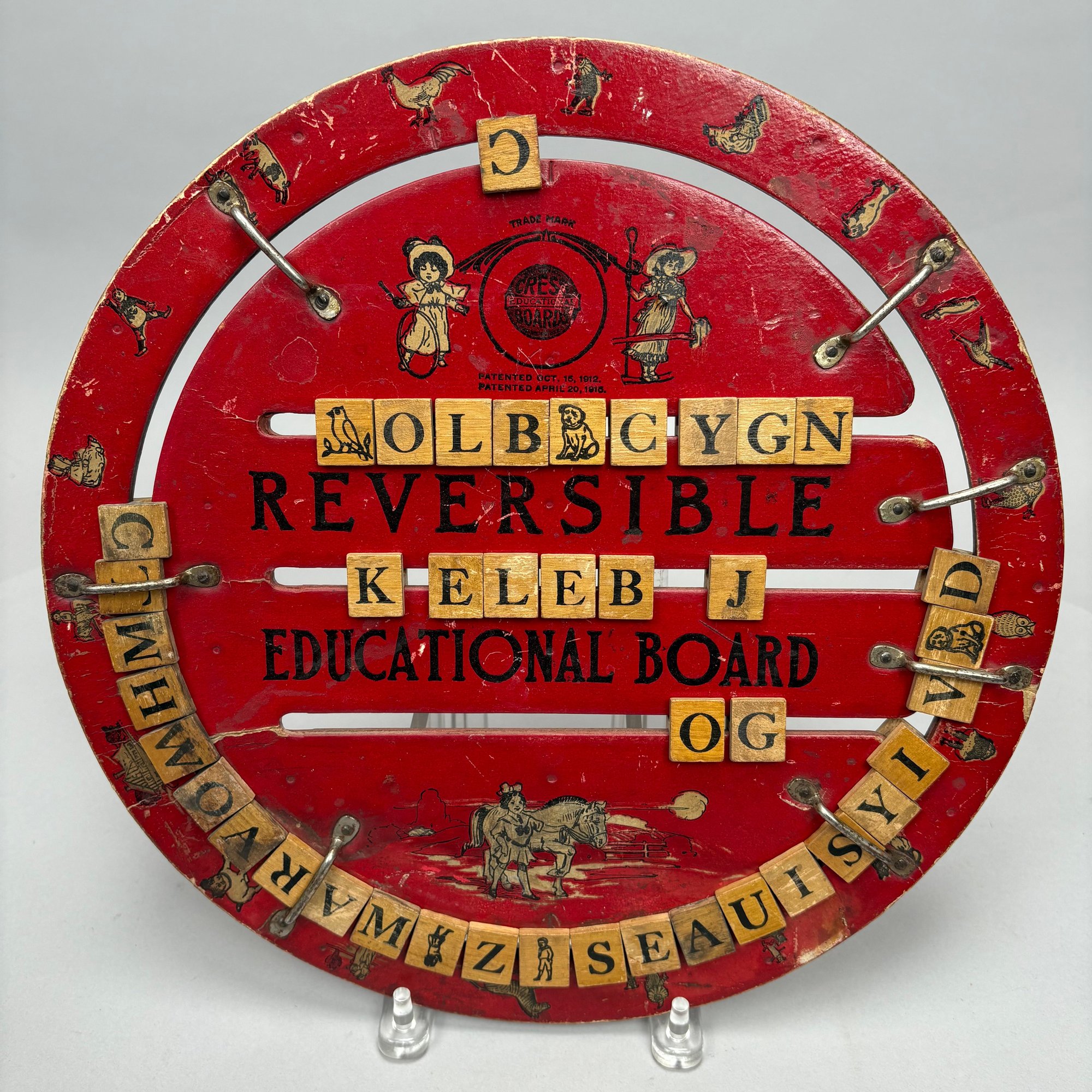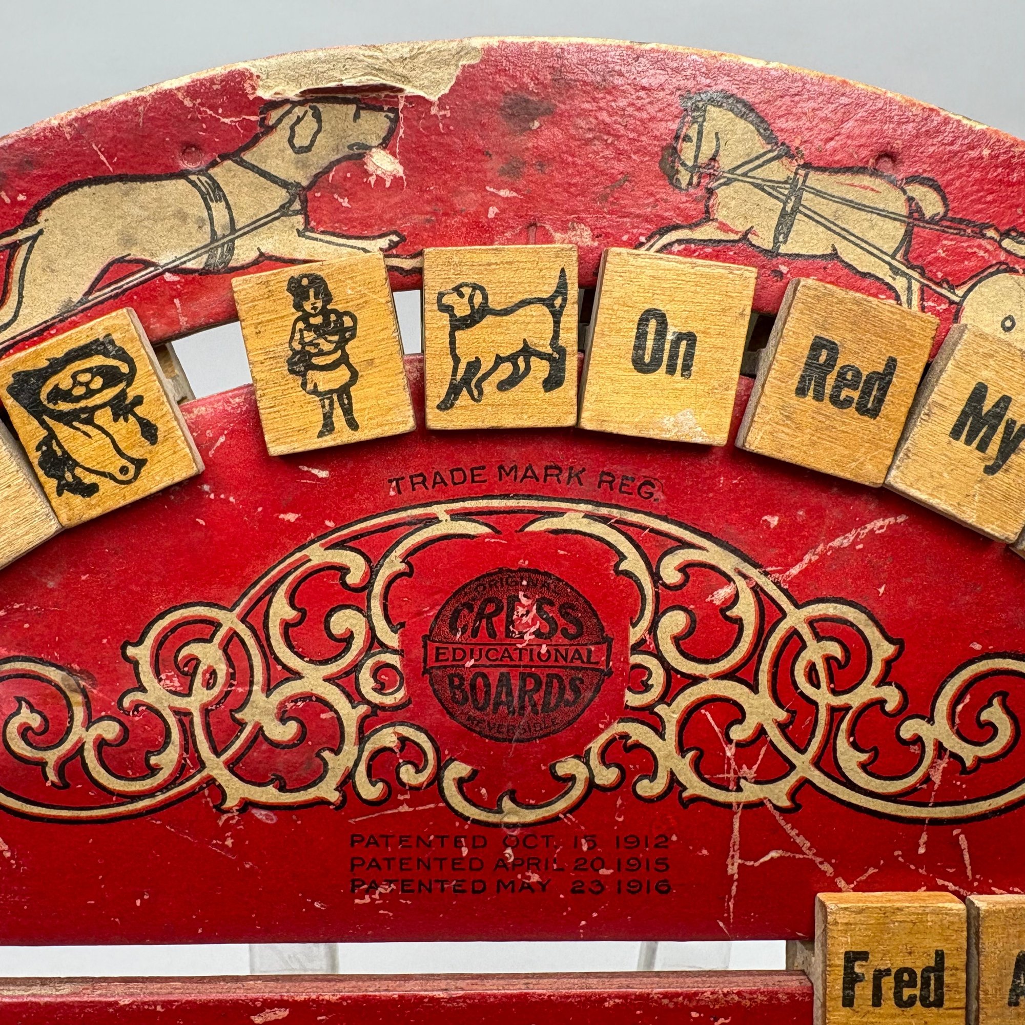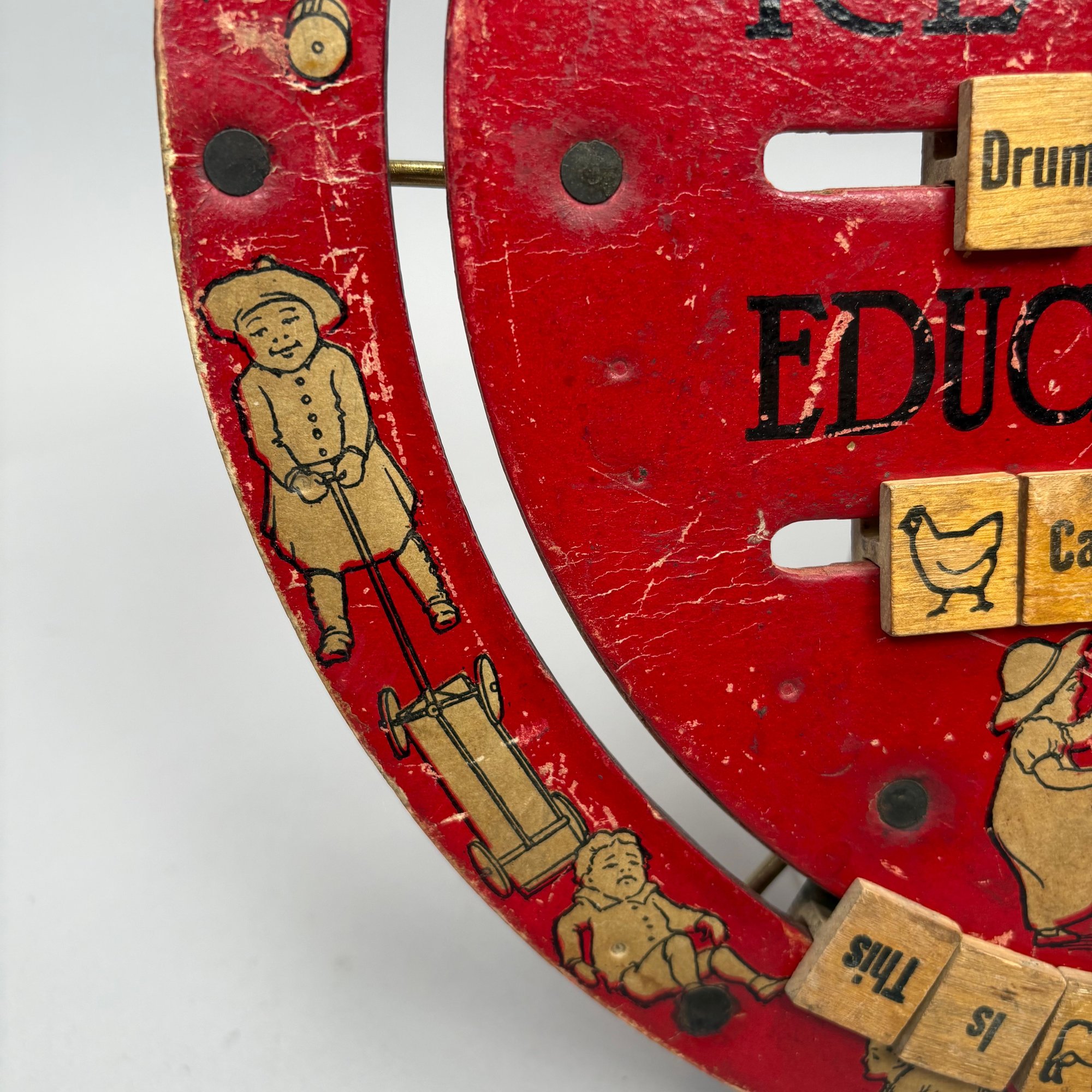 Children's Educational Game, Fox Novelty Co., Berea, Ohio, 1912-1916; and a Bagatelle Pinball Game, Lindstrom Tool and Toy Co., Bridgeport, Connecticut, 1932-1934. The fiberboard and wood educational game with alphabet on one side and words on the other, marked "REVERSIBLE EDUCATIONAL BOARD;" the tin lithographed Bagatelle pinball game marked "LINDSTROM'S GOLD STAR."
