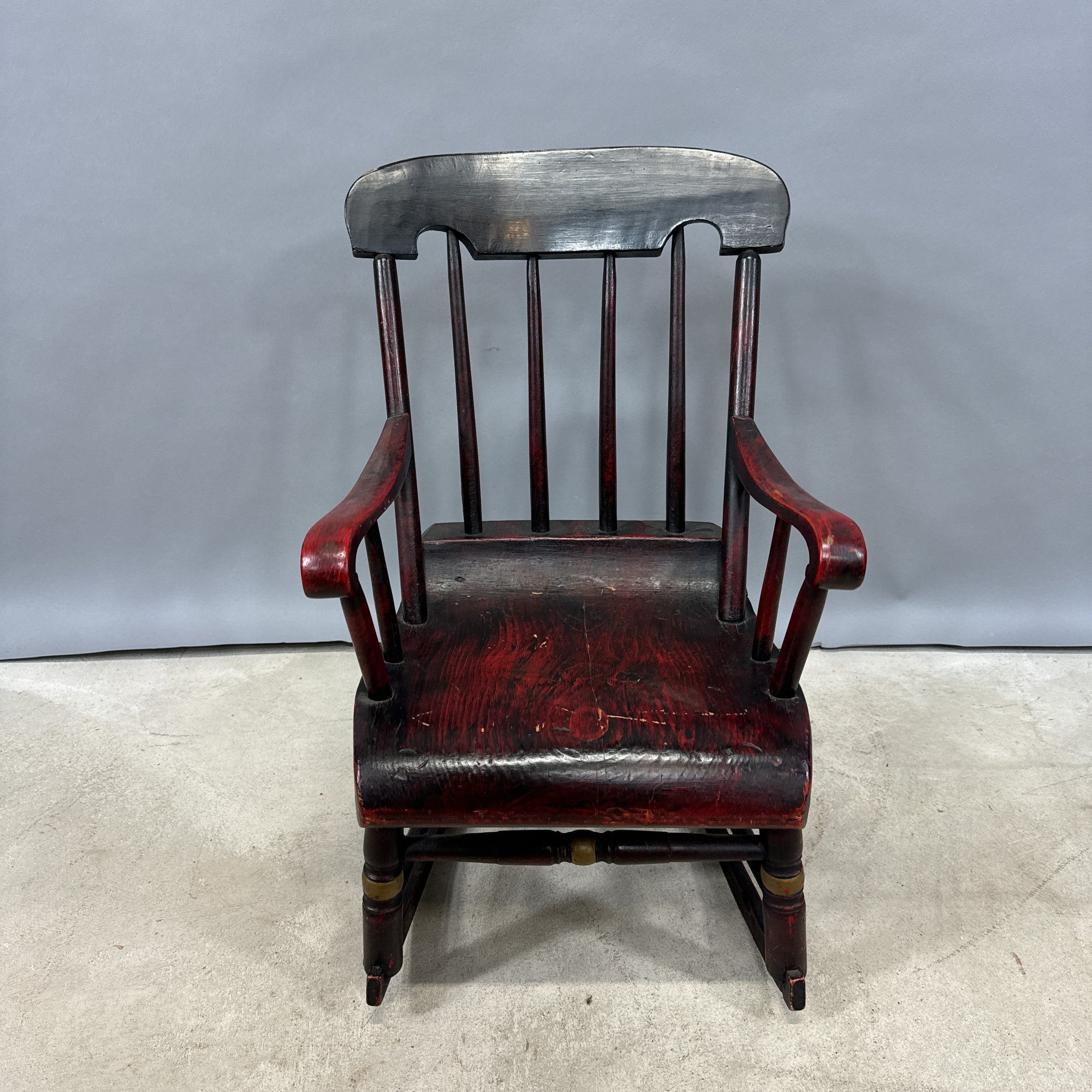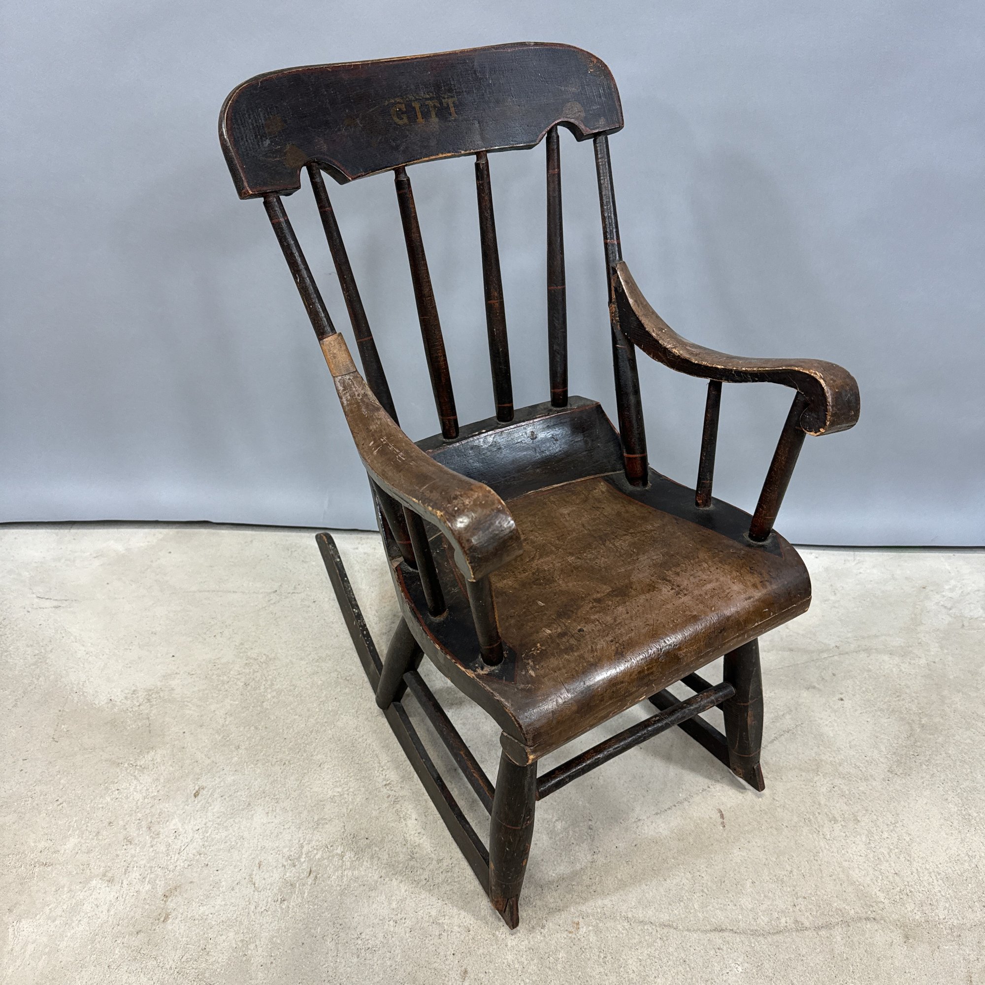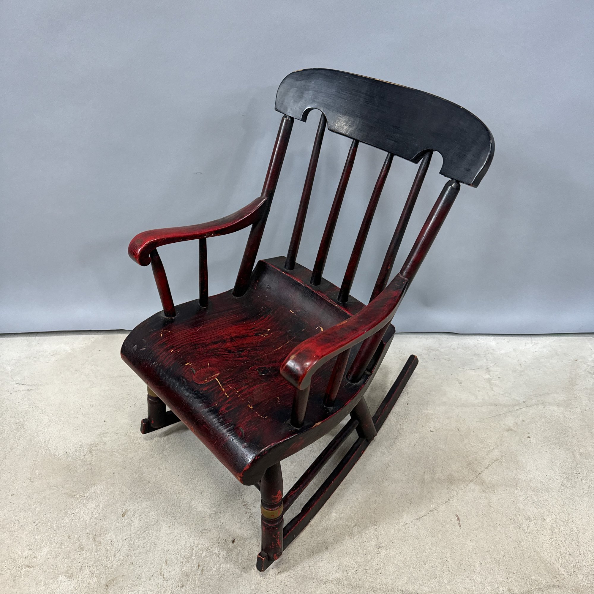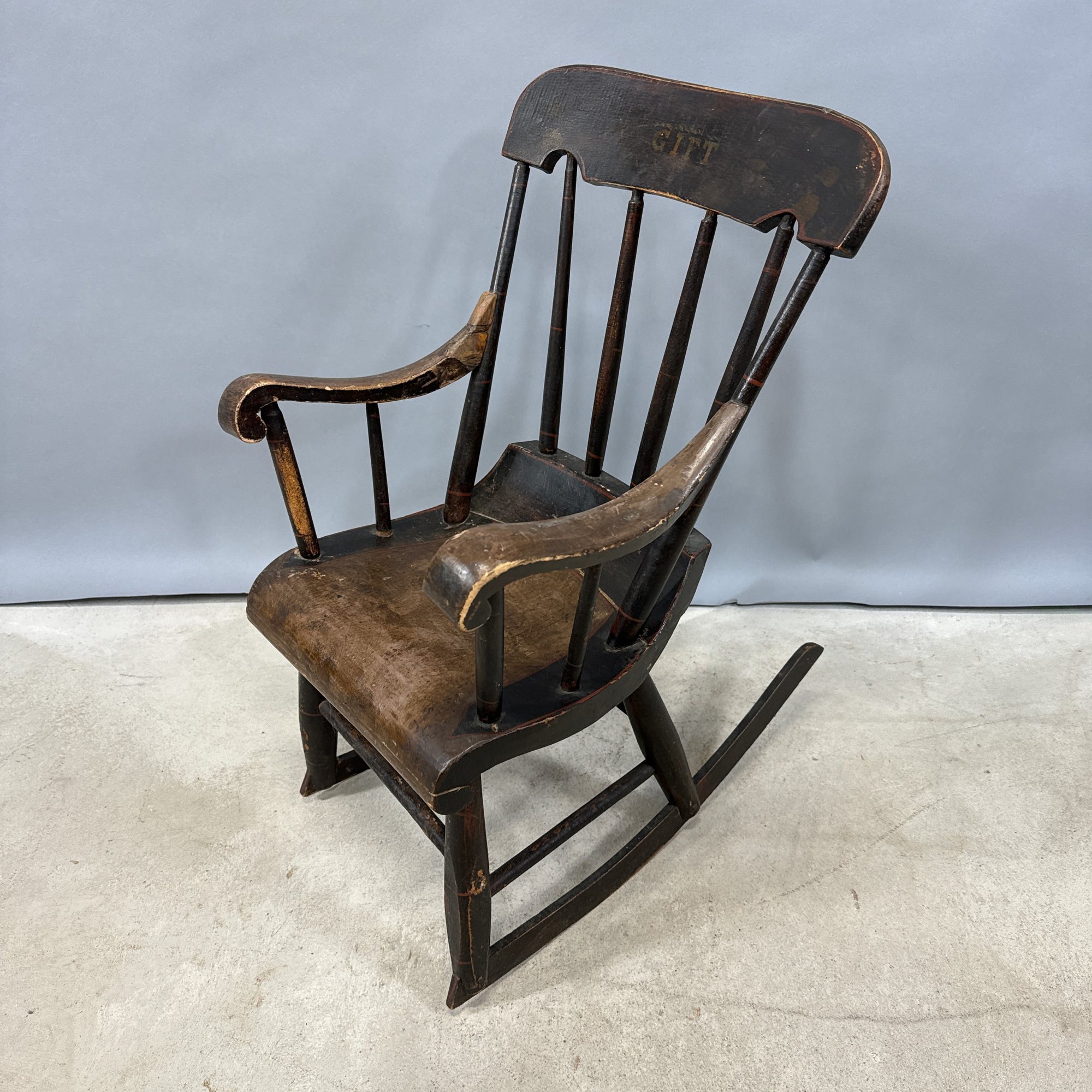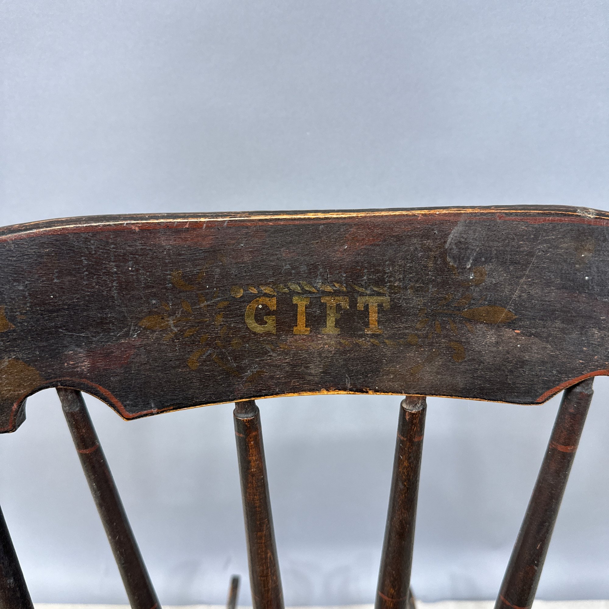 Two Children's Hitchcock Style Rocking Chairs and a Ladderback Chair.