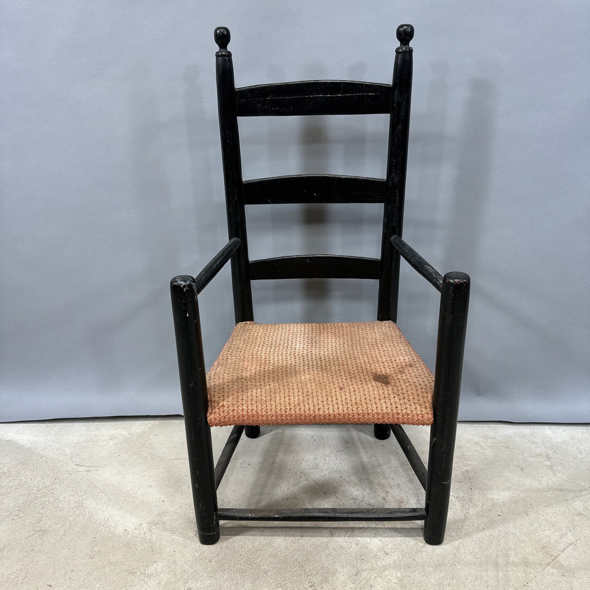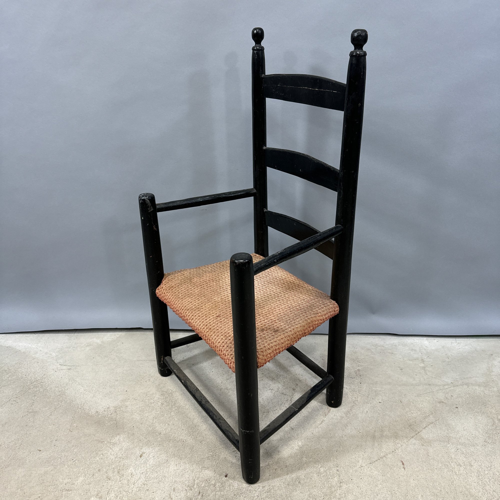 Ladderback chair: H: 29.75 in., W: 15.5 in., D: 11.75 in.