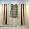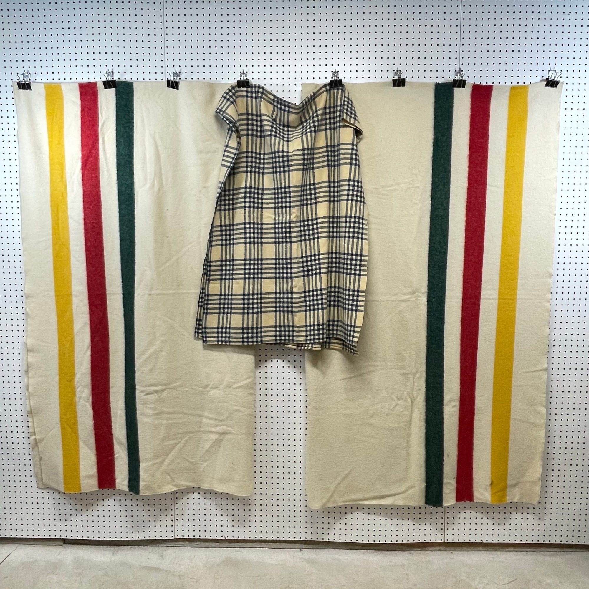 Two Hudson Bay (or a Related Company) Wool Blankets and a Small Blue and White Wool Blanket.