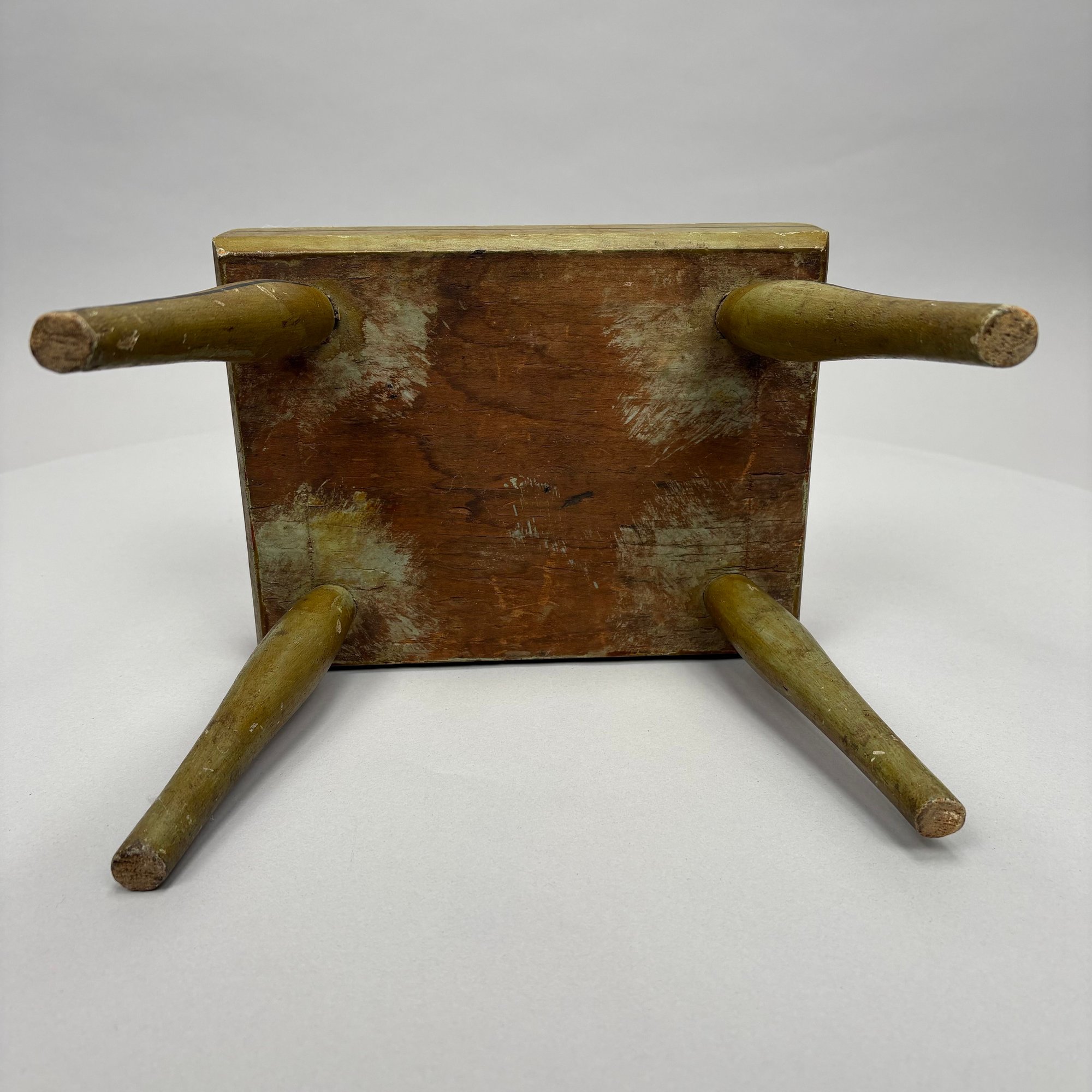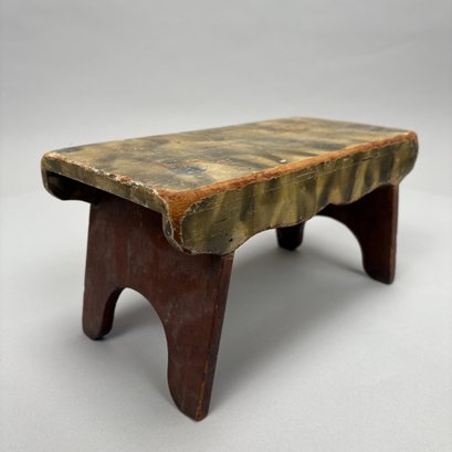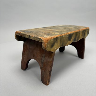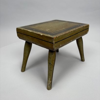 Painted foot stool: H: 7.75 in., W: 11.25 in. (Feet), D: 7.625 in.