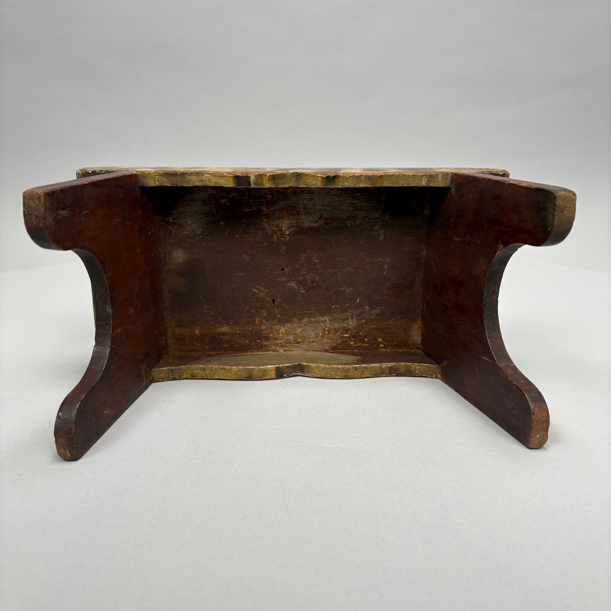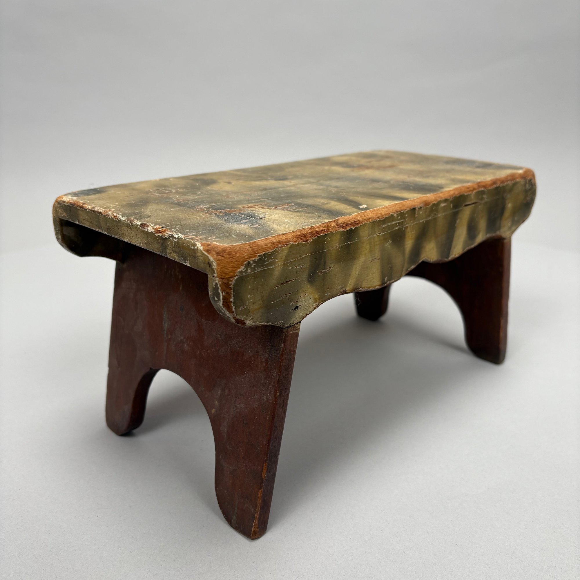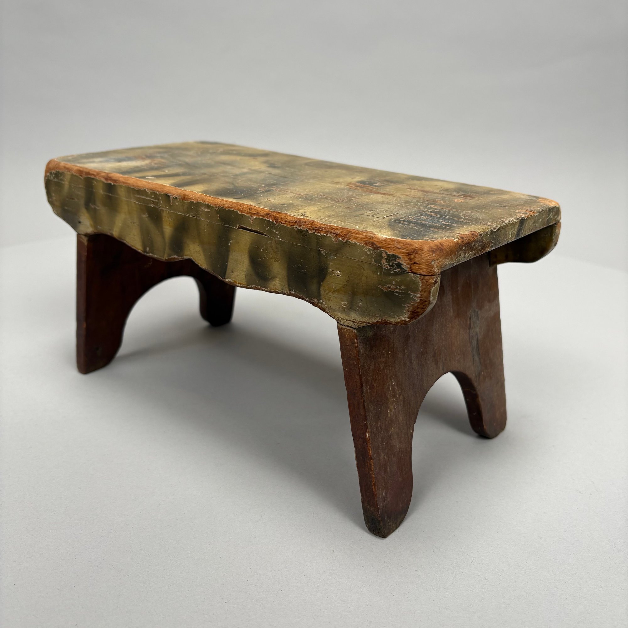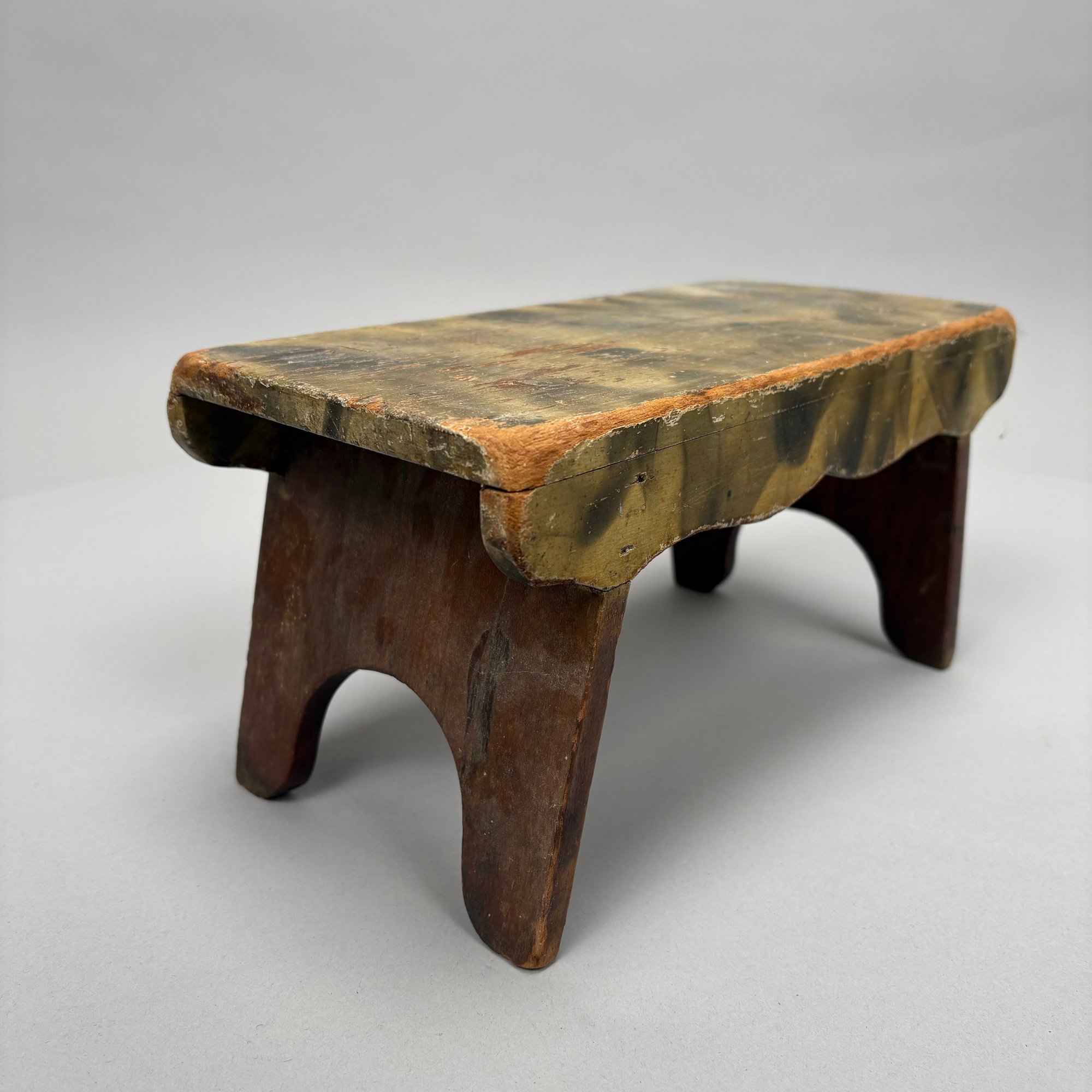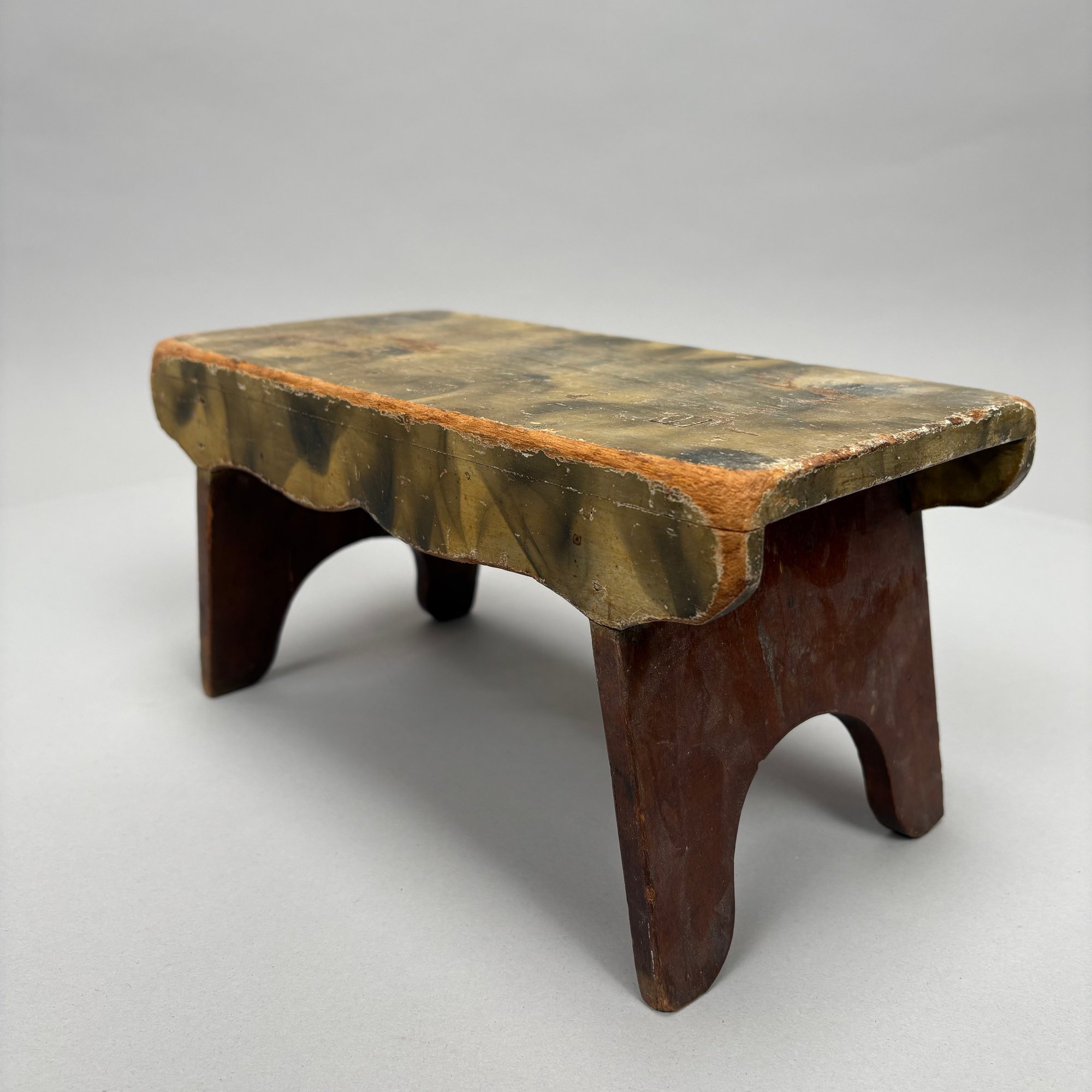 "Smoke-decorated" foot stool: H: 5.5 in., W: 11 in., D: 5.5 in.