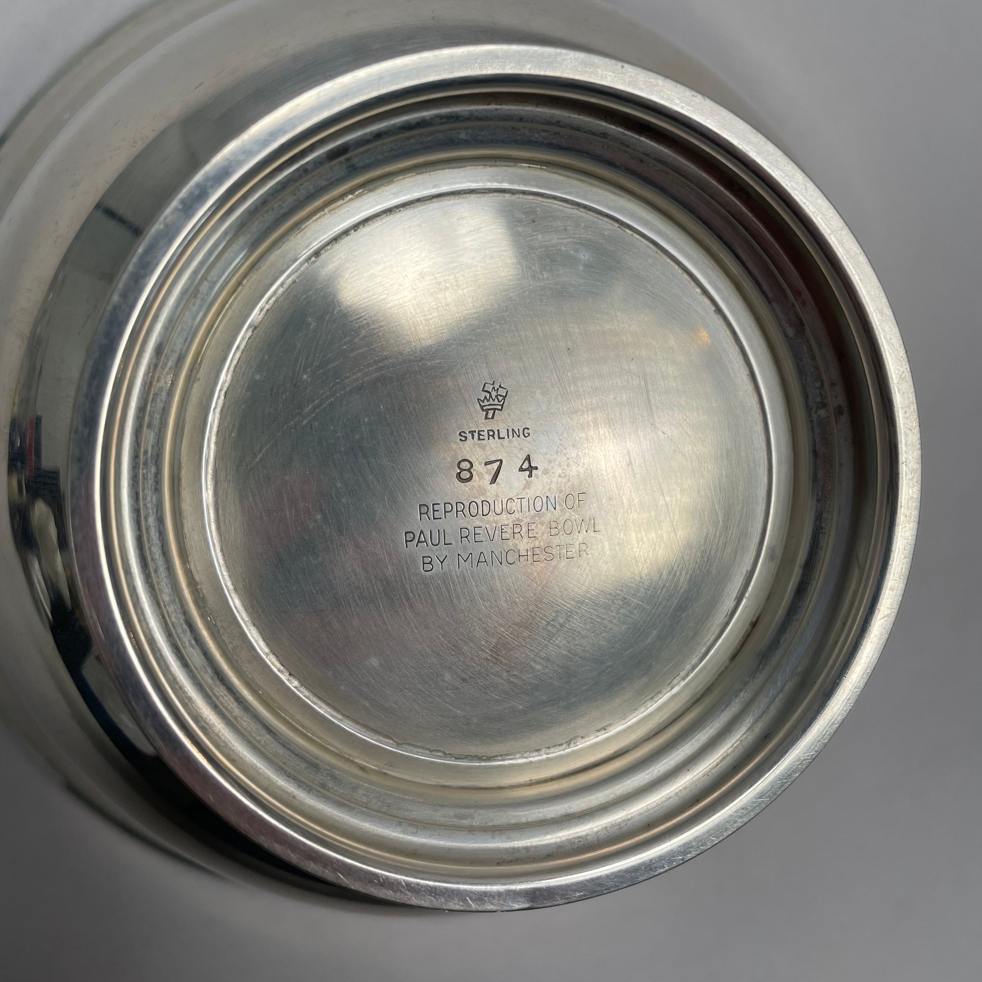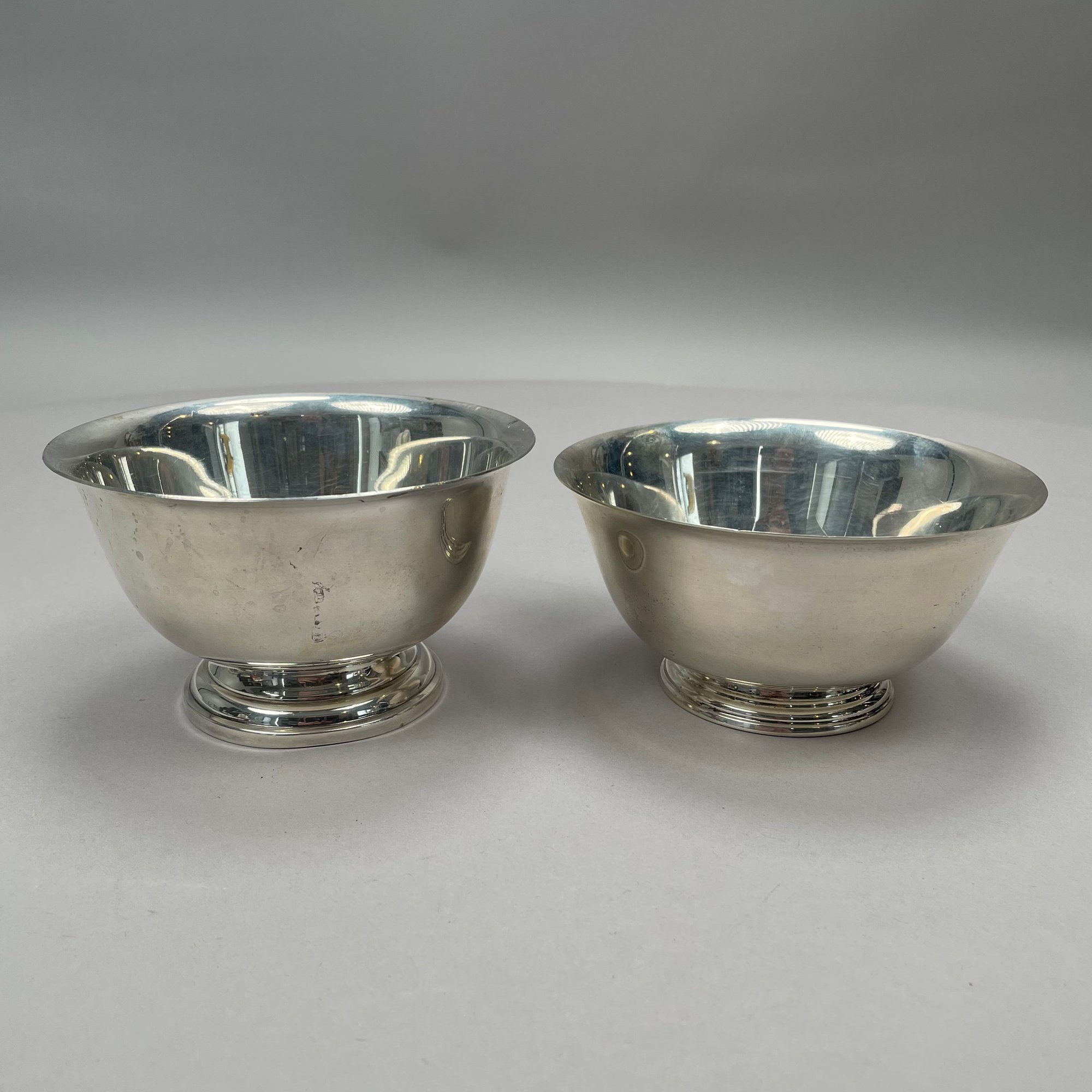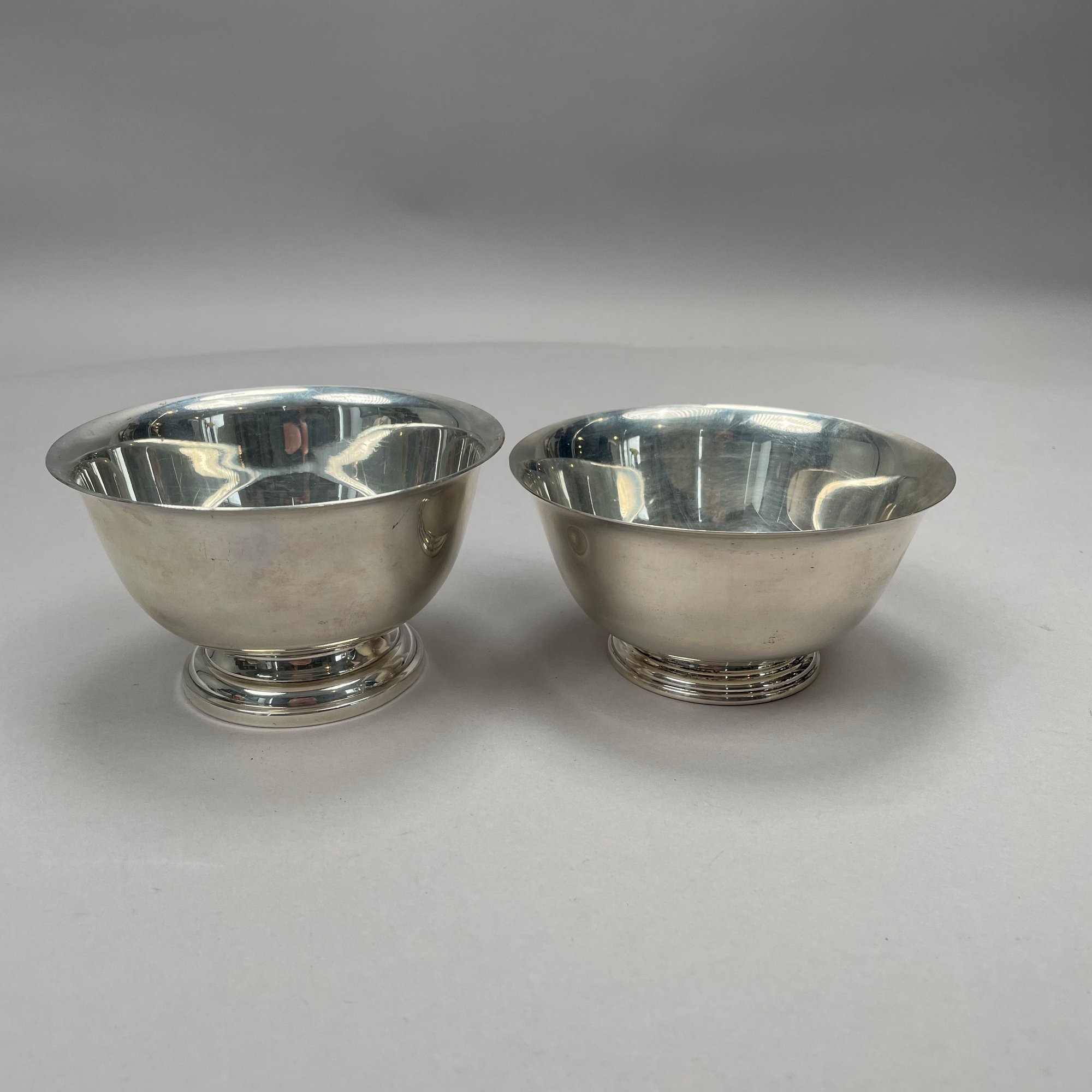 Two Paul Revere Reproduction Sterling Silver Bowls. The first Manchester Silver Co., Providence, Rhode Island, pattern "874;" the second J.E. Caldwell & Co., Philadelphia, pattern "787," not monogrammed, each with factory marks.