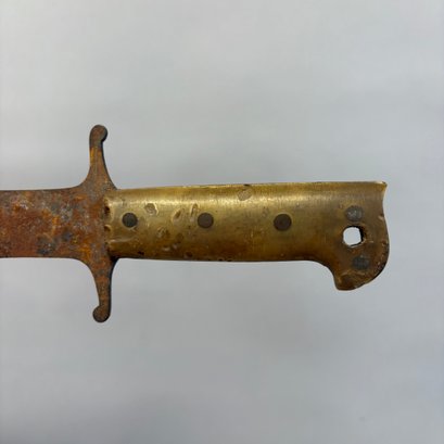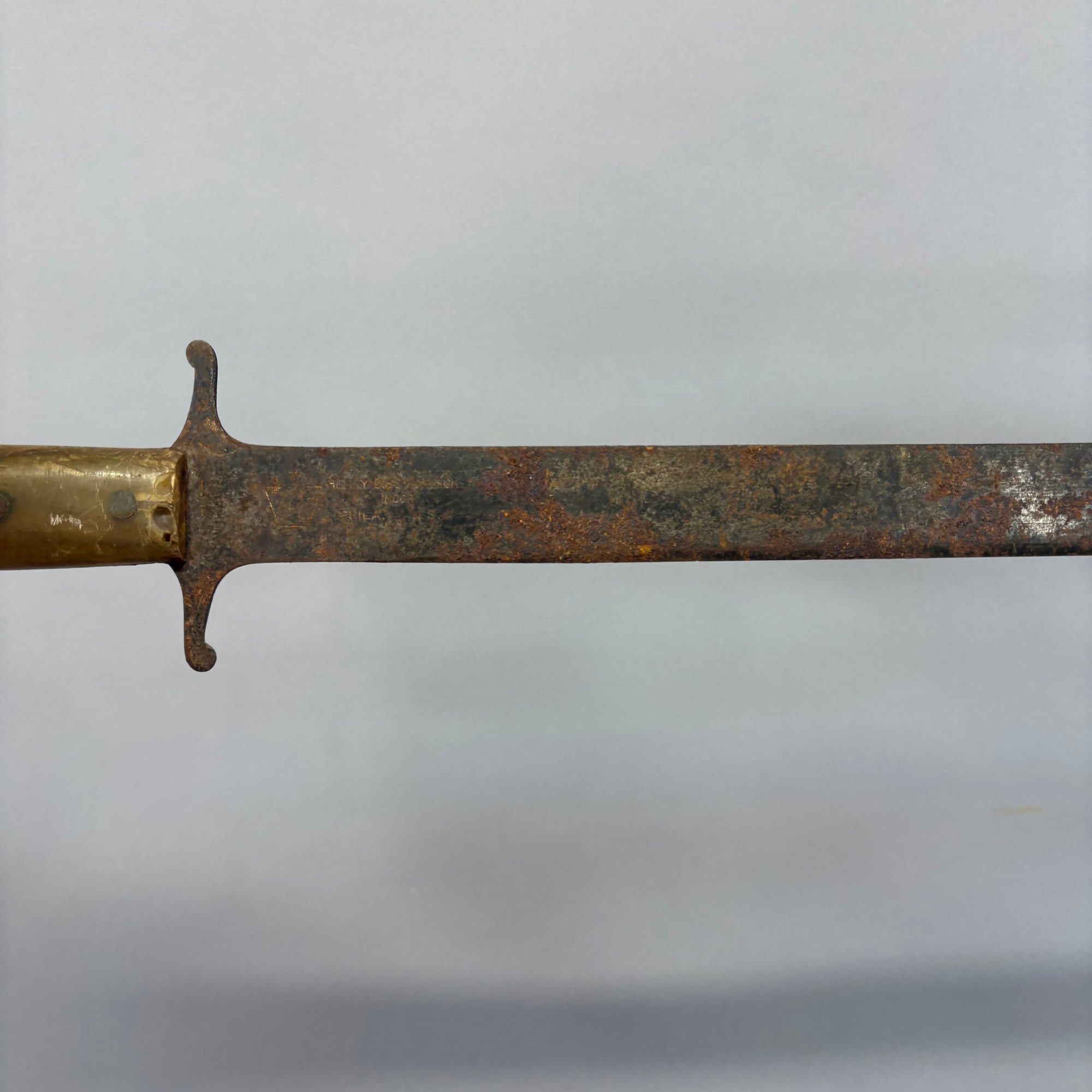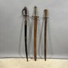 Two Philippines Brass, Steel and Wood Swords and a Spanish Diplomatic Sword. The brass hilt of the Spanish sword cast with the coats-of-arms of Castile and Leon, fitted in a leather scabbard tooled on one side with scrolls.