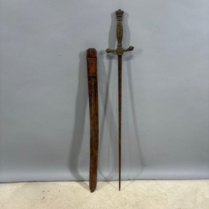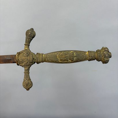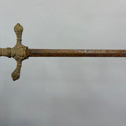 Spanish diplomatic sword: L: 36.5 in. (Including scabbard), W: 4.625 in., D: 1.375 in.