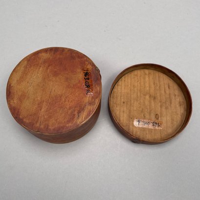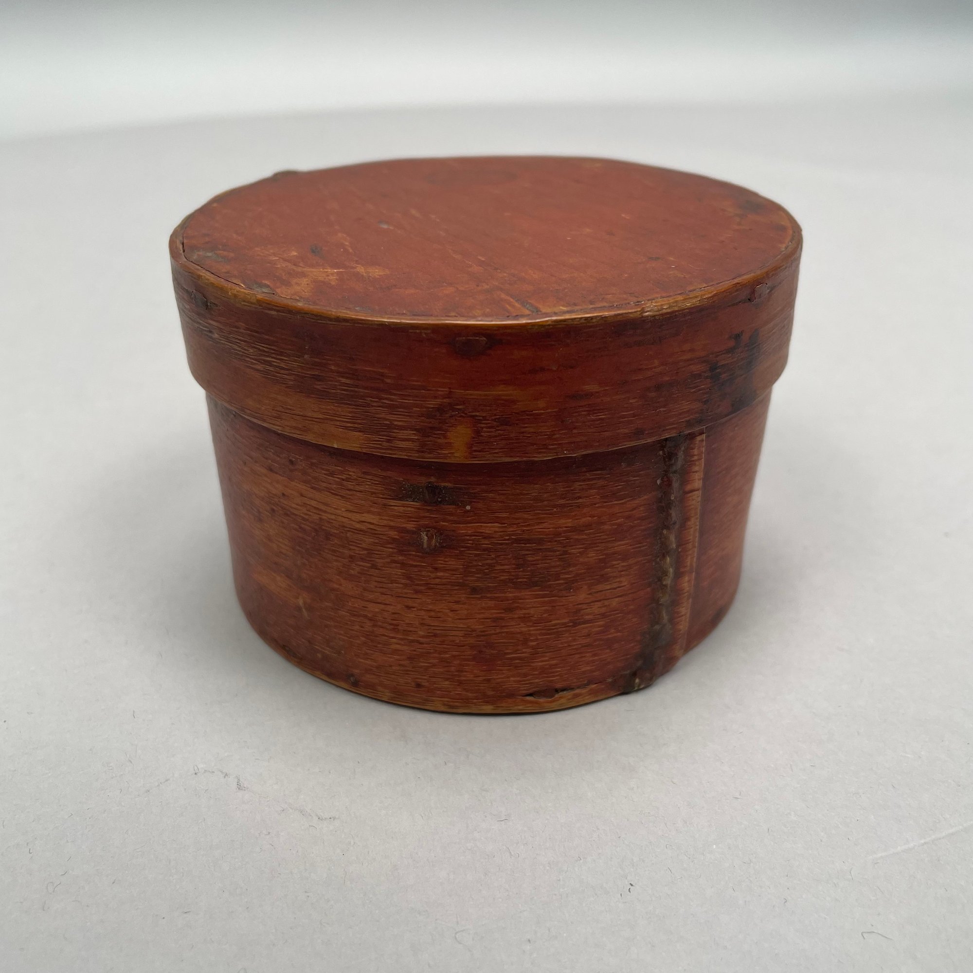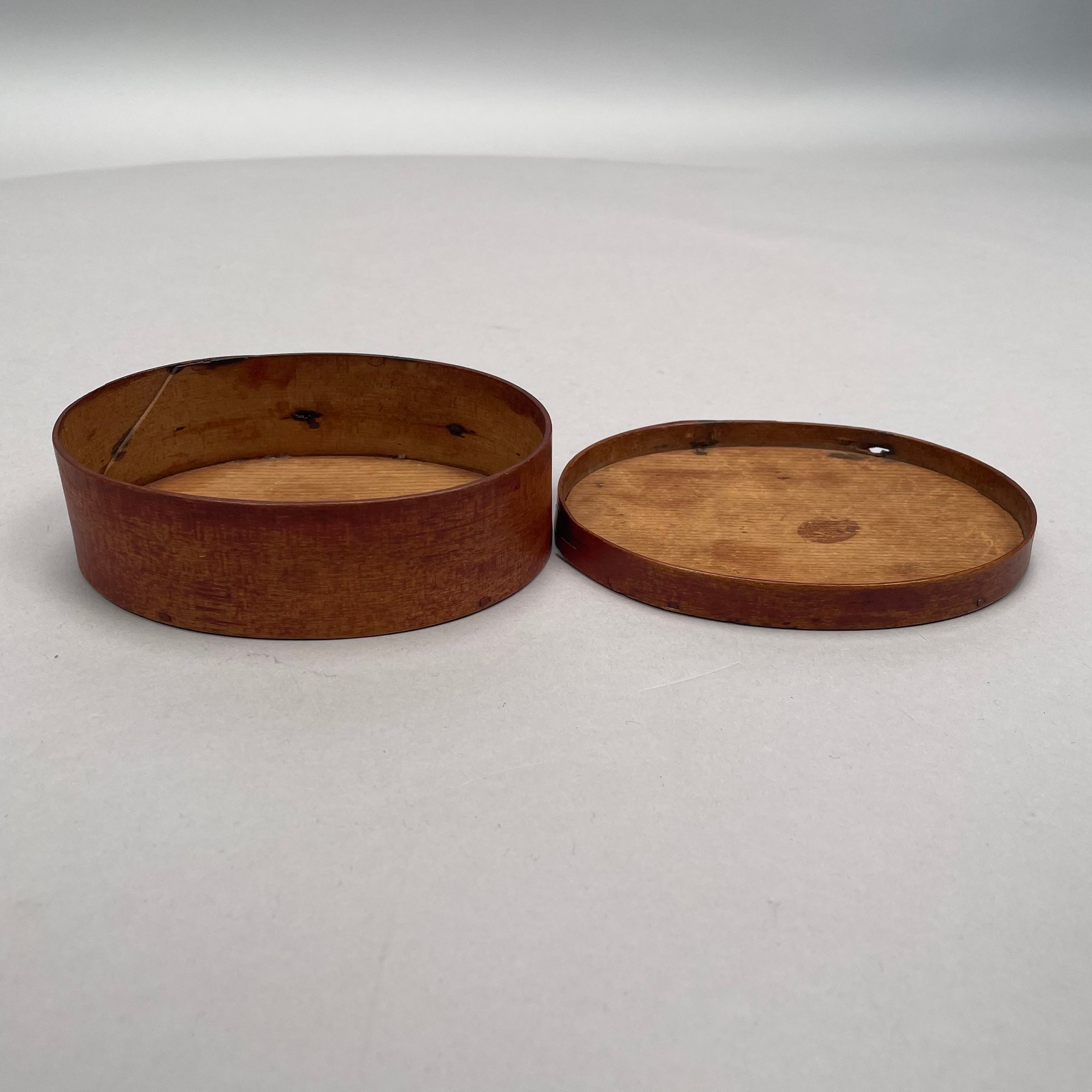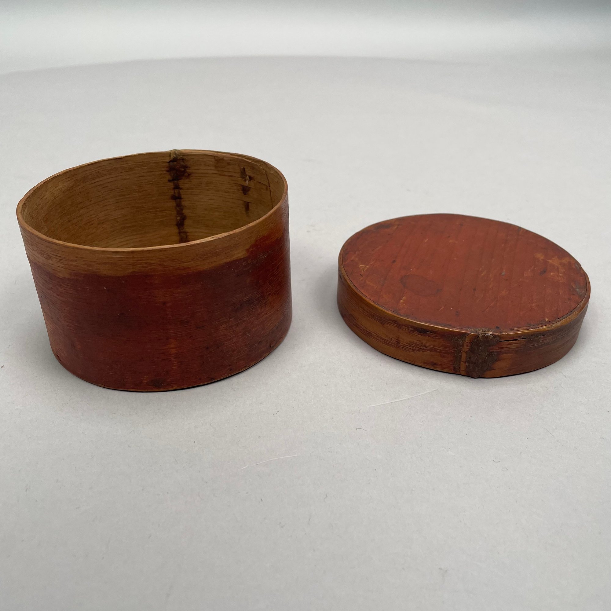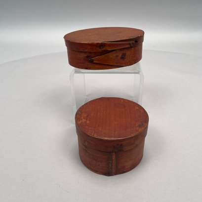 Two Pine Oval and Circular Pantry Boxes in Red Wash, Mid-nineteenth Century.