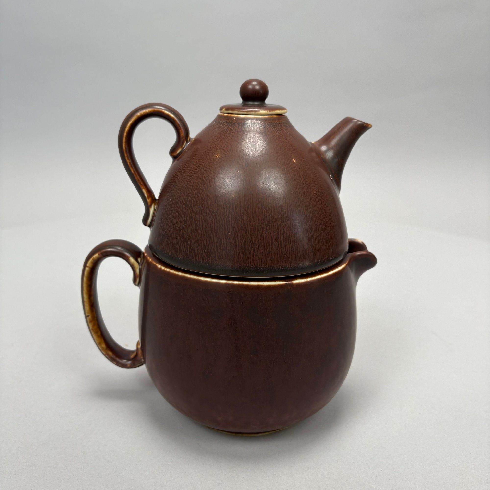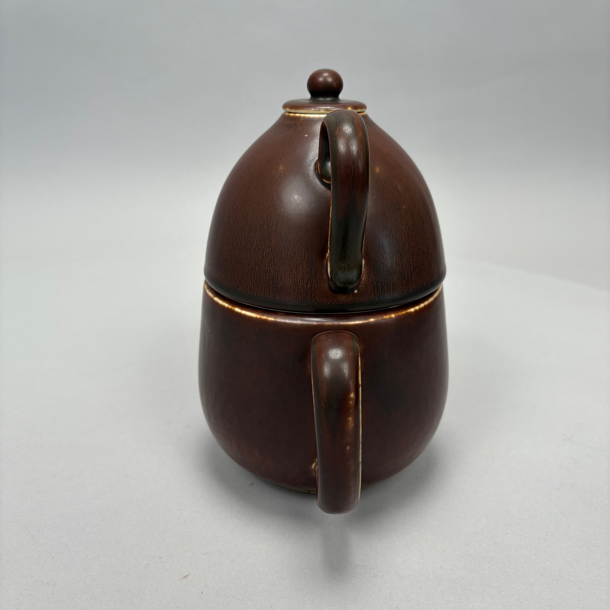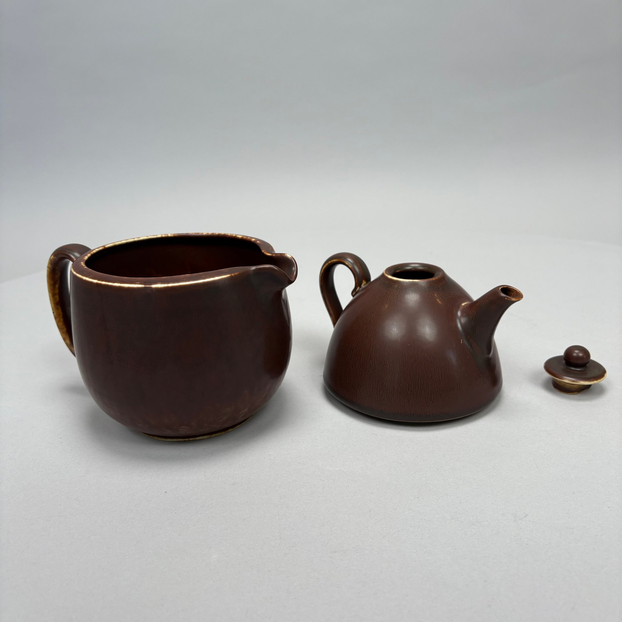 Gunnar Nylund (1904-1997, Sweden) for Rorstrand Double Teapot Service, Mid-Century Modern. Comprising a double teapot and cover, sugar bowl and cream pitcher, the double teapot each incised with the letter "R" and three crowns above "SWEDEN/ GN/ UB," the sugar bowl marked the same but with the initials "US" and the cream pitcher with the initials "ON/ UR."
