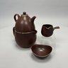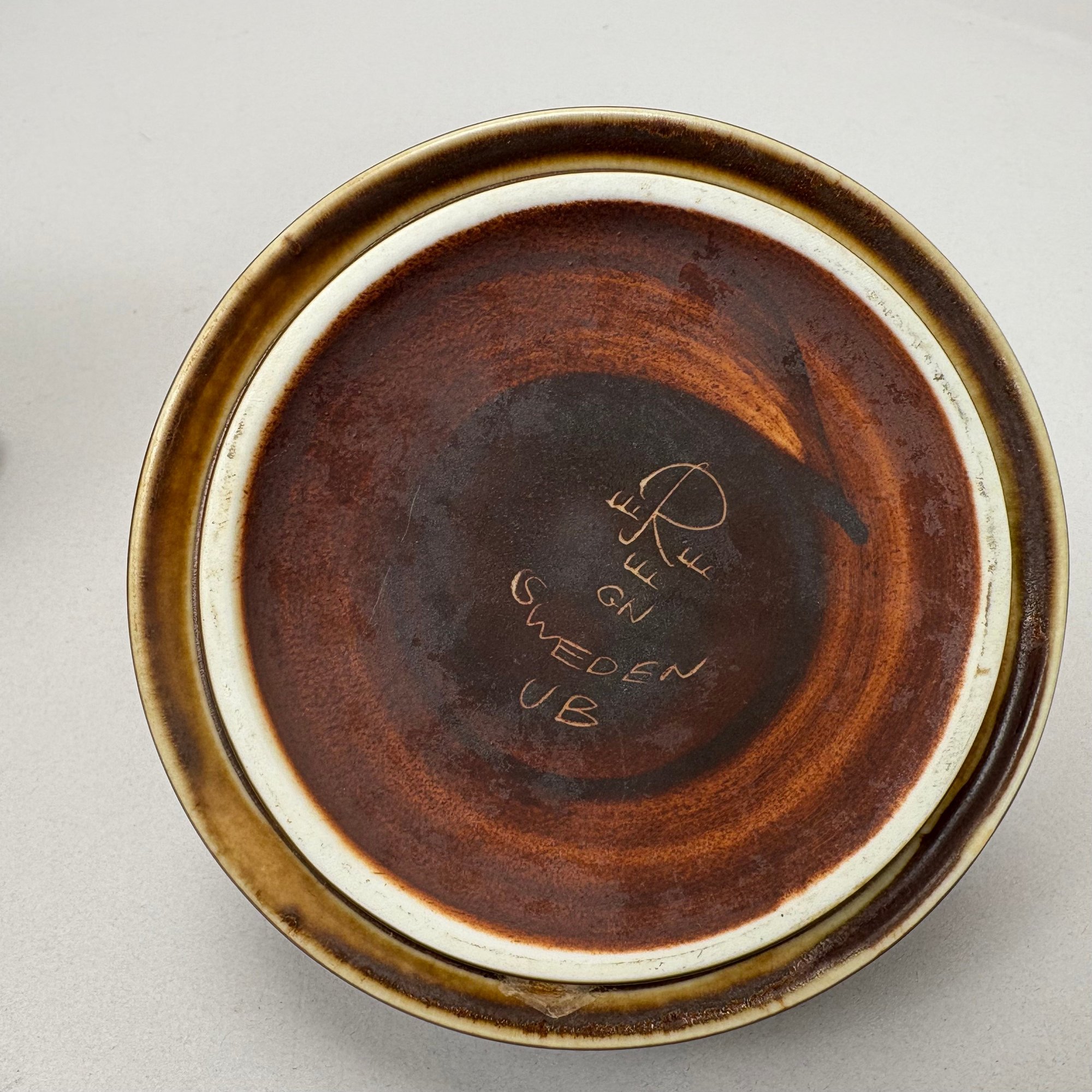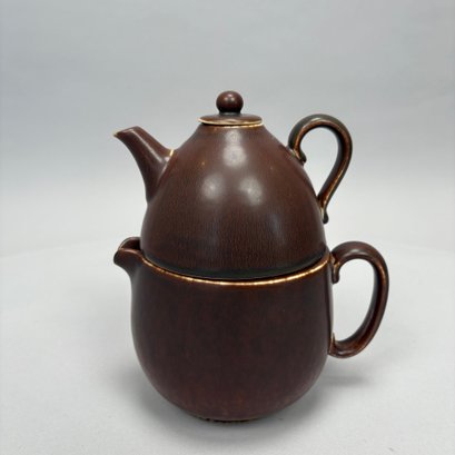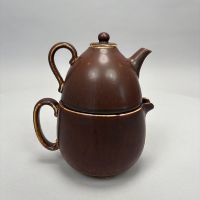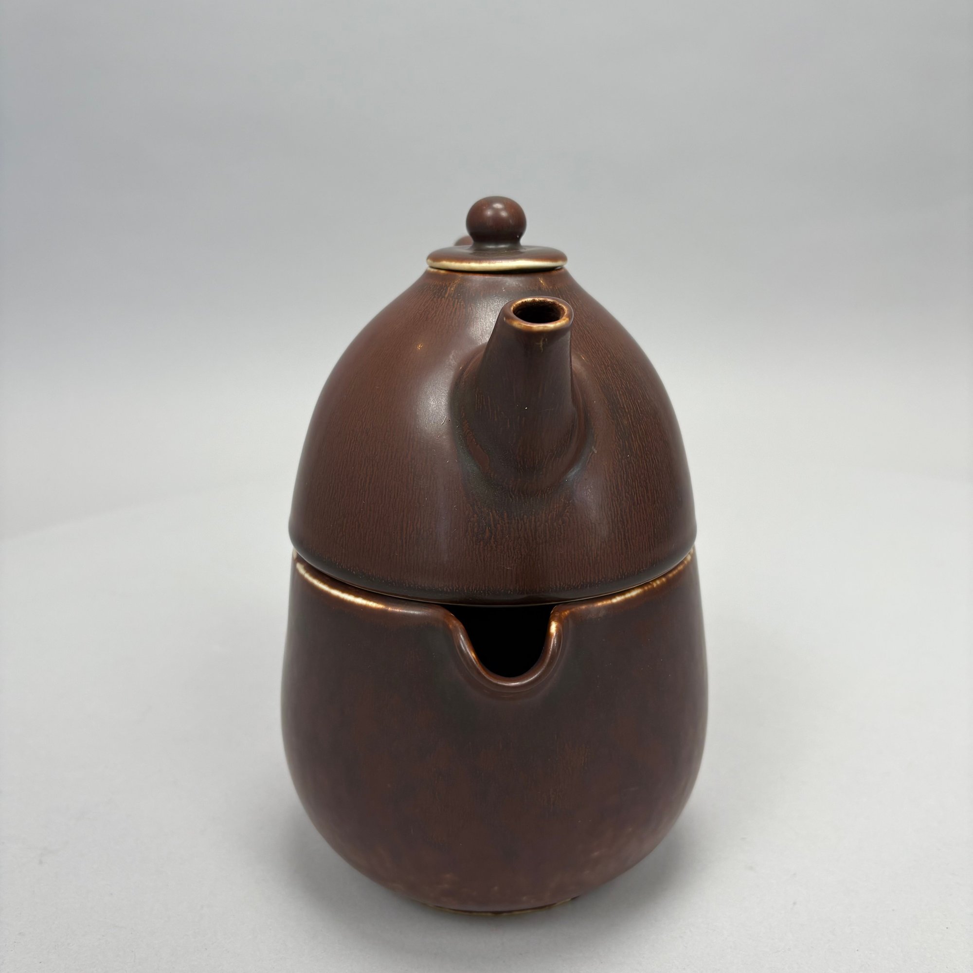 Gunnar Nylund (1904-1997, Sweden) for Rorstrand Double Teapot Service, Mid-Century Modern. Comprising a double teapot and cover, sugar bowl and cream pitcher, the double teapot each incised with the letter "R" and three crowns above "SWEDEN/ GN/ UB," the sugar bowl marked the same but with the initials "US" and the cream pitcher with the initials "ON/ UR."