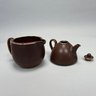 Teapot: H: 8 in., W: 6.875 in., D: 5.375 in.