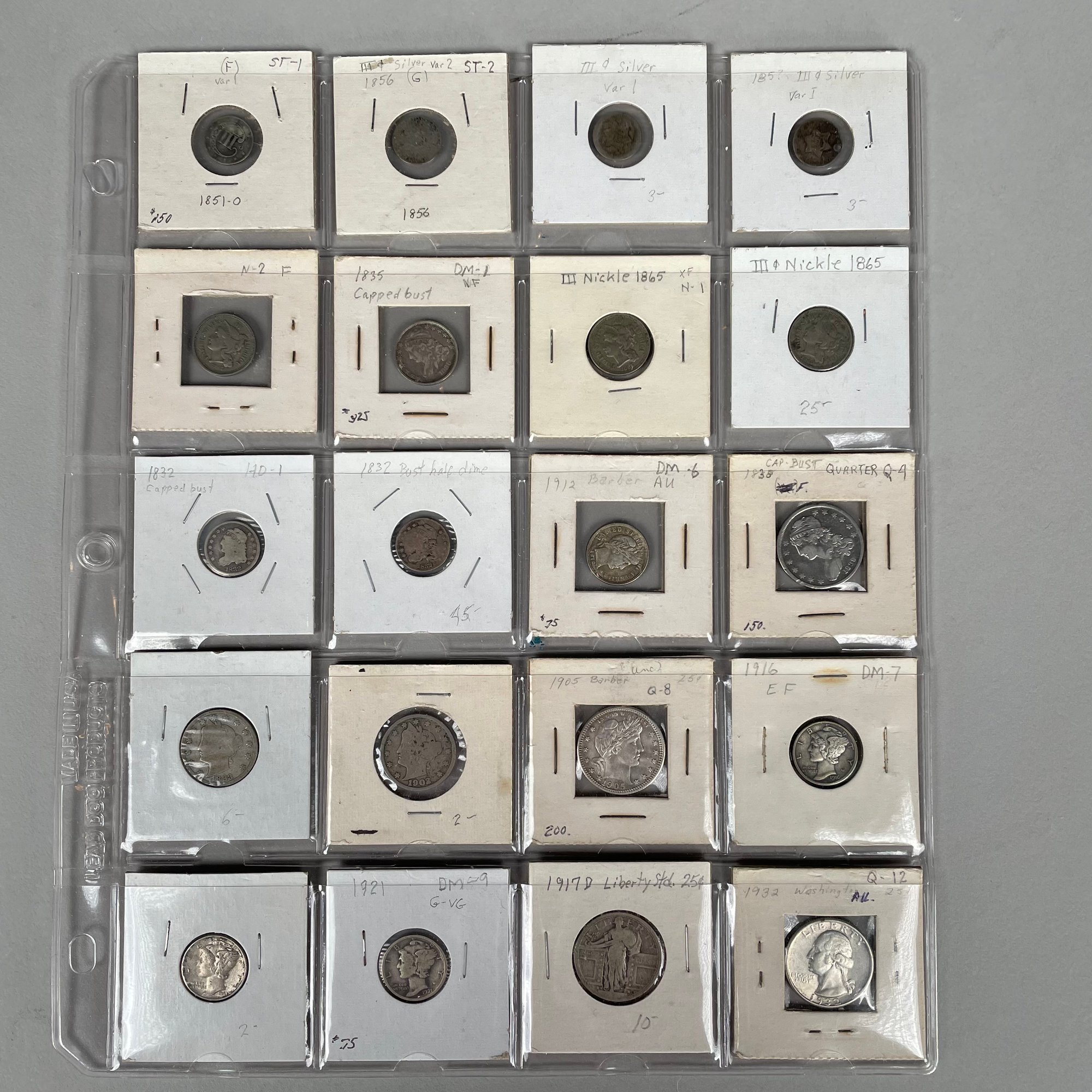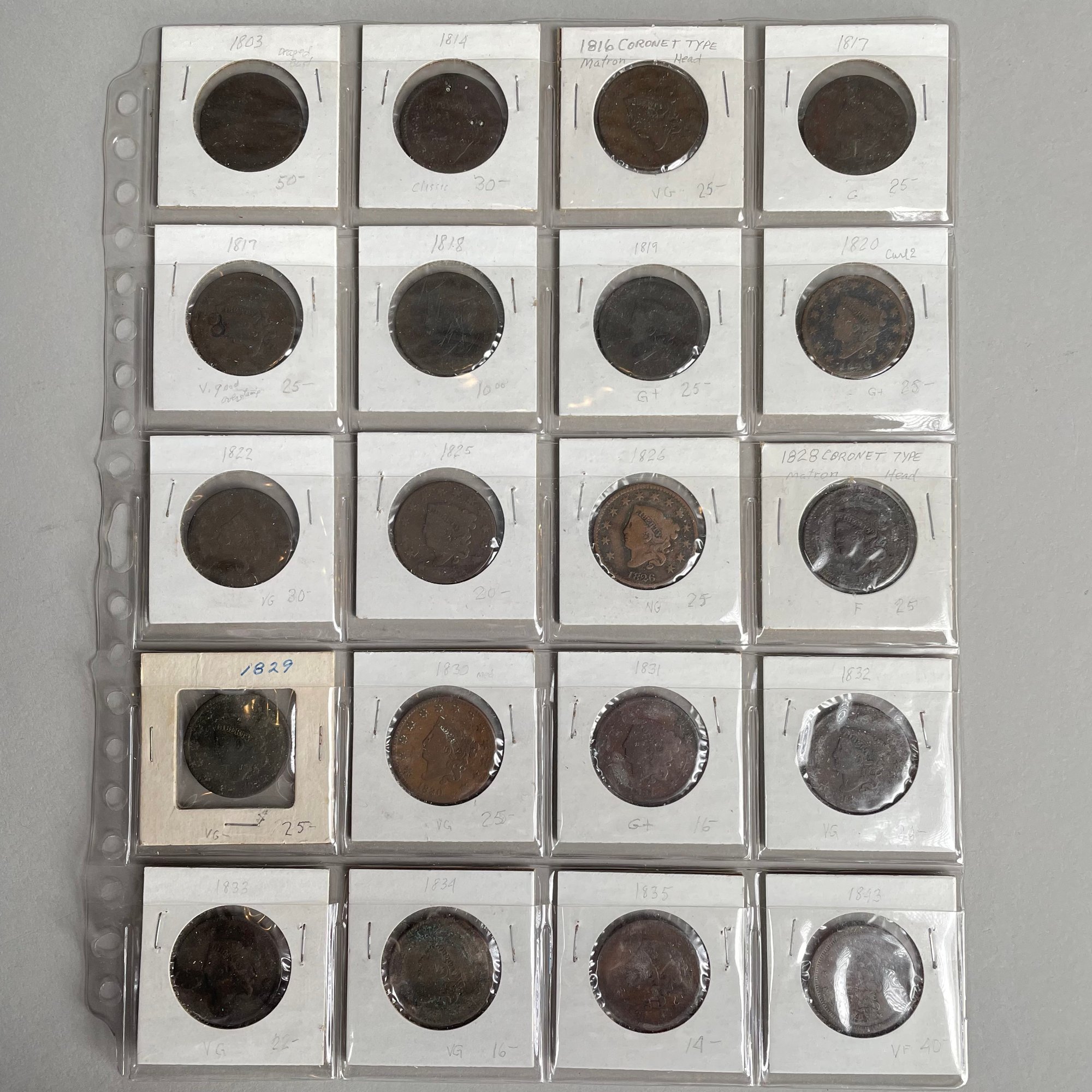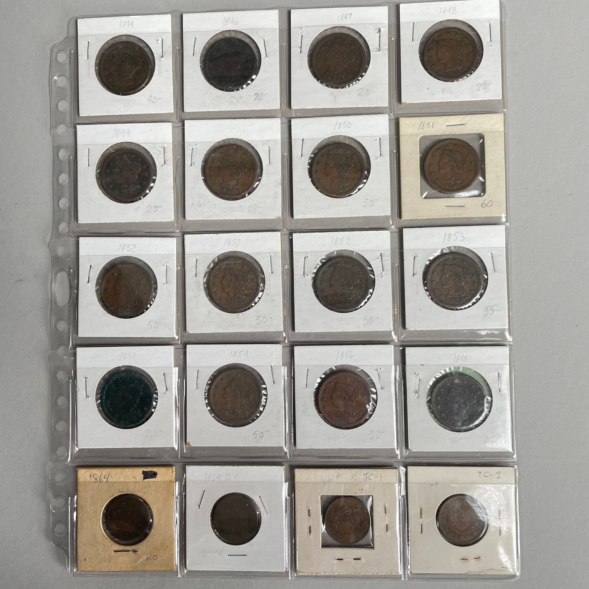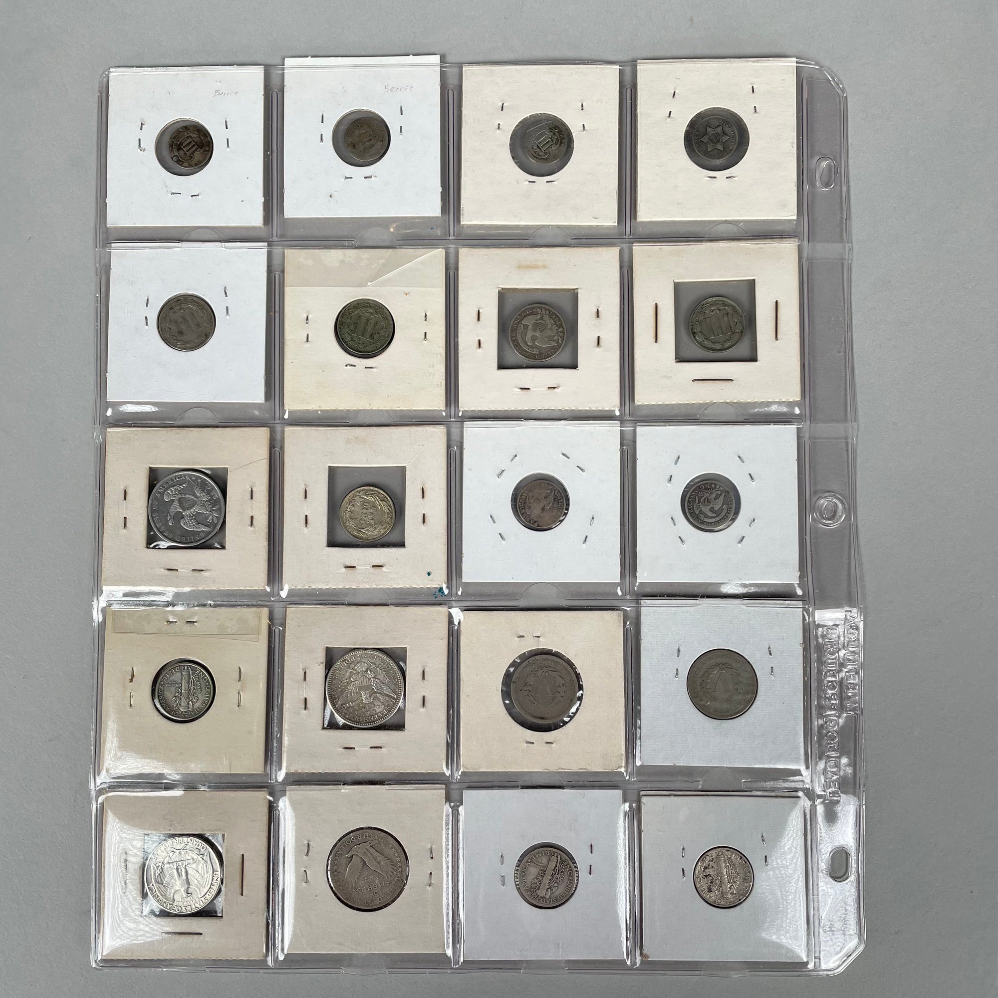US Type Lot of 143 Coins of Various Denominations, including 3 Cents to $1, Large Cents, Indian Head and Lincoln Cents.