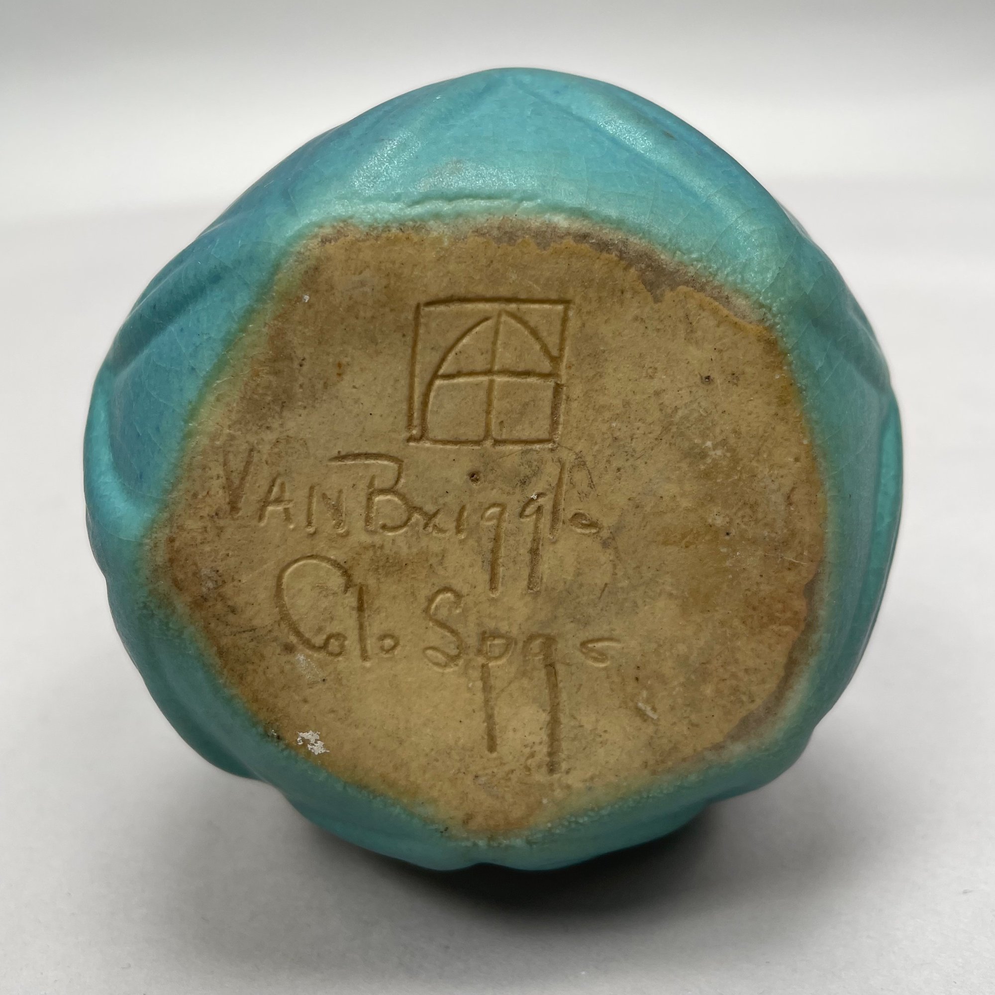 Van Briggle Pottery 'Water Lily' Vase, After 1920. Covered in shaded blue to green glaze, incised marks of conjoined letter "A's/ VAN Briggle/ Colo Spgs."