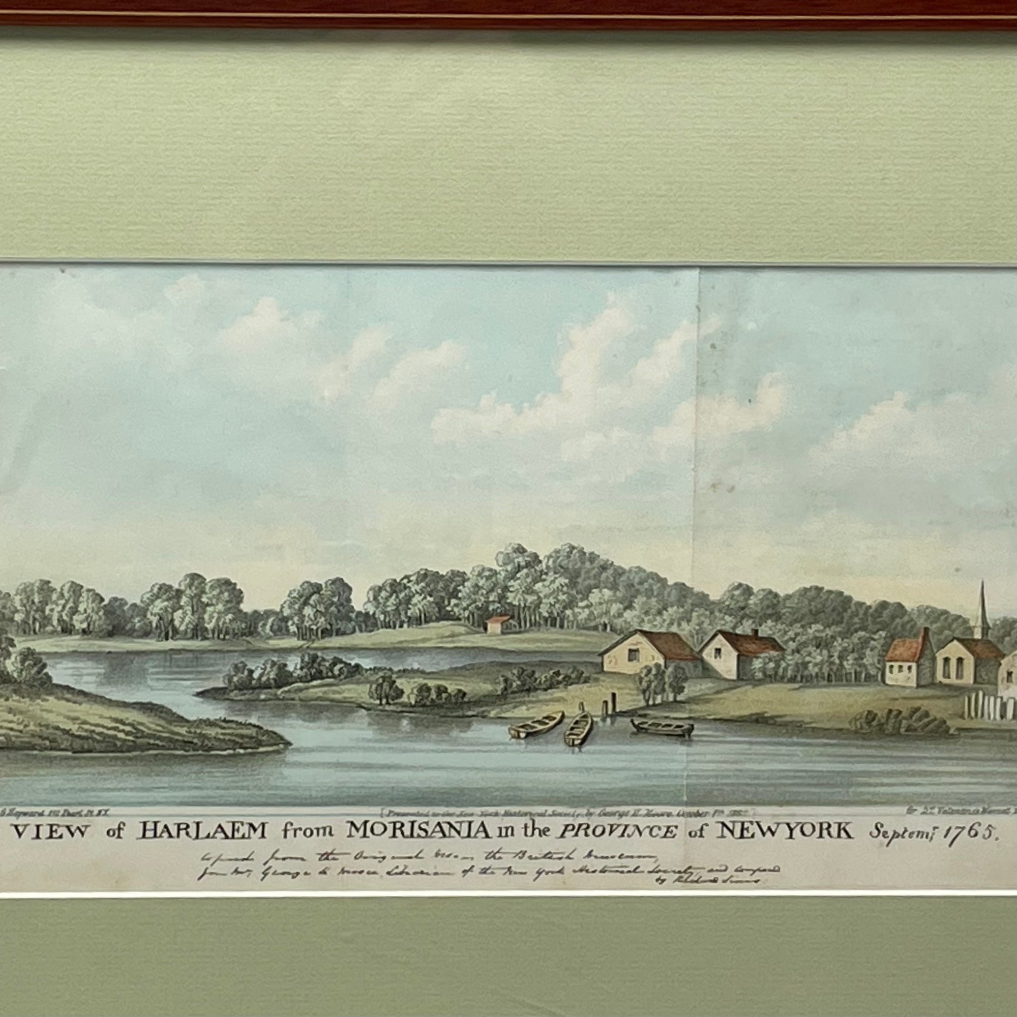 "View of Harlaem from Morisania in the Province of New York, Septem;r 1765." Lithograph by G. Hayward for D.T. Valentine's Manual 1863, (6.5 x 11 inches, sight).