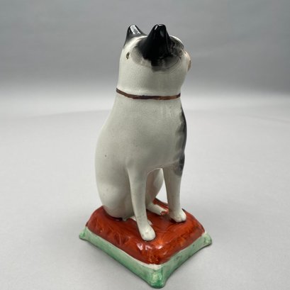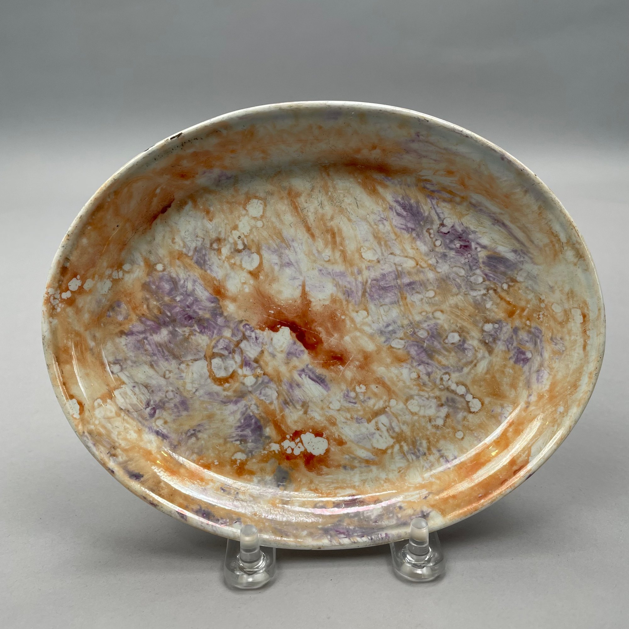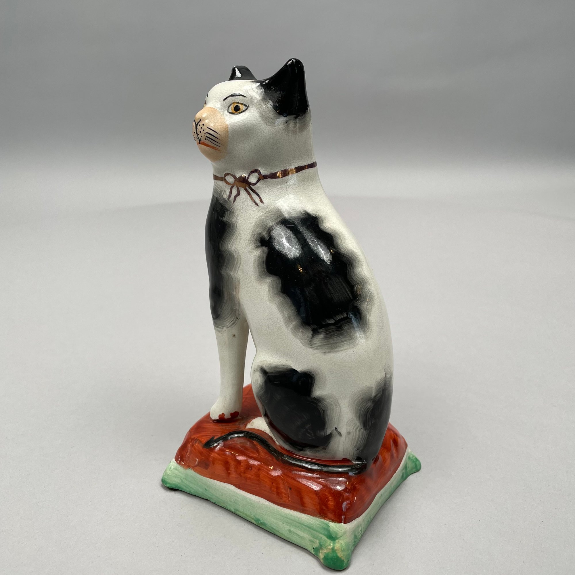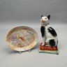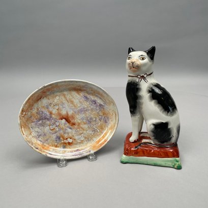 Wedgwood 'Moonlight Lustre' Oval Tray, Early Nineteenth Century; and a Staffordshire Figure of a Seated Cat on a Cushion, Mid-Nineteenth Century. The tray impressed "WEDGWOOD."