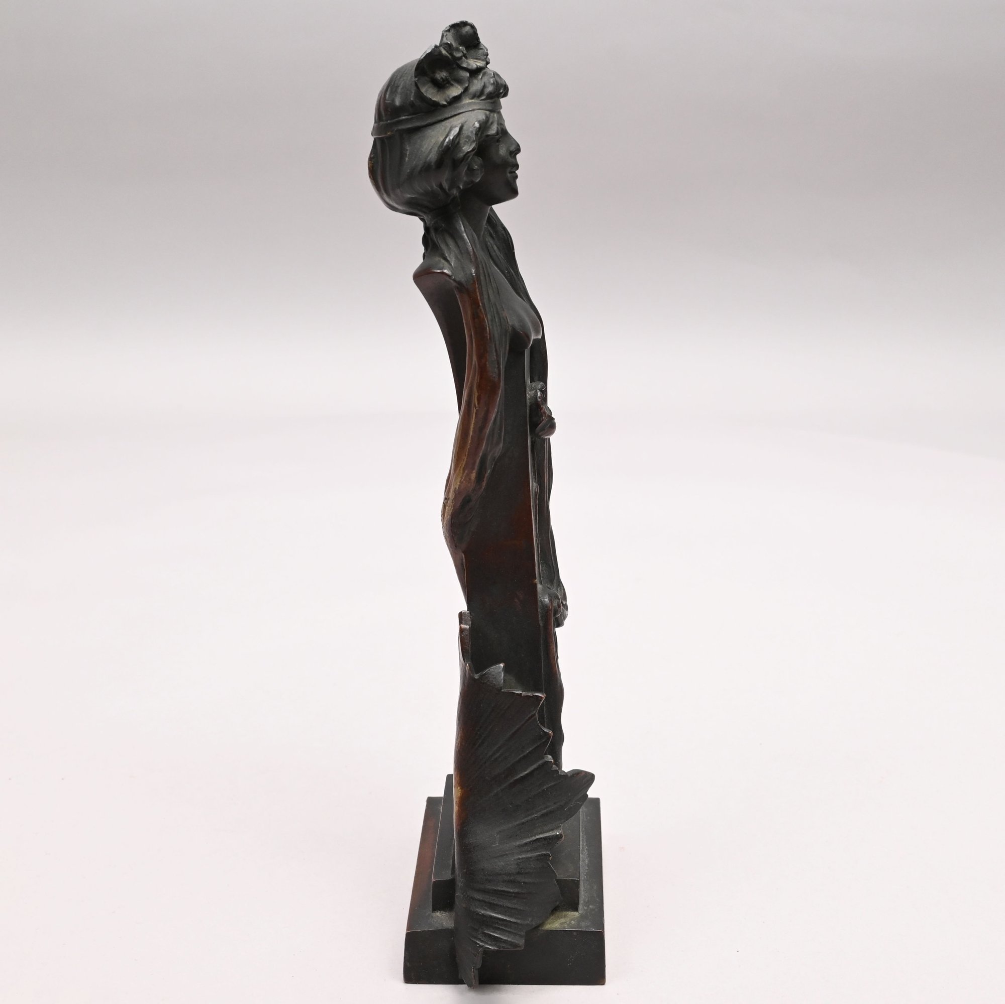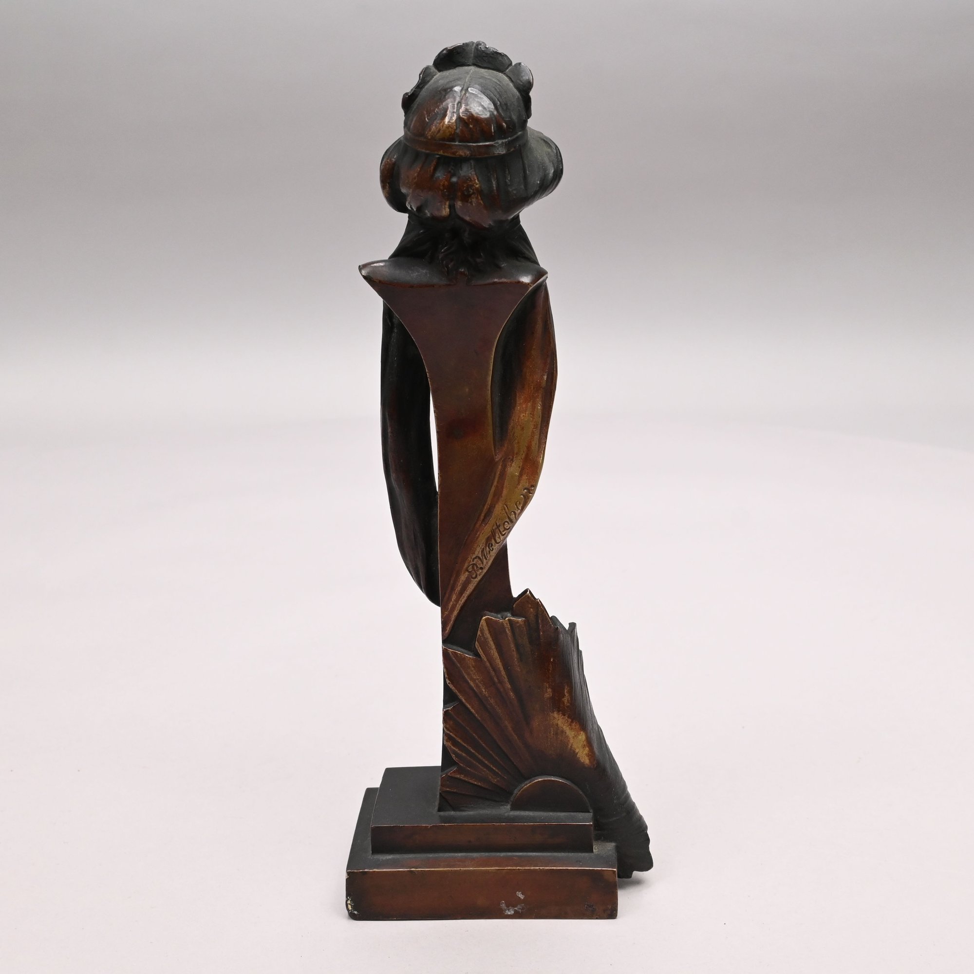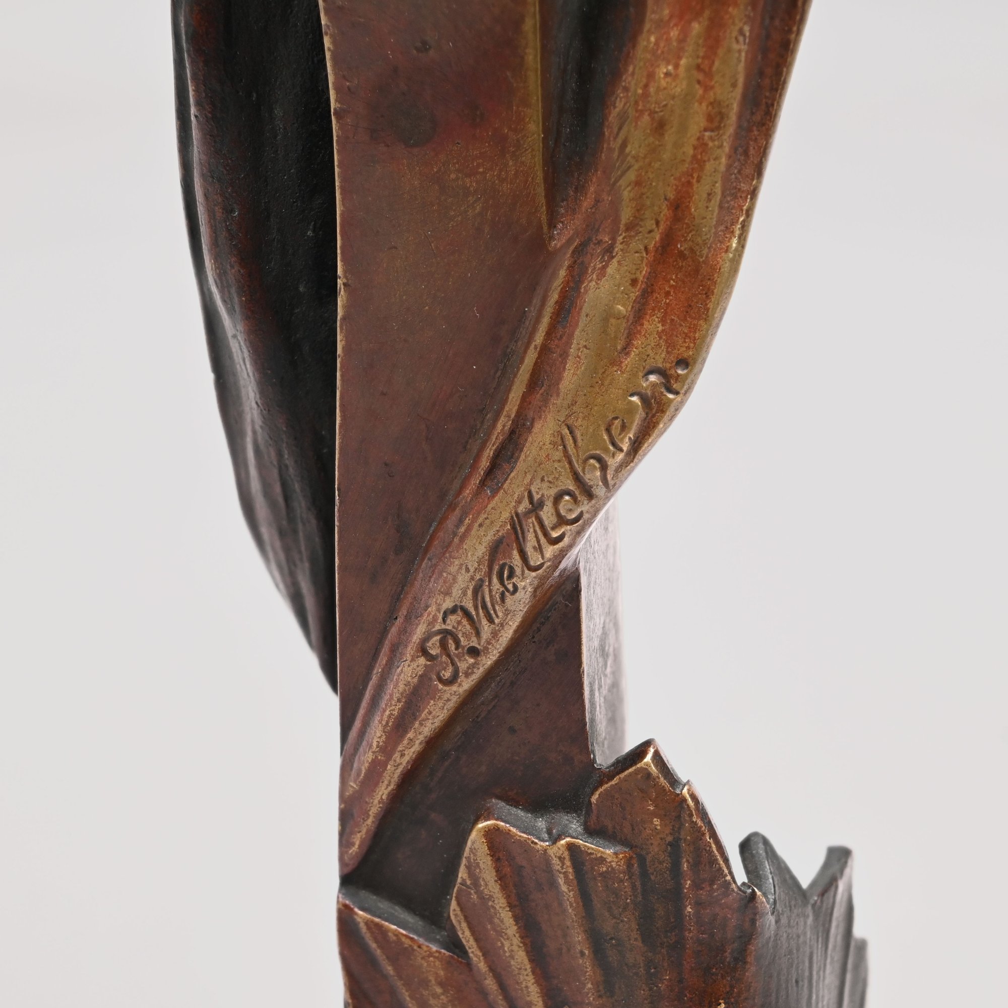 P. Weltchen. Jugendstil Bronze Figure of 'Day,' 1901.' Signed "P. Weltchen" on the back of the scarf.