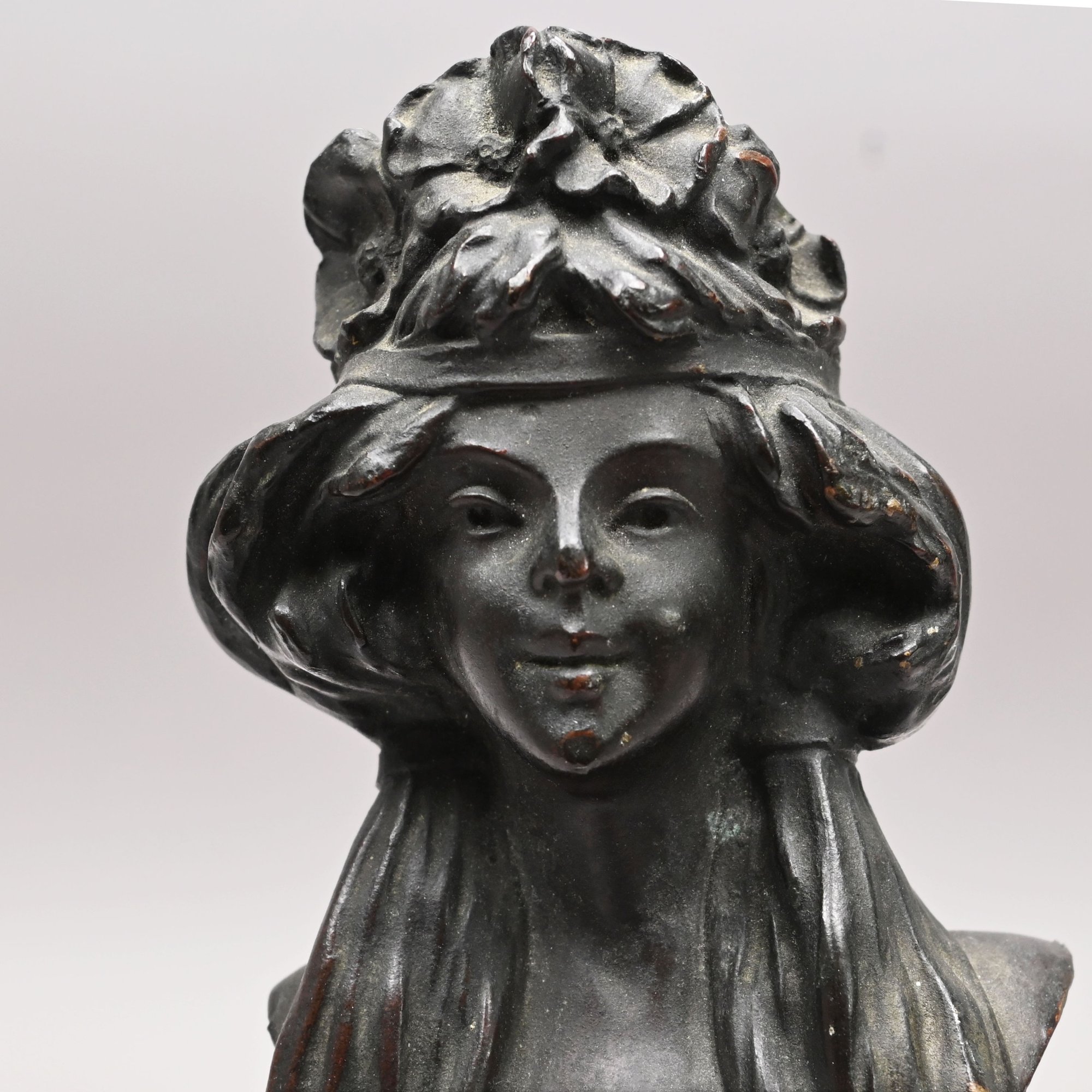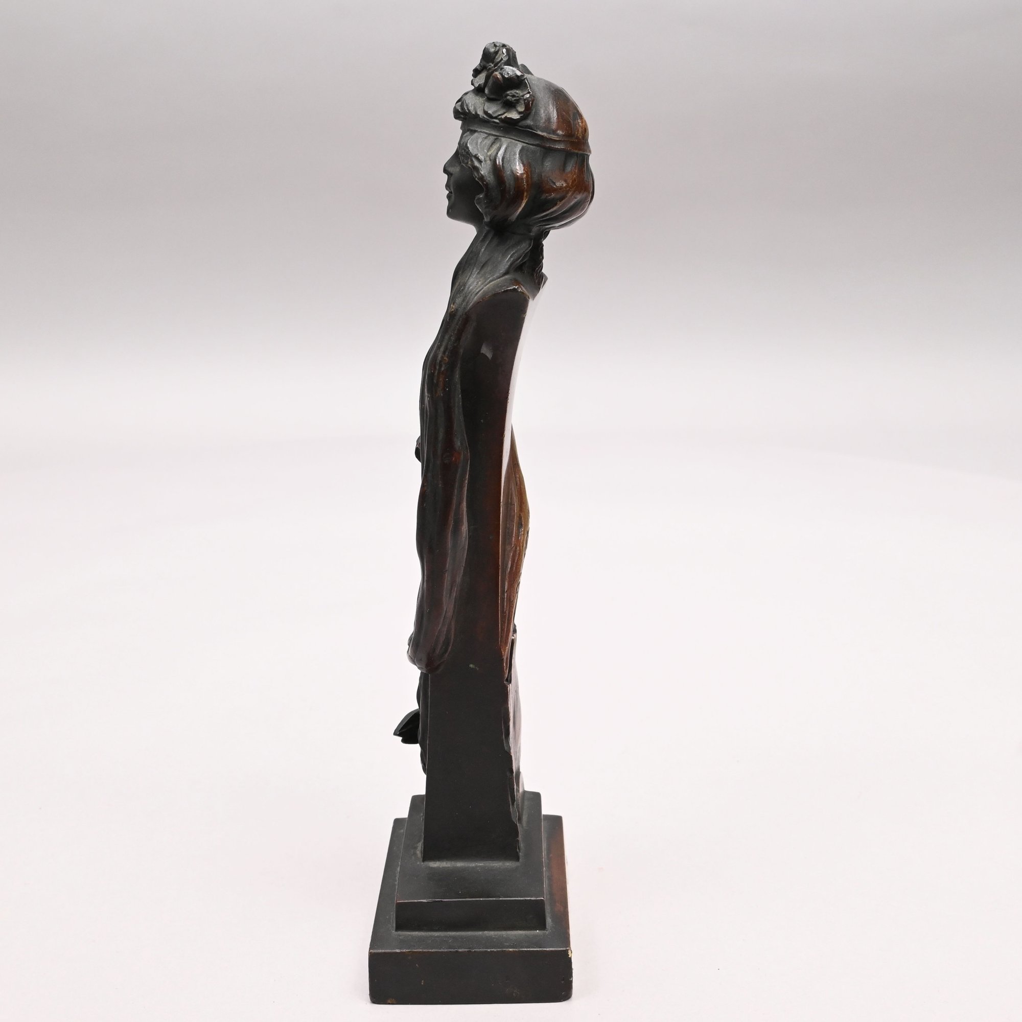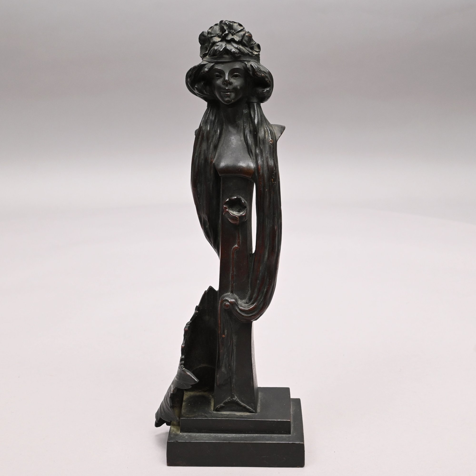 P. Weltchen. Jugendstil Bronze Figure of 'Day,' 1901.' Signed "P. Weltchen" on the back of the scarf.