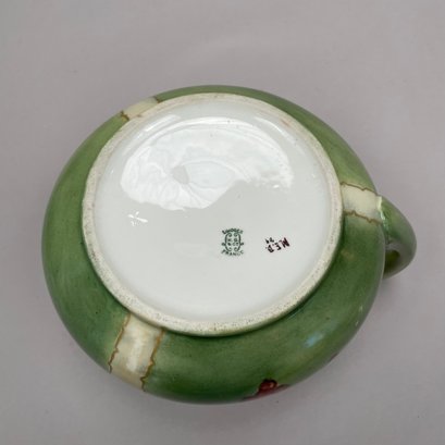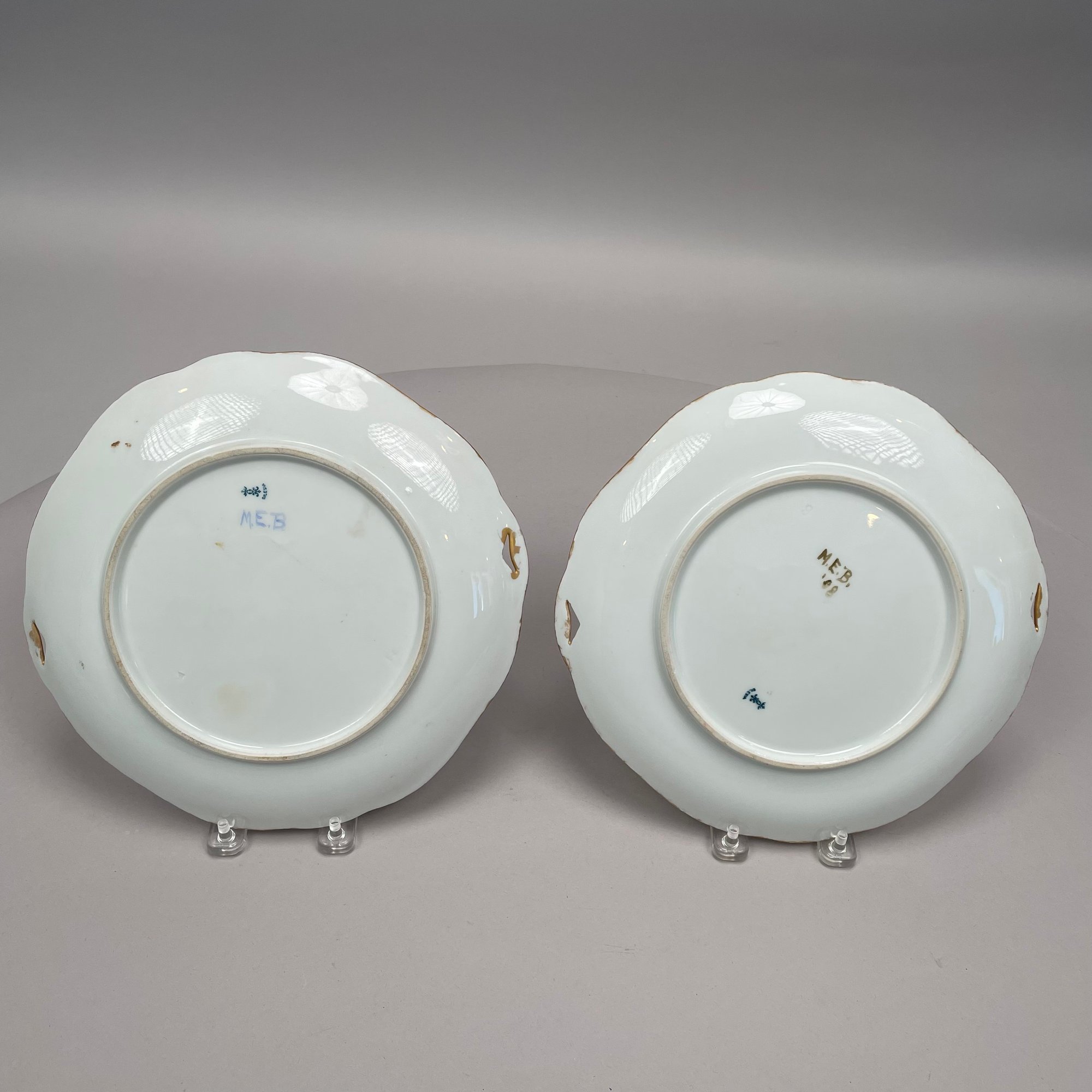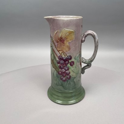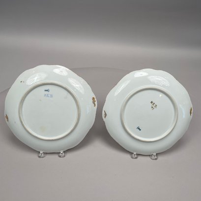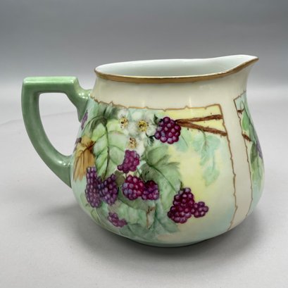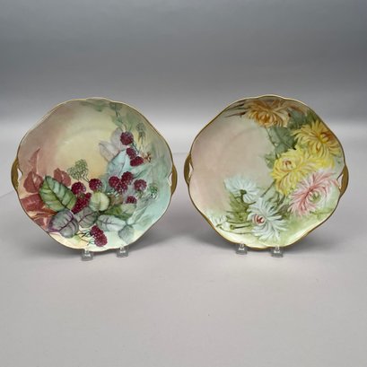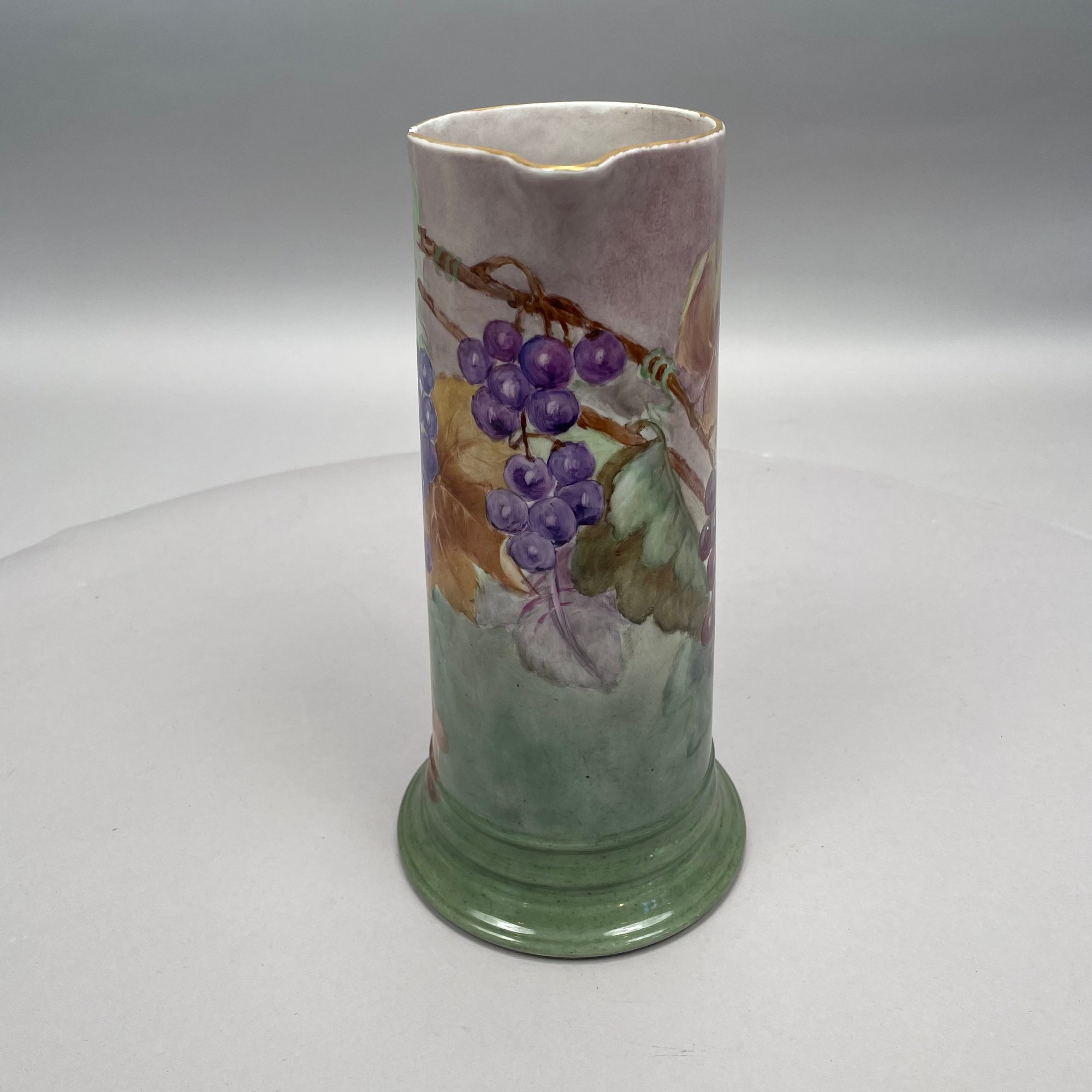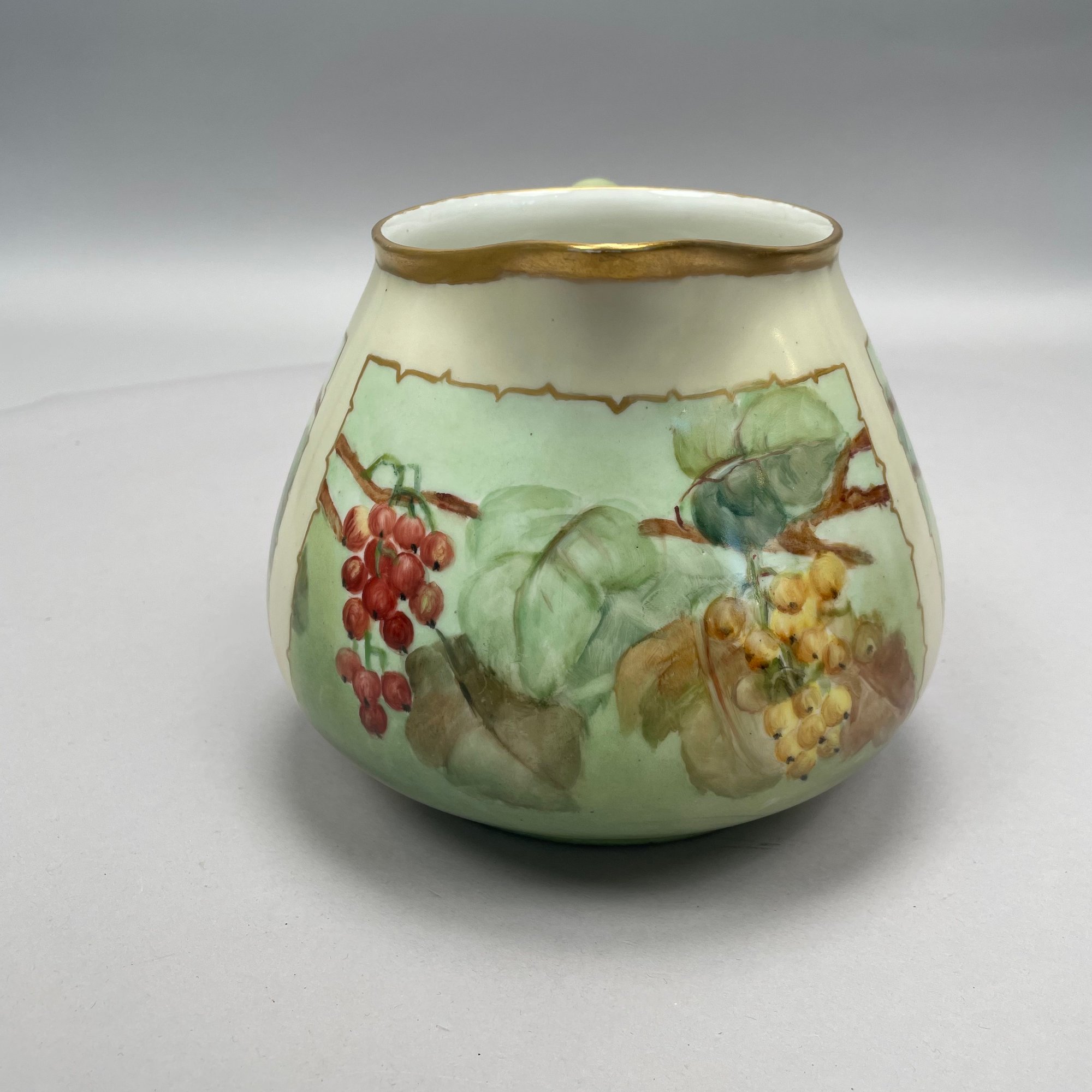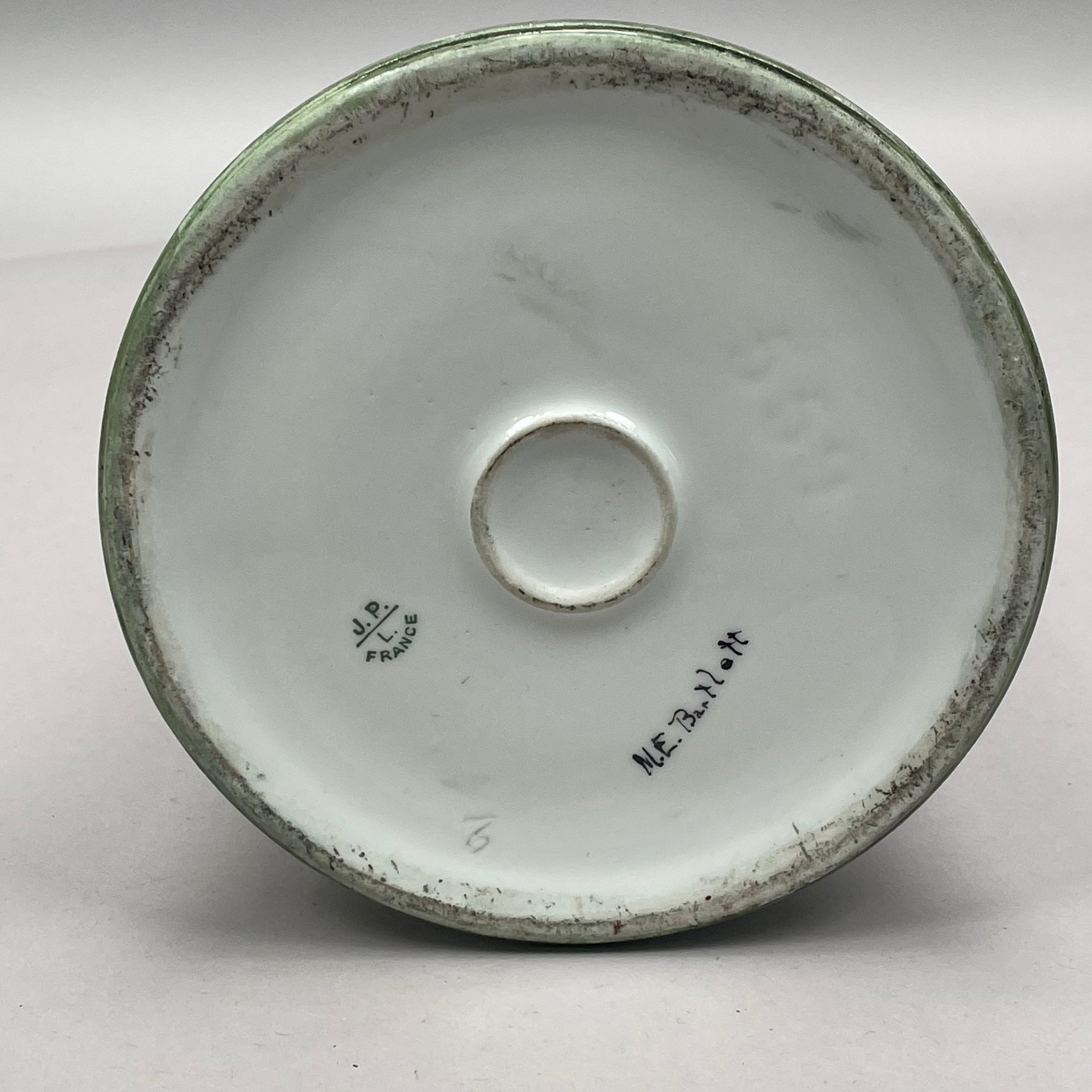 Women China Decorators, Five Porcelain Wares, Painted by Mollie Elizabeth Bartlett Carpenter, 1908- circa 1910. Comprising a pair of German plates, each signed on the reverse with the initials "M.E.B." and one dated "'08," each with printed (Hermann) Ohme Silesia factory mark; a pair of William Guerin Limoges pitchers, one signed beneath with the initials and date "M.E.B./ '09," the other with the initials "M.E.B.C.," each piece with printed "W.G. & Co." factory mark; and a Jean Pouyat Limoges tankard, signed beneath "M.E.Bartlett," printed "JPL" factory mark.