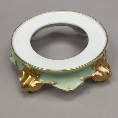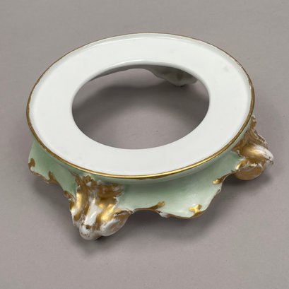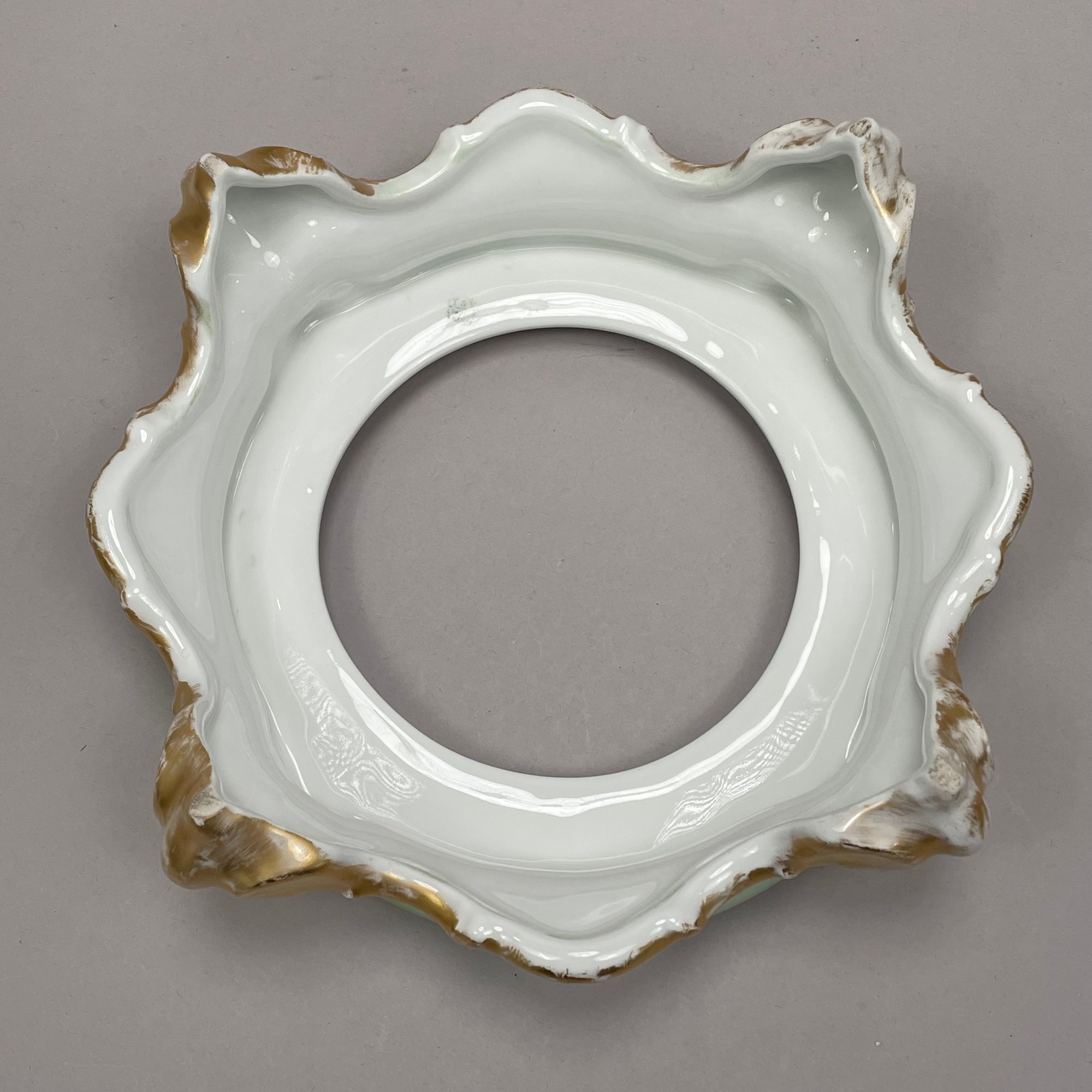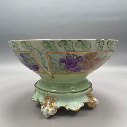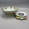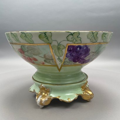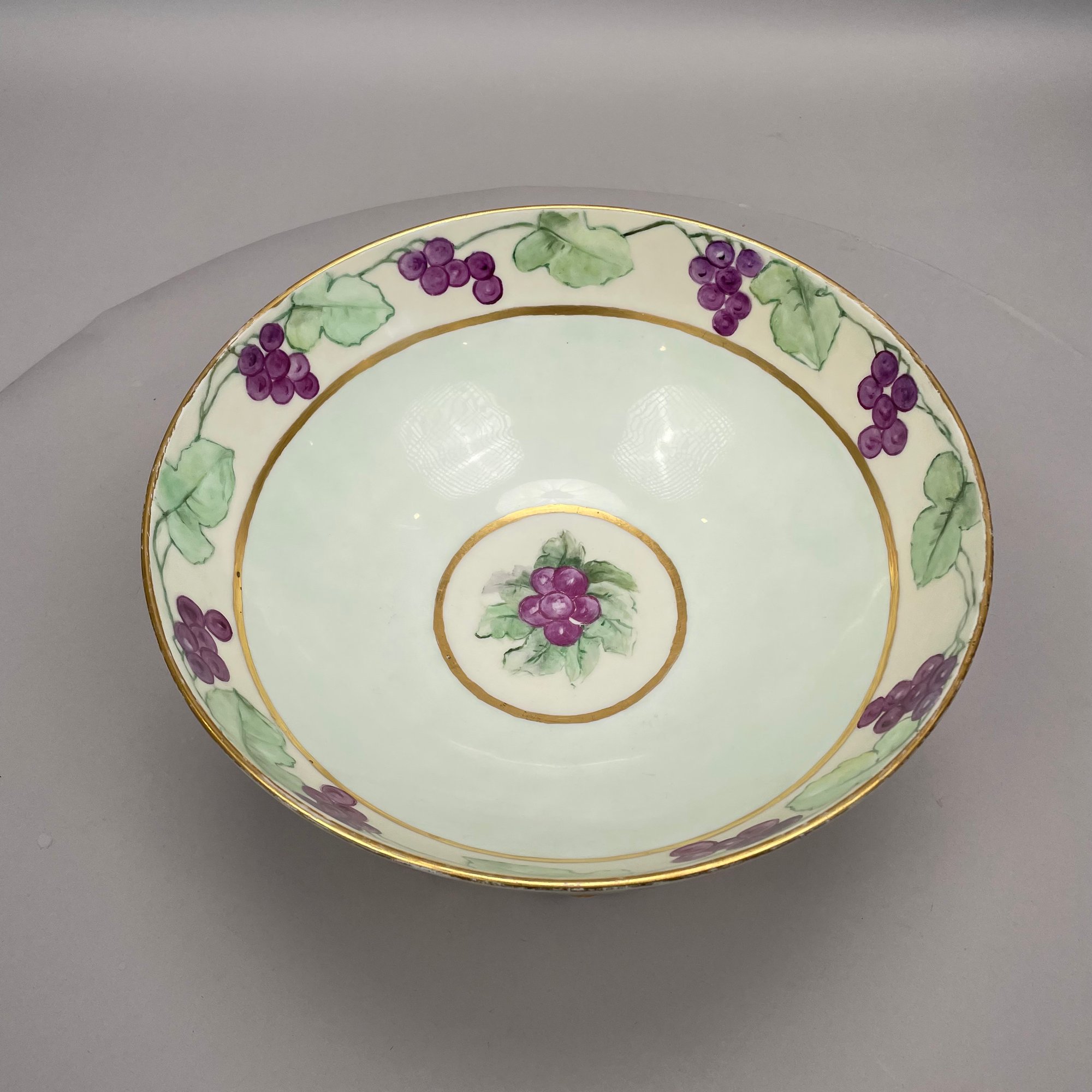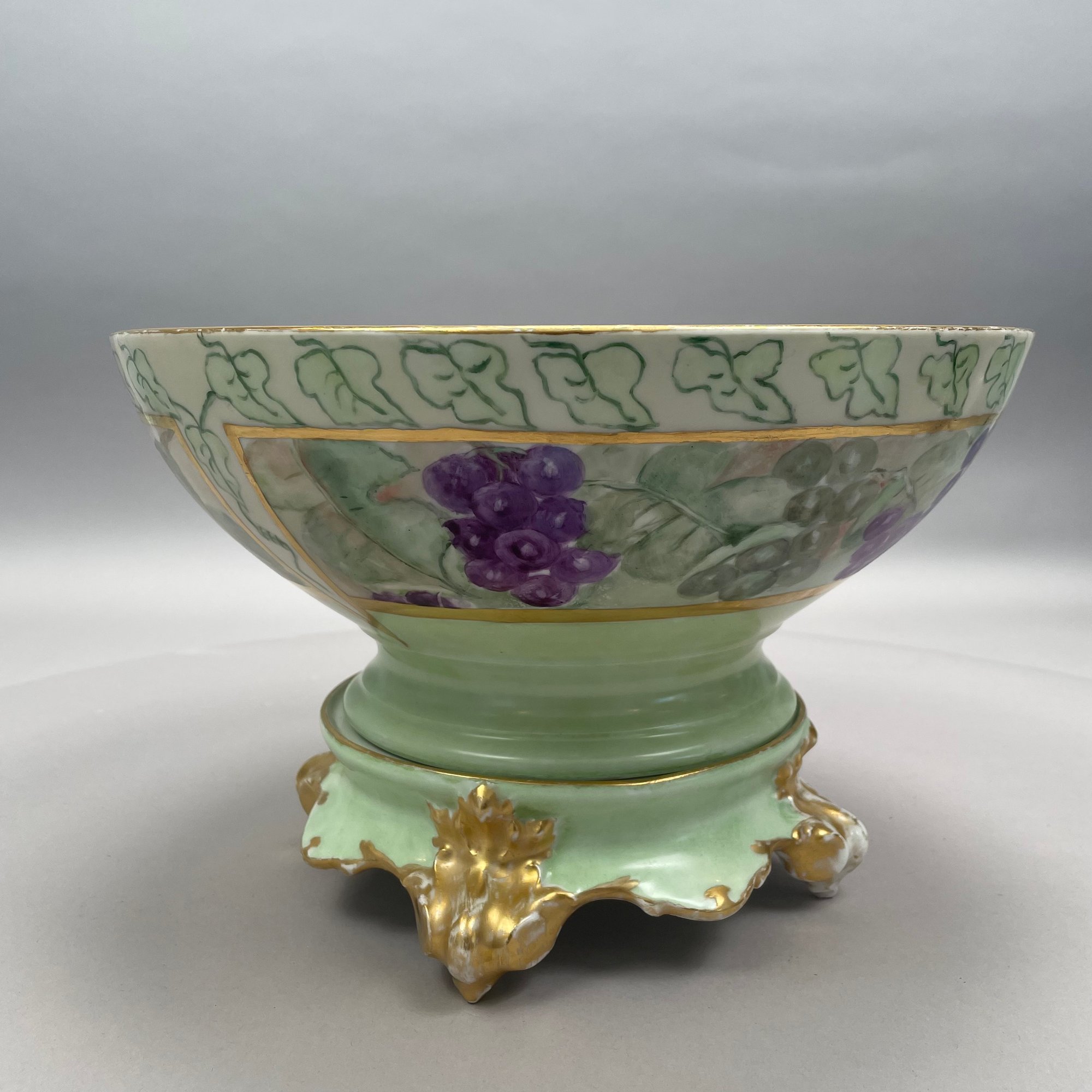 Women China Decorators, Tressemanes & Vogt Limoges Porcelain Punch Bowl and Stand, Painted by Mollie Elizabeth Bartlett Carpenter, Dated 1910. Signed beneath the bowl with the initials "M.E.B.C./ 1910," each piece with printed "T & V" factory mark.