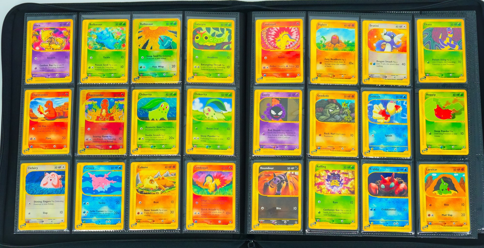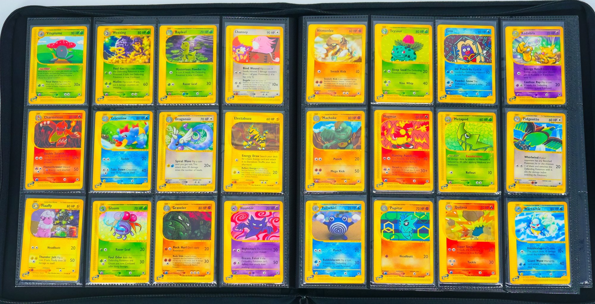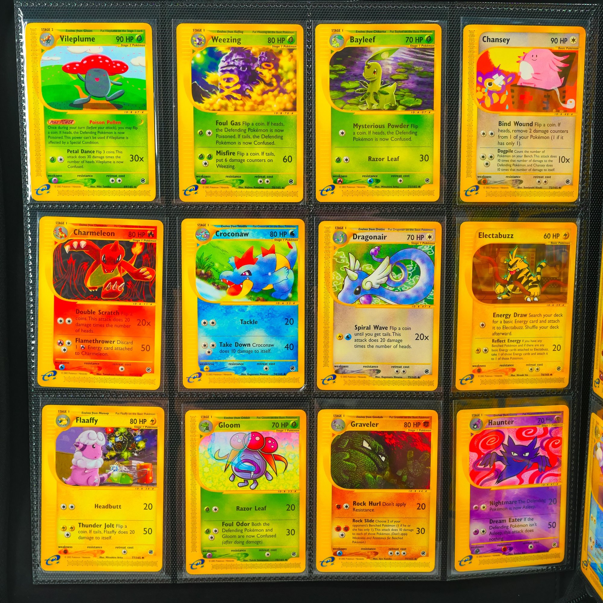 Complete Expedition Base Set runs represent one of the most structurally significant configurations in the entire WOTC-era Pokémon hobby. As the inaugural release of the e-Reader era and WOTC's penultimate Pokémon production before licensing transitioned to Nintendo, the set carries unique historical weight, introducing the landscape holo window and e-Reader dot-code technology that would define the brief but distinctive e-Series. At 165 cards, Expedition is also the largest WOTC-era Pokémon set ever produced, making the assembly of a complete run an exponentially more demanding undertaking than any preceding release. Intact 165/165 sets have grown progressively scarcer as the grading market has pulled headliners out of completed sets one at a time, and reassembling a full set today, particularly one anchored by a holo Blastoise and reverse-holo Charizard with both non-holo copies also intact, requires either years of patient sourcing or a single decisive acquisition at the set level.
