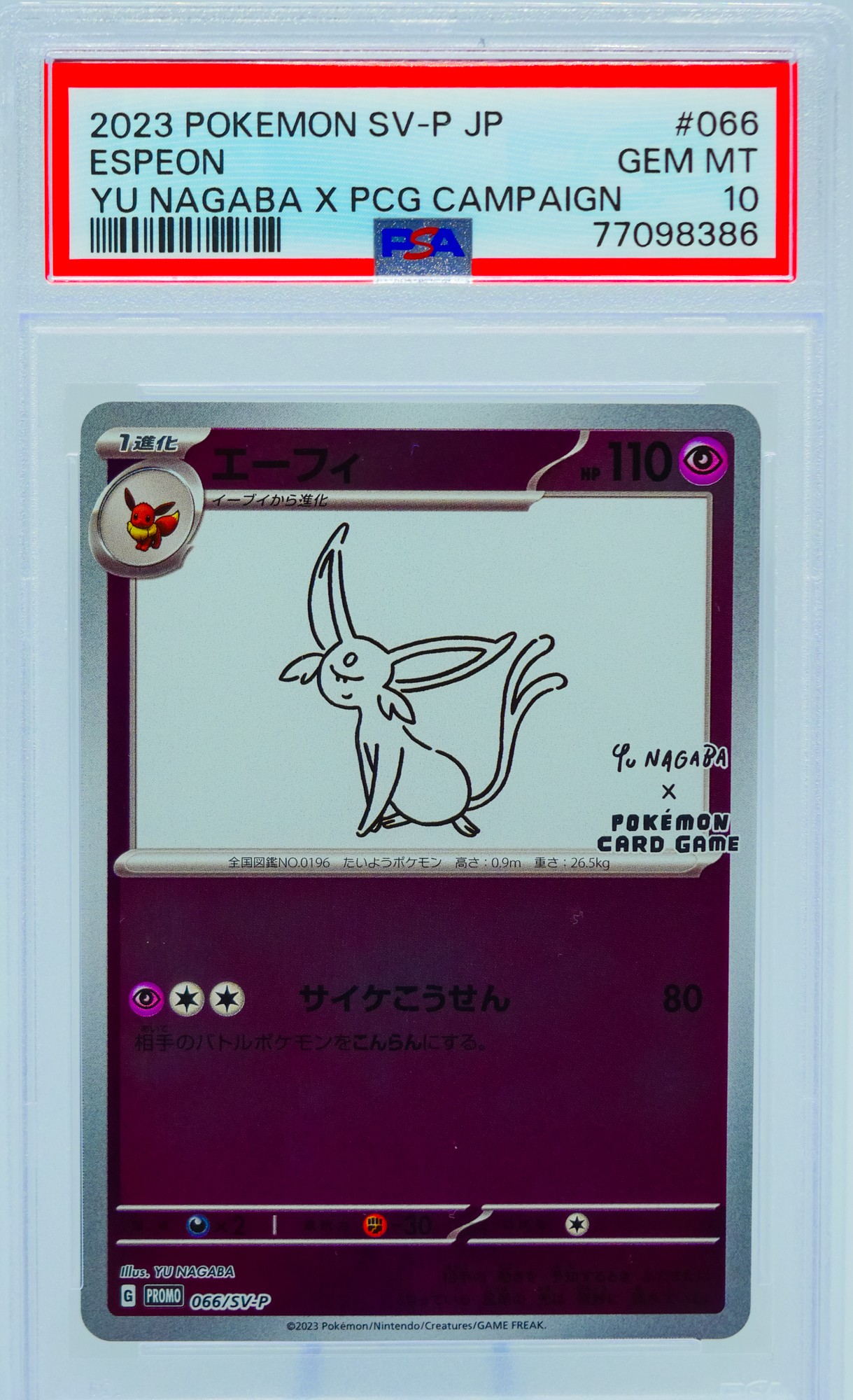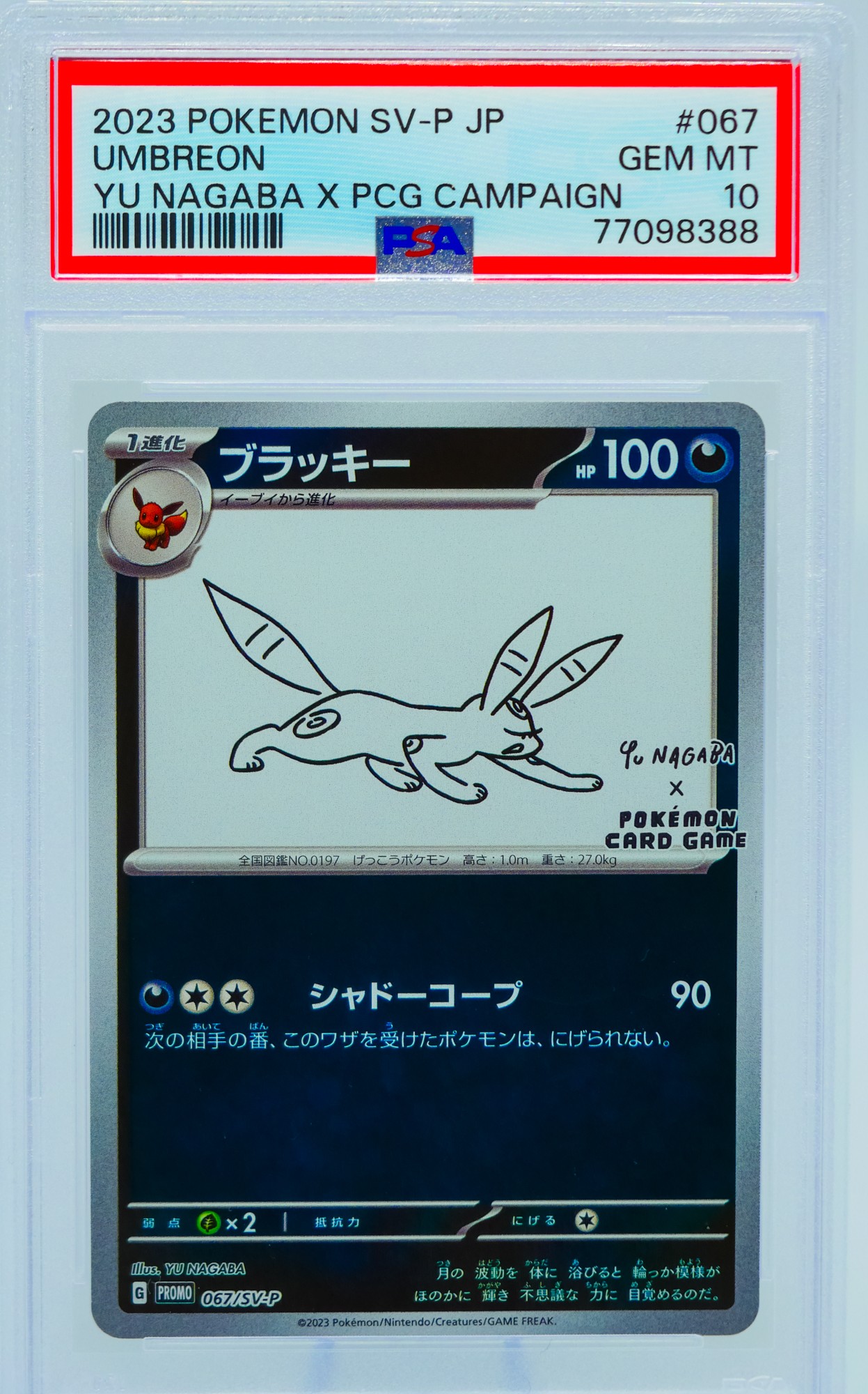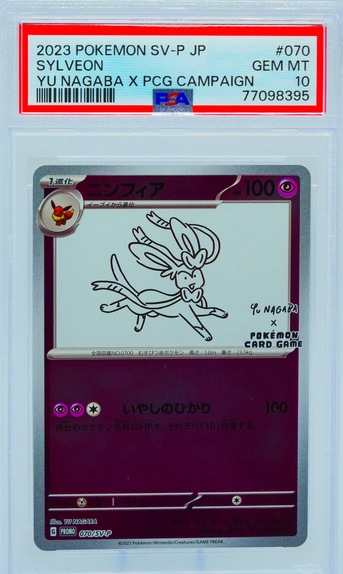 The Nagaba Eeveelution series has become one of the most recognized and desired promo sets in the modern Pokemon TCG, appealing equally to art collectors who appreciate Nagaba's broader body of work, Eeveelution completionists who need every variant of their favorite evolutionary family, and Japanese promo specialists who understand the long-term trajectory of limited-distribution campaign cards. As a complete PSA 10 set, this lot represents the definitive way to own this collaboration. Sold as a complete lot.