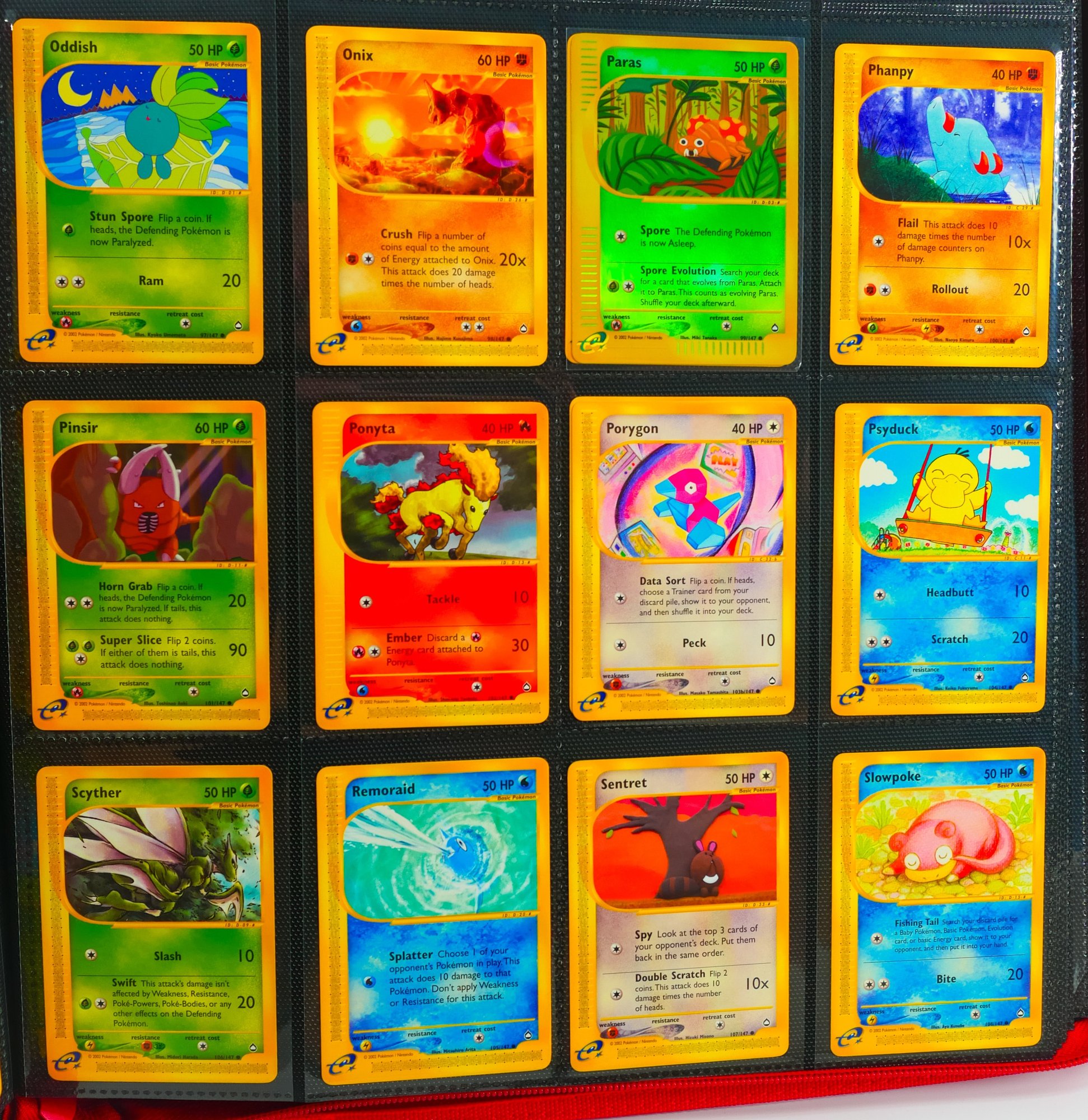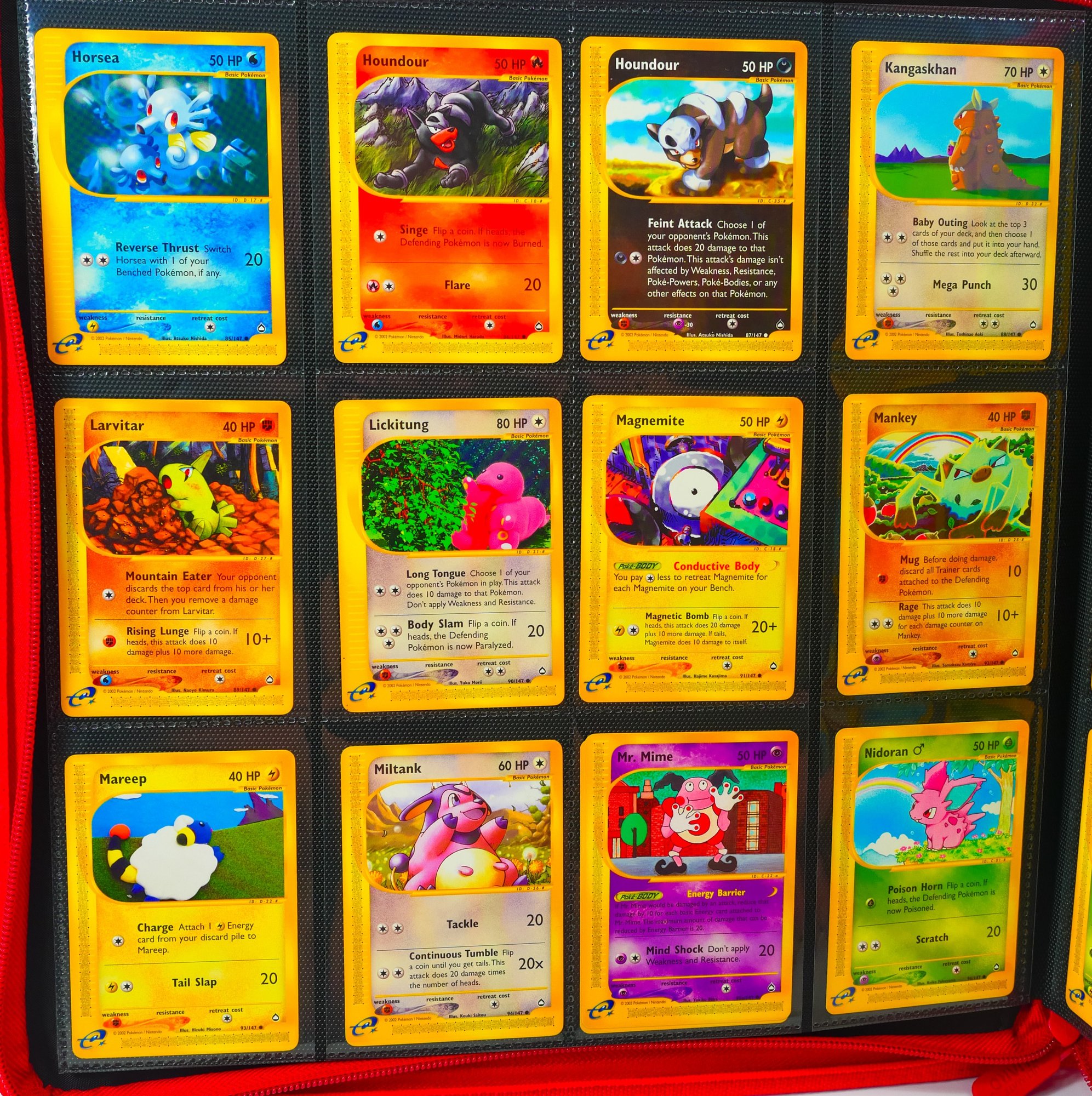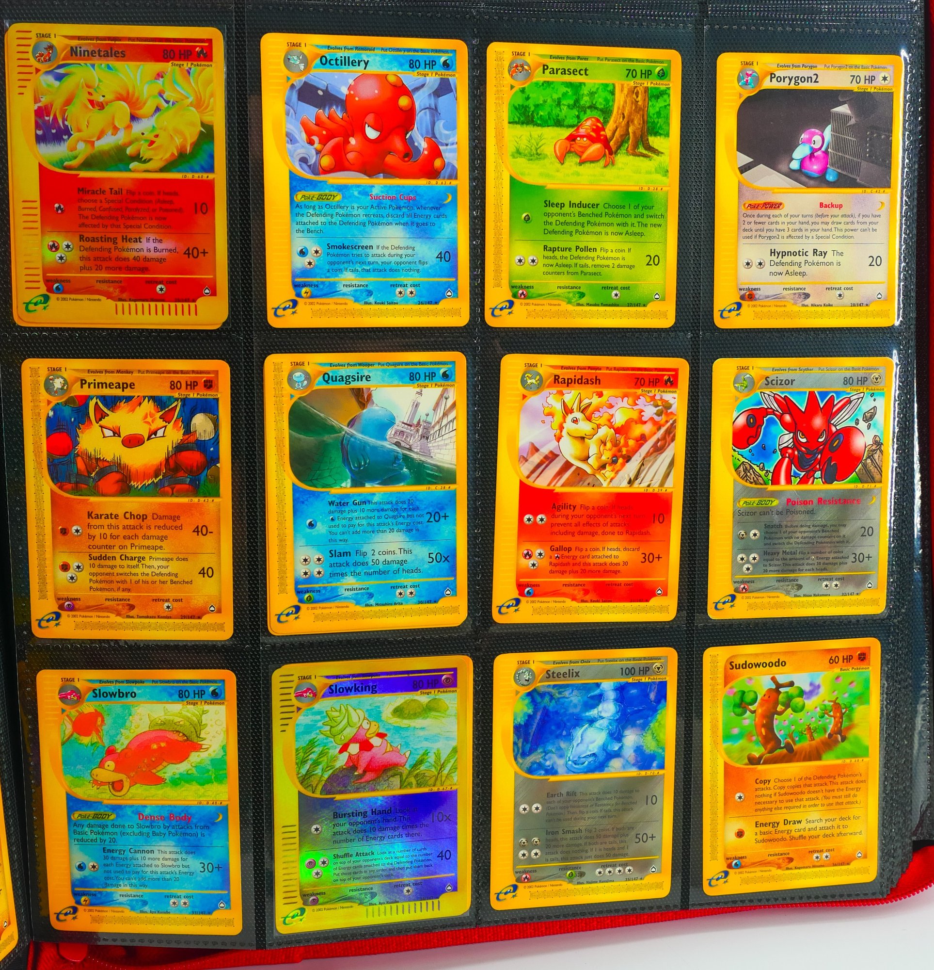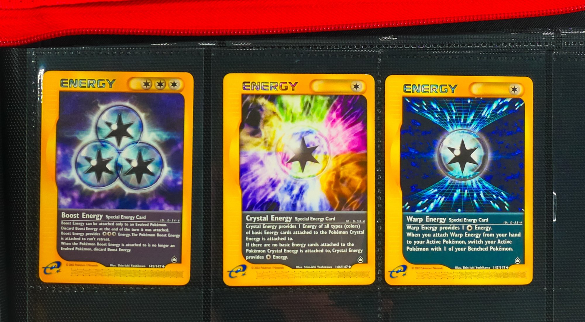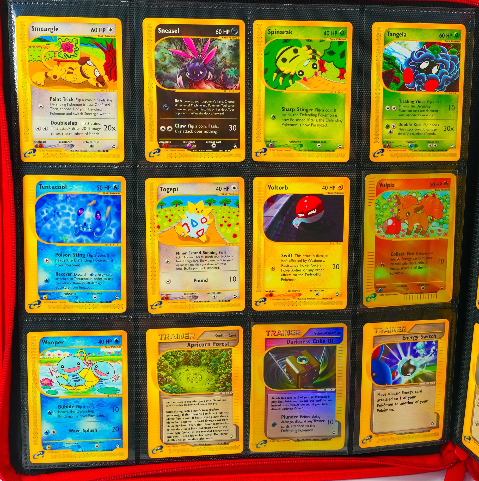 Complete Aquapolis sets represent one of the most structurally significant configurations in the entire Pokémon hobby. As the second release of the e-Reader era and a direct predecessor to the WOTC-closing Skyridge, Aquapolis carries unique historical weight, and the crackle holographic treatment shared with its Expedition and Skyridge counterparts has never been replicated in any subsequent Pokémon release. The reverse-holographic Umbreon in particular, pioneered by this set and instantly recognizable by its haunting twilight artwork and full-card shimmer, commands significant premiums on the secondary market and has become progressively scarcer as collectors dismantle completed sets to submit copies for grading.