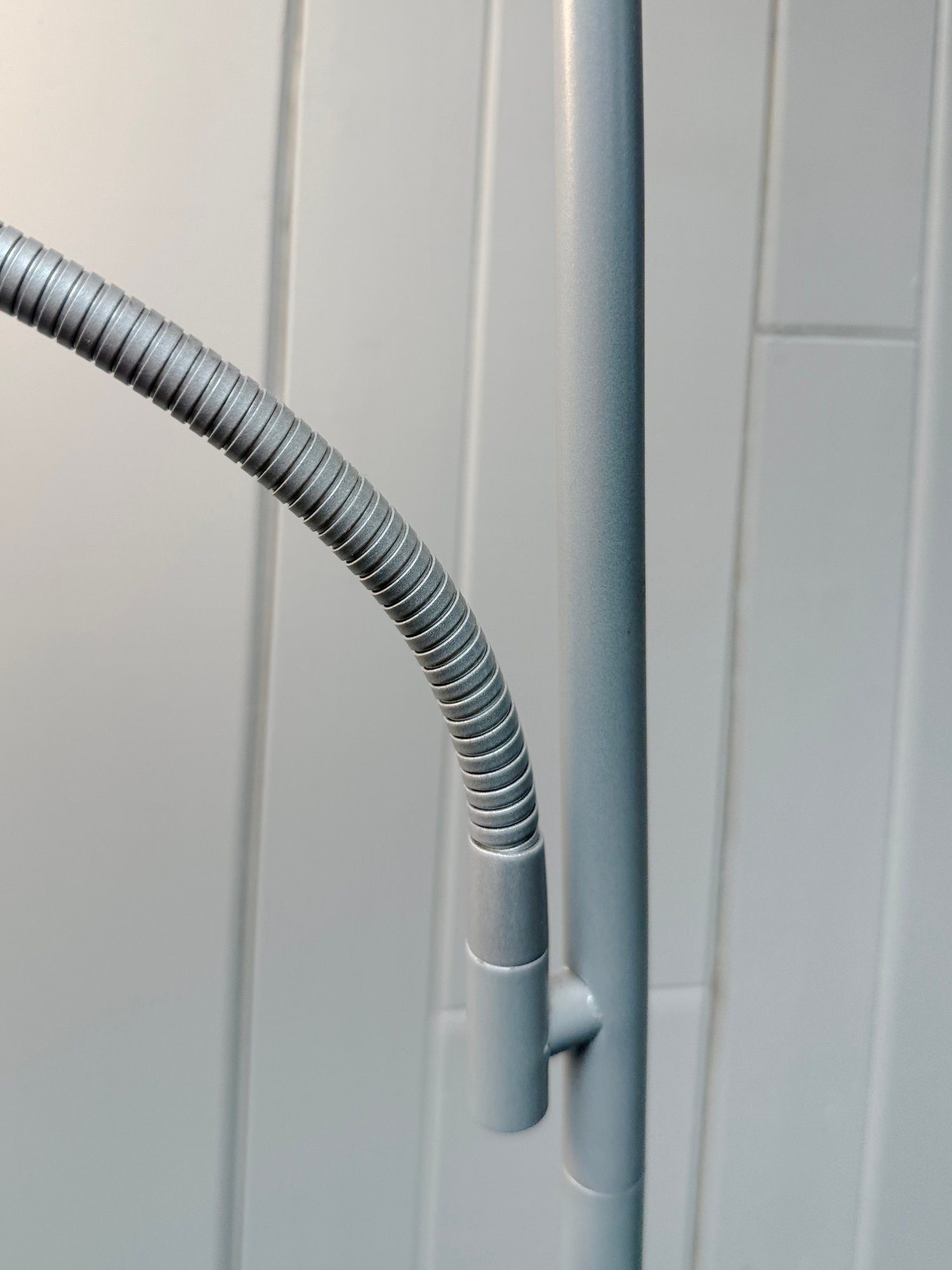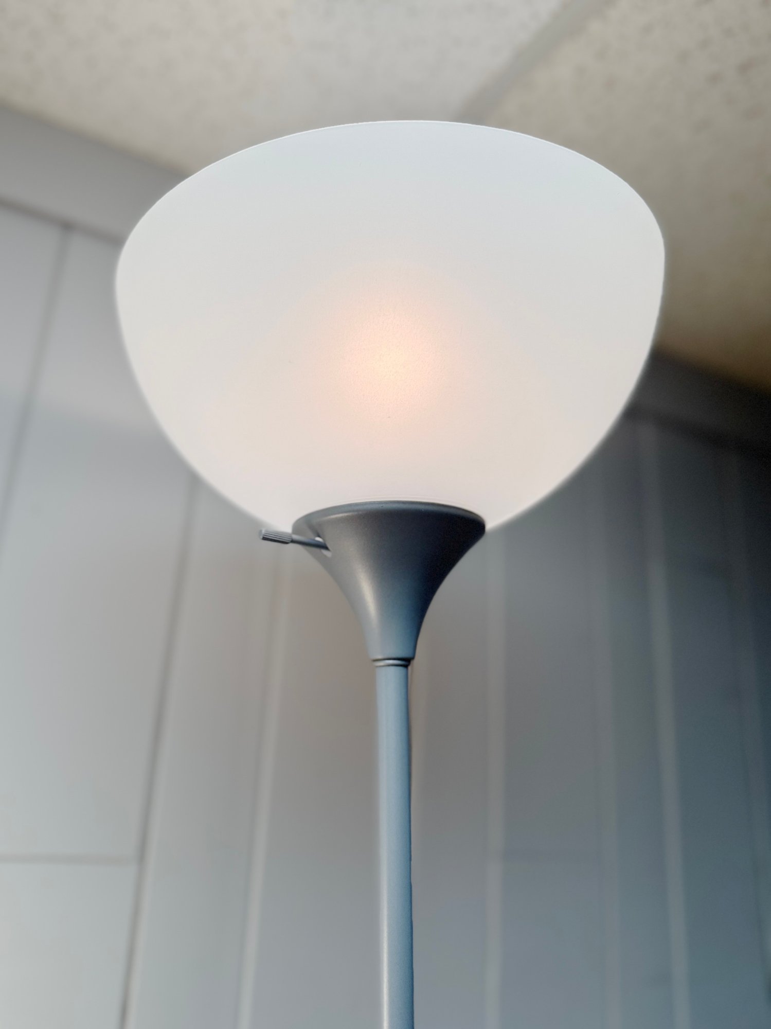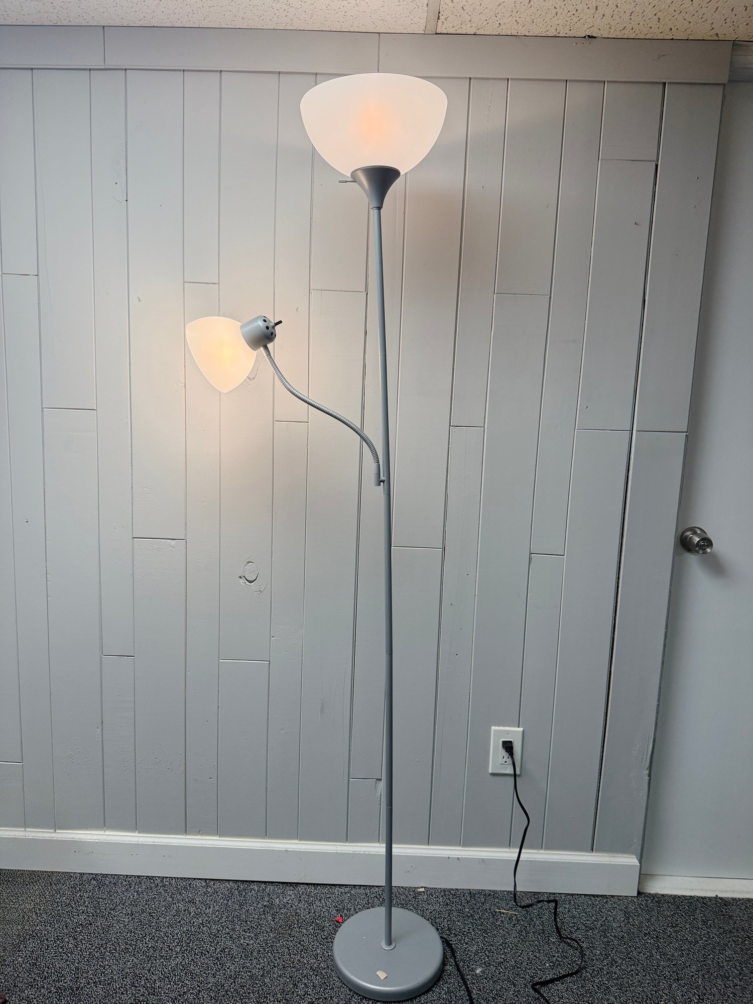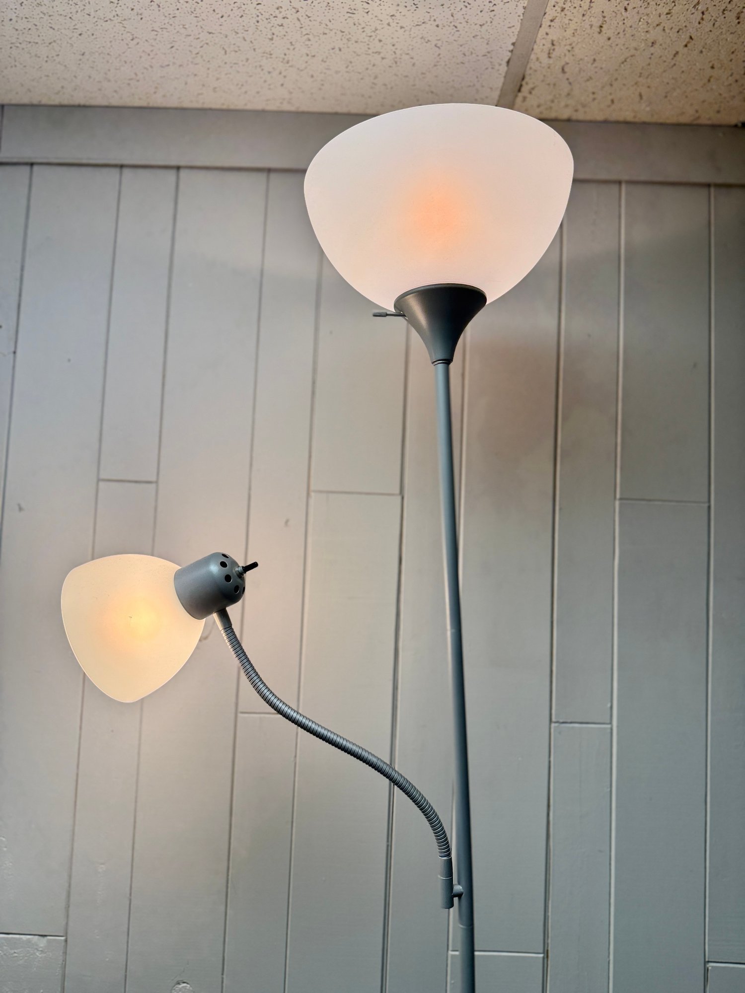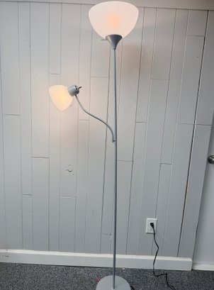(P-105) ADJUSTABLE FLOOR LAMP WITH TWO GLASS SHADES -WORKING