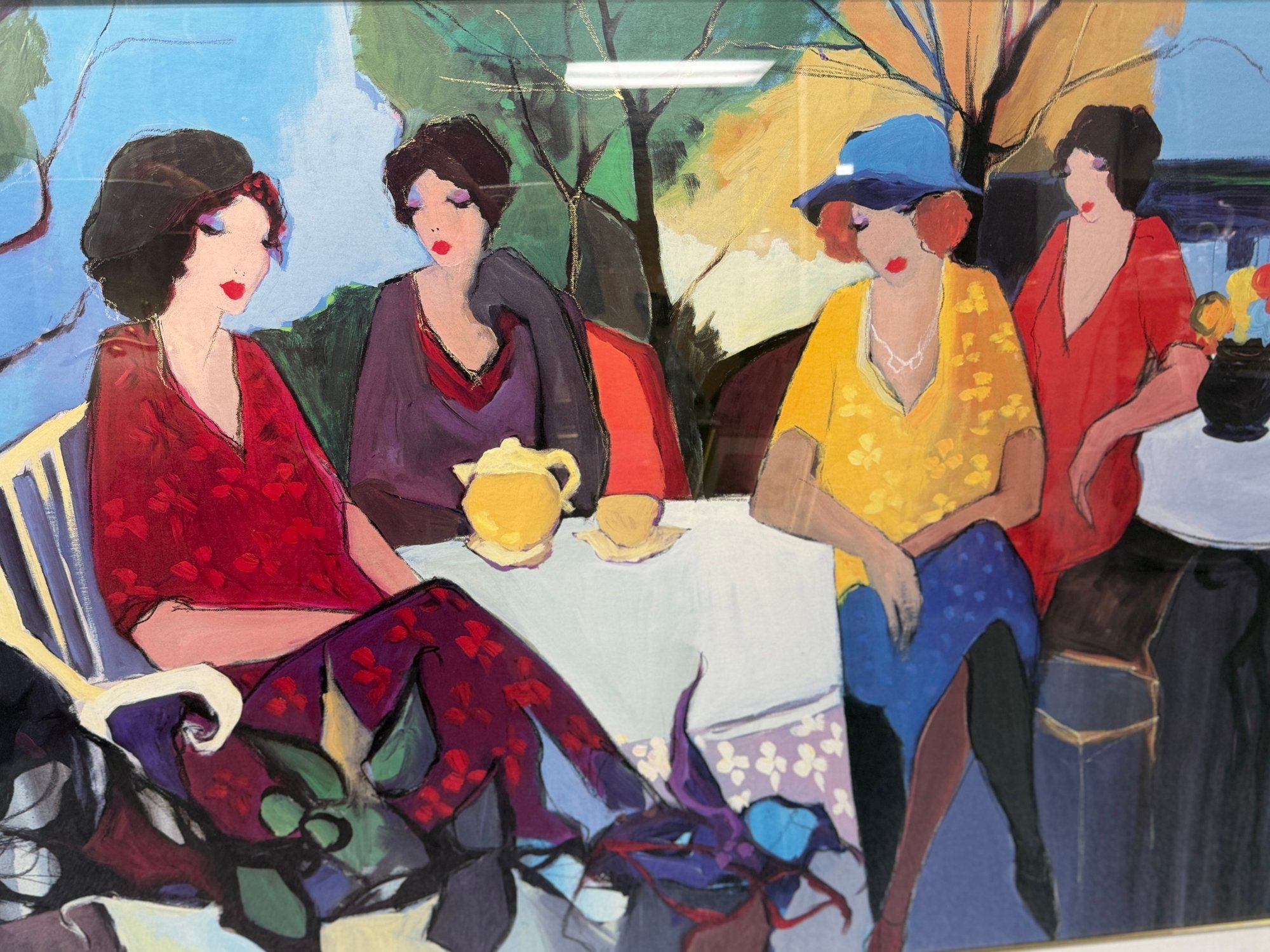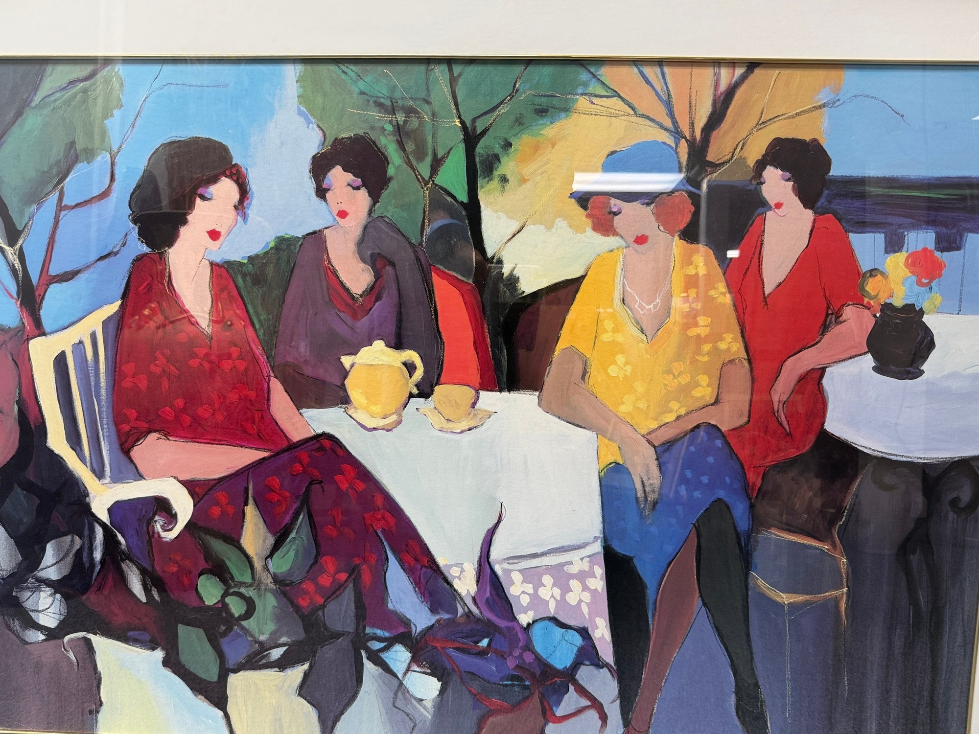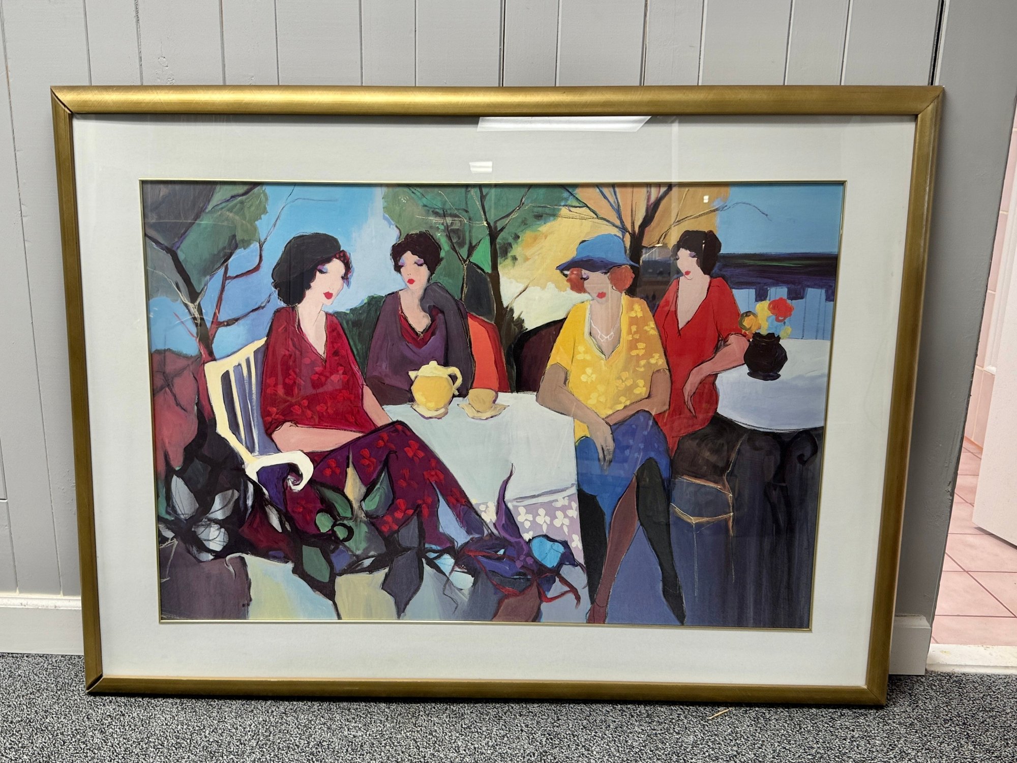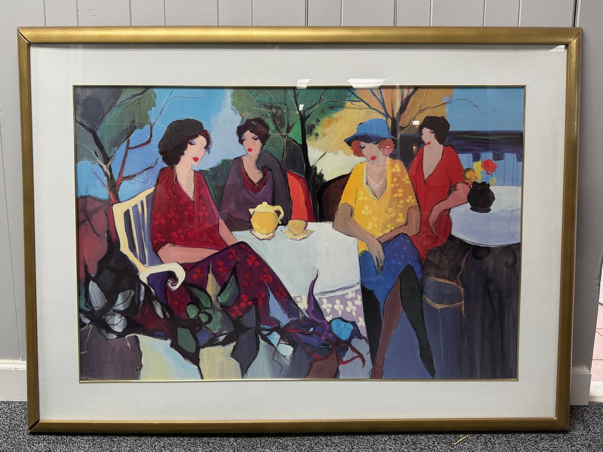 (P-11) VINTAGE FRAMED FINE ART PRINT ITZCHAK TARKAY GARDEN PARTY- 54" BY 40"