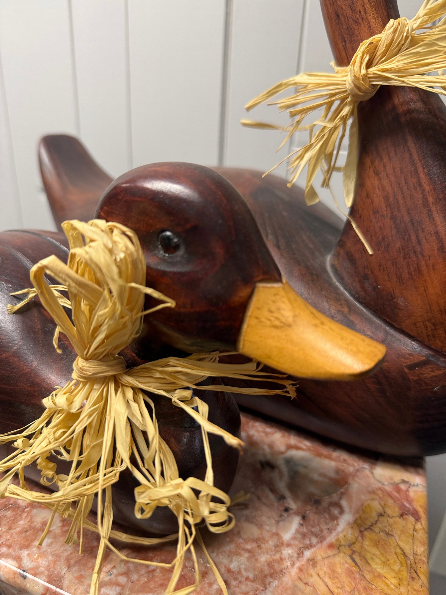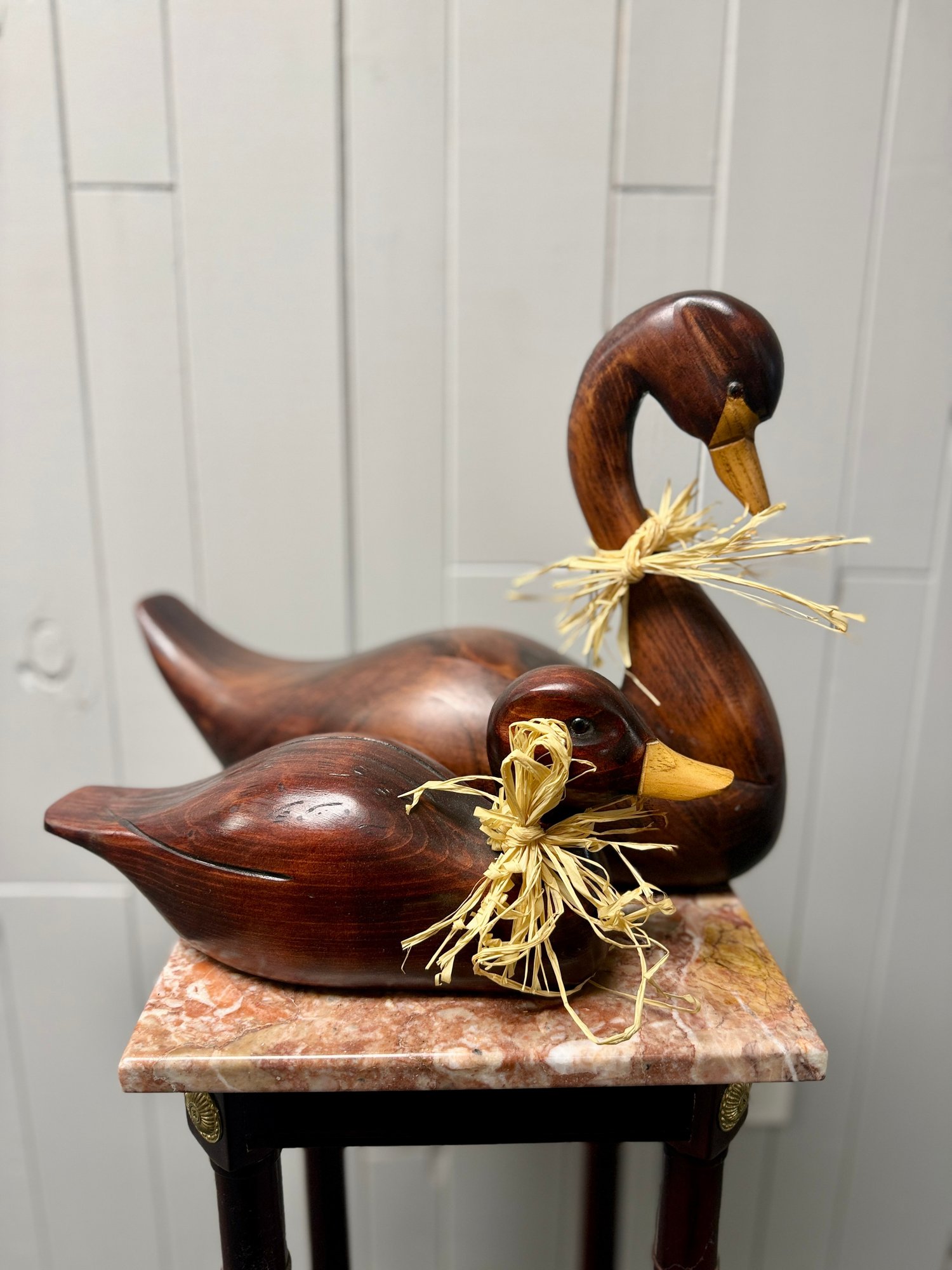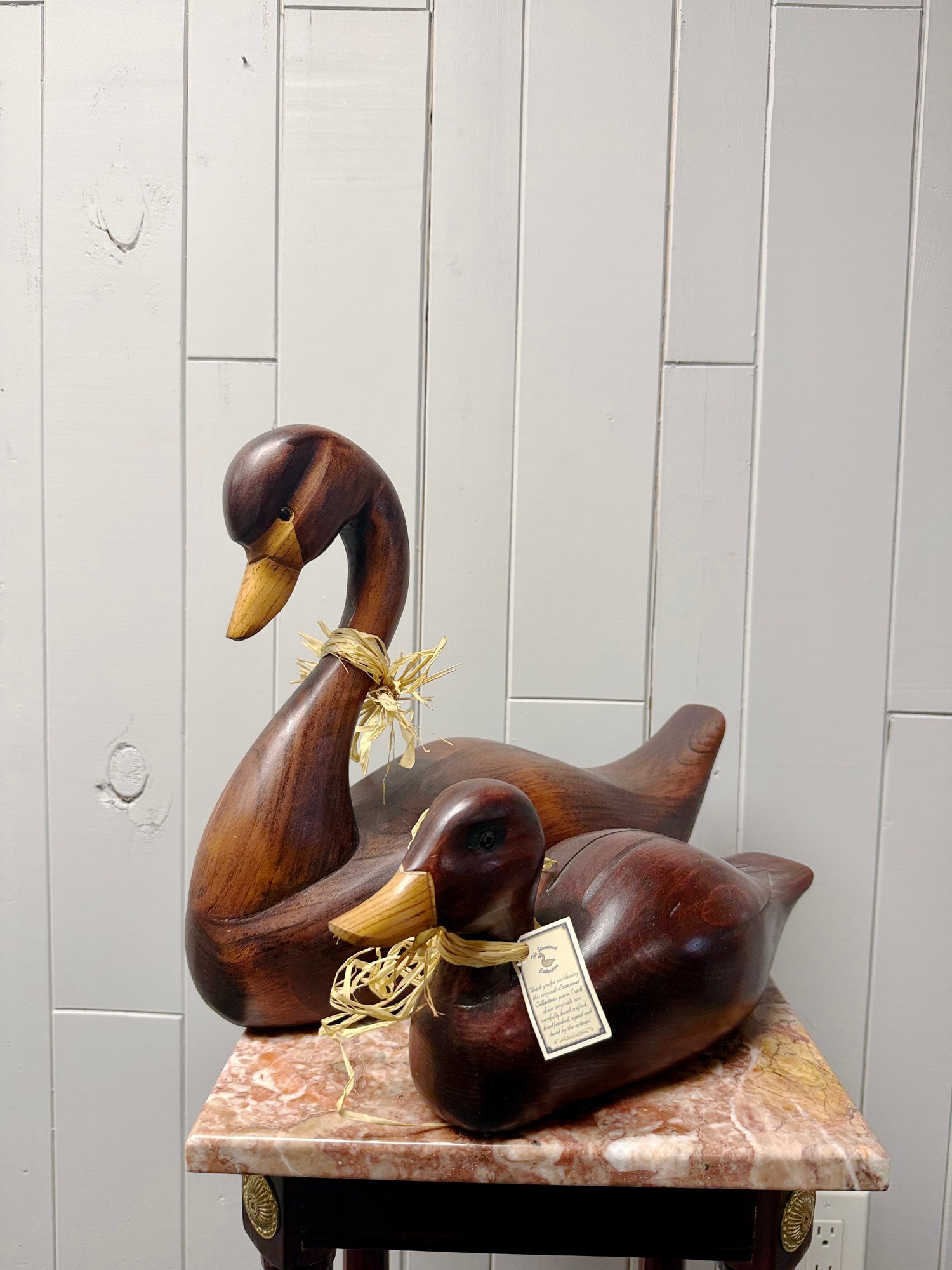 (P-16) PAIR OF WOOD CARVED DUCK SCULPTURES, MADE IN CANADA - 15" & 17"