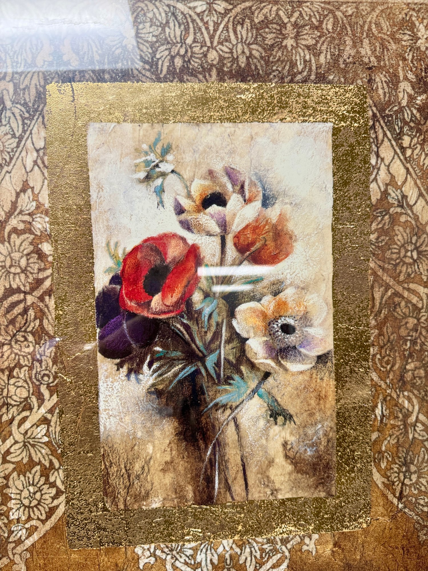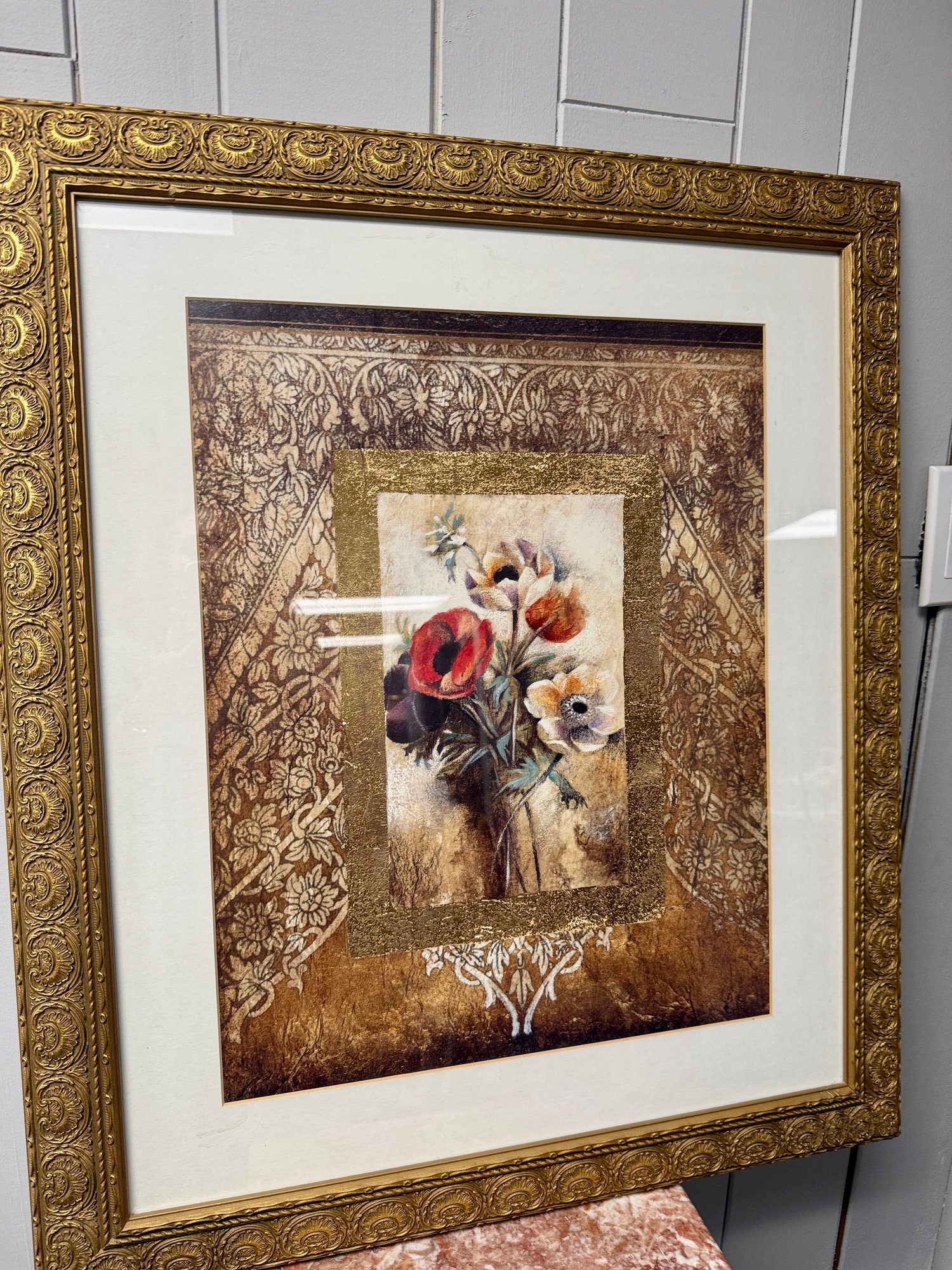 (P-19) VINTAGE FLORAL PRINT IN ORNATE GOLD FRAME - 24" BY 32"