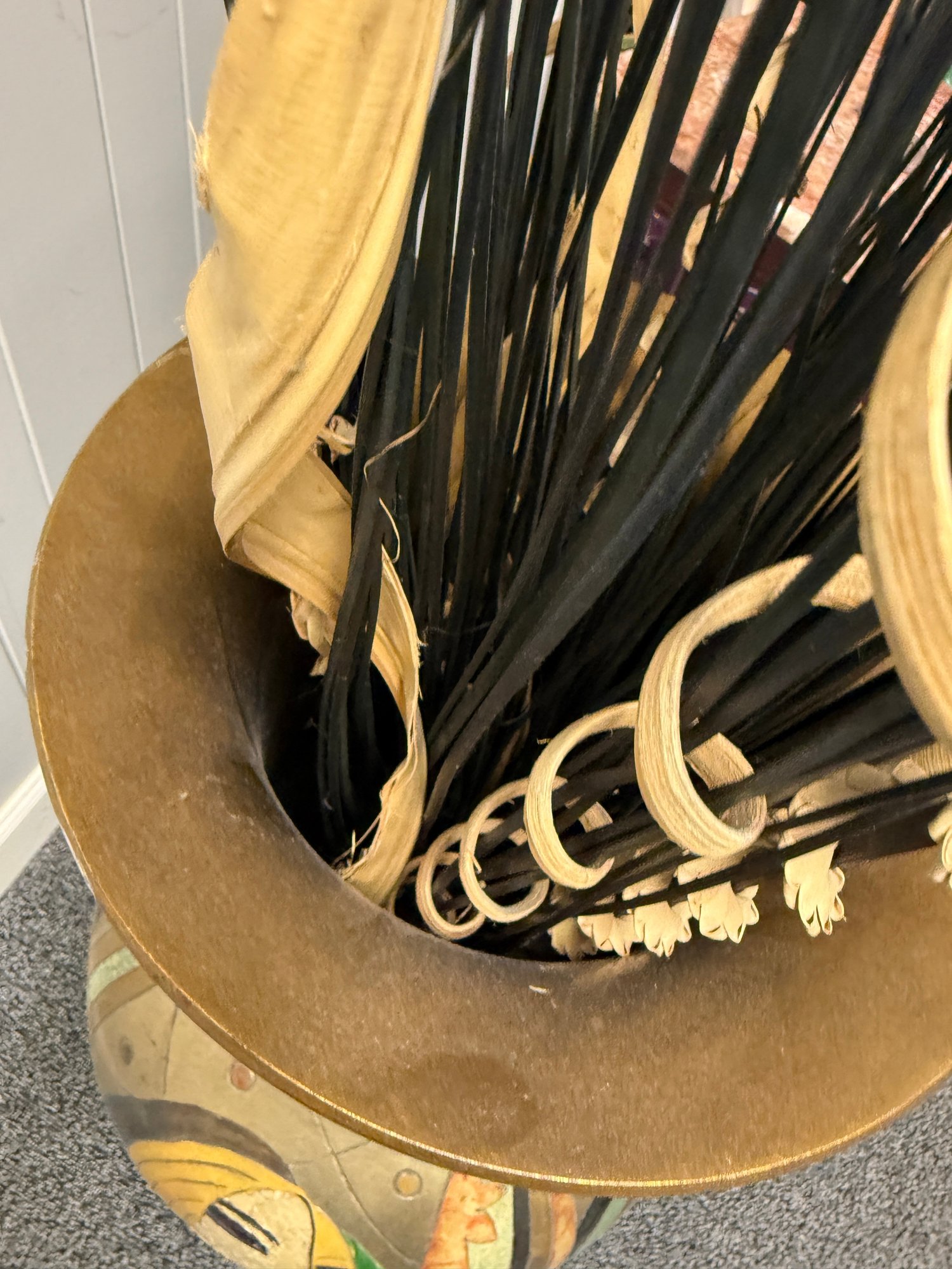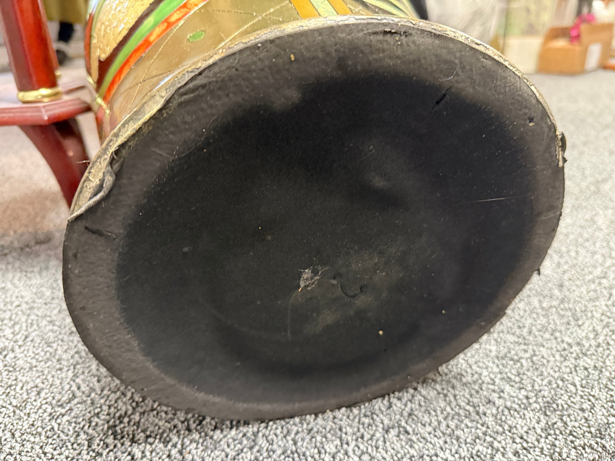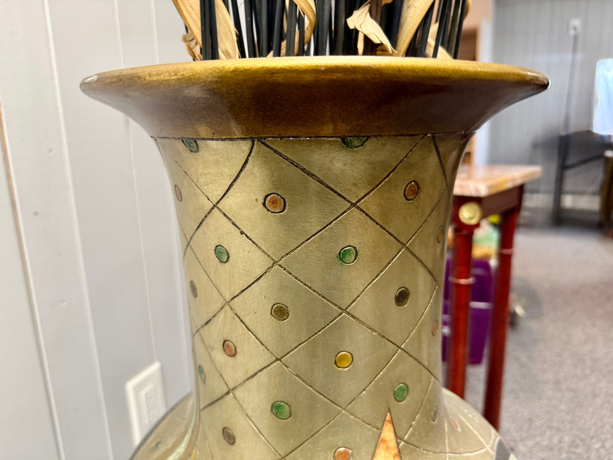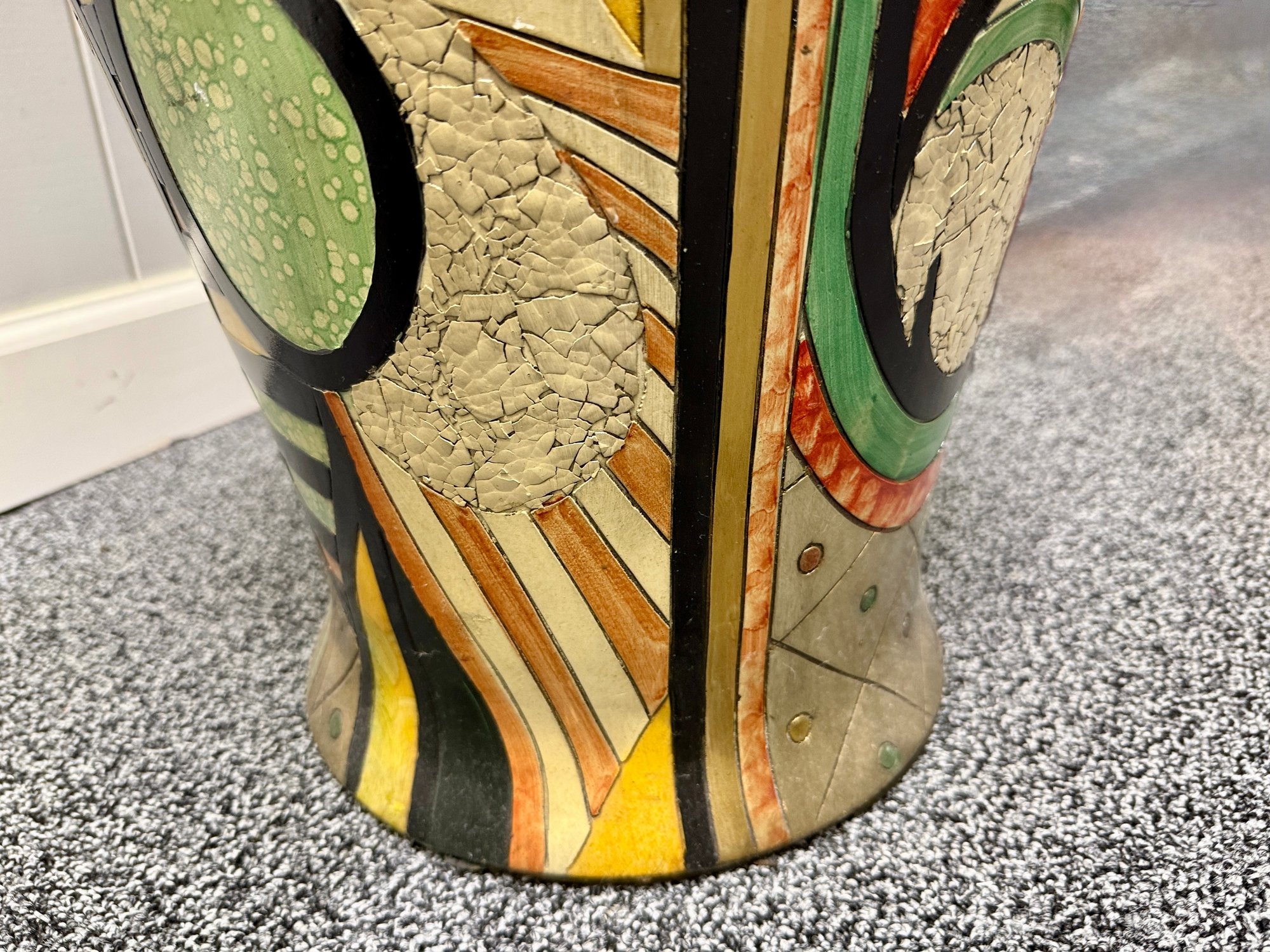 (P-38) MODERNIST OVERSIZED VINTAGE FLOOR VASE WITH BOLD FACES & DESIGNS -37"H BY 15"